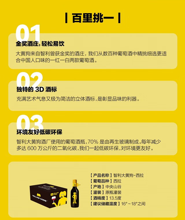 智利大黄狗西拉干红 13.5%vol 187.5ml/瓶