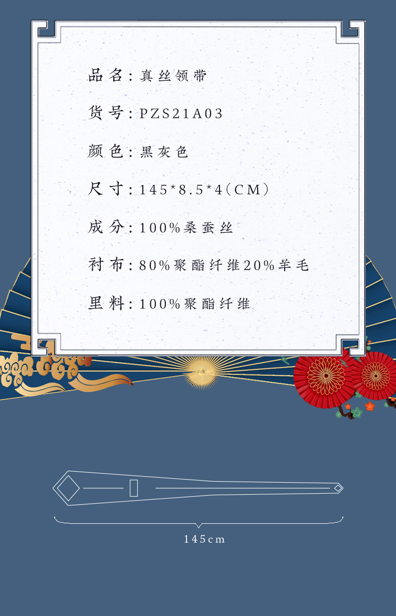 SAINTJOY/上久楷 真丝领带 黑灰色 PZS21A03
