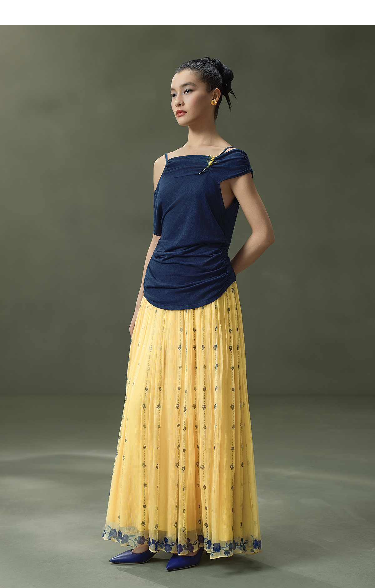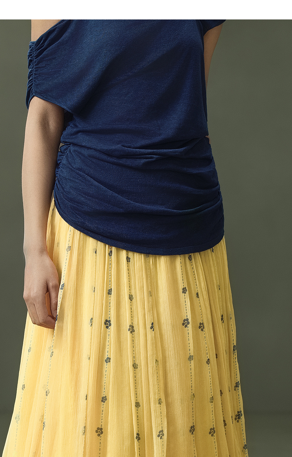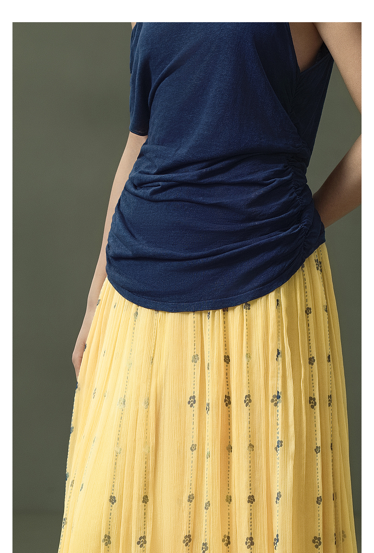 【林栖设计小店】松黄漫庭|桑蚕丝多色宽松垂感百搭2026夏新款印花半身裙