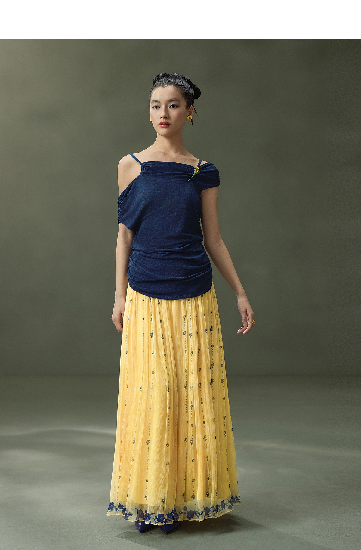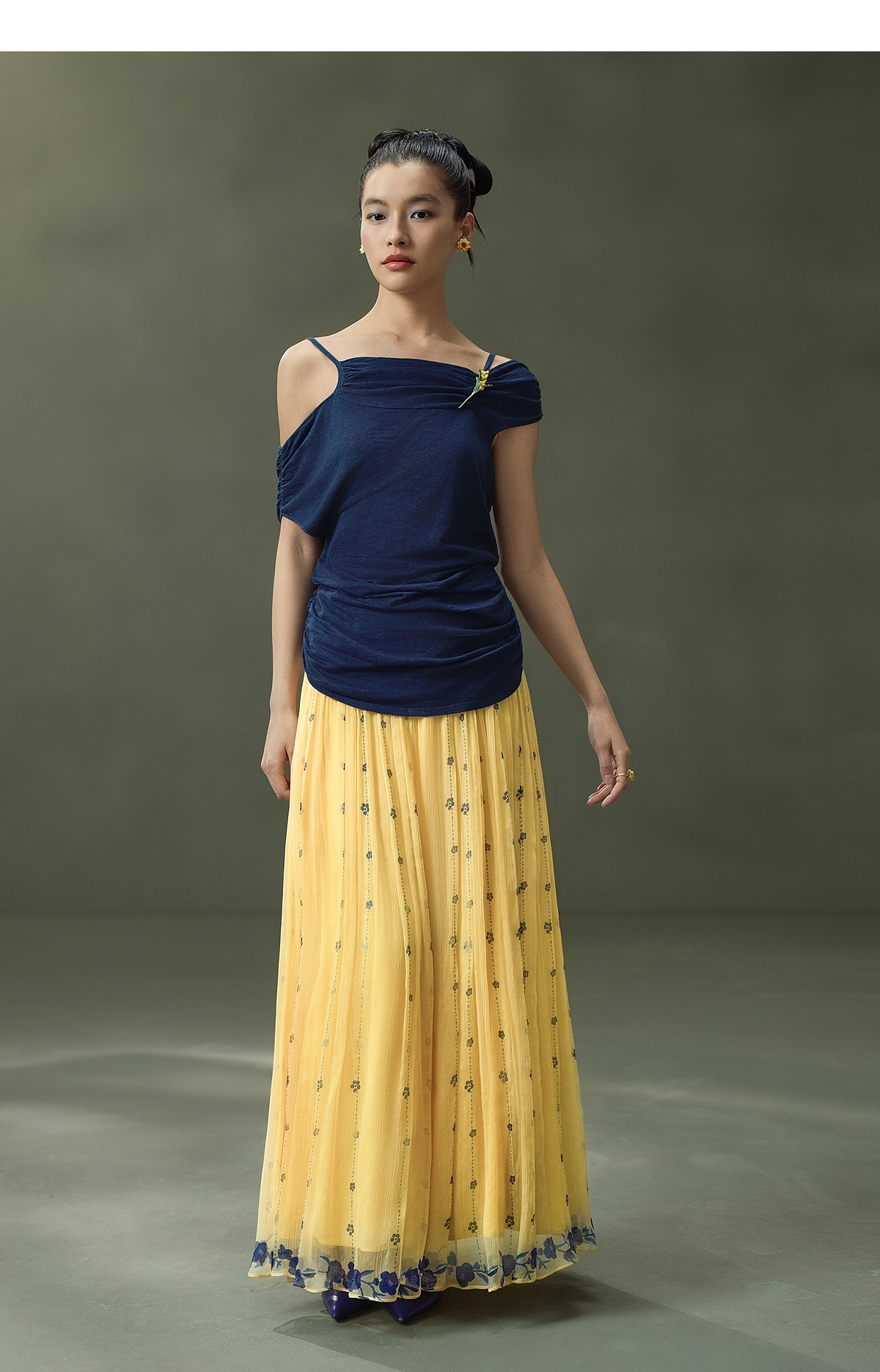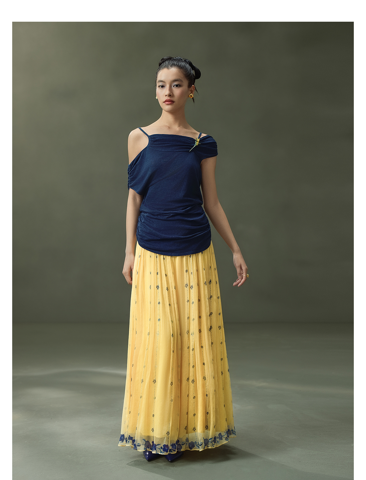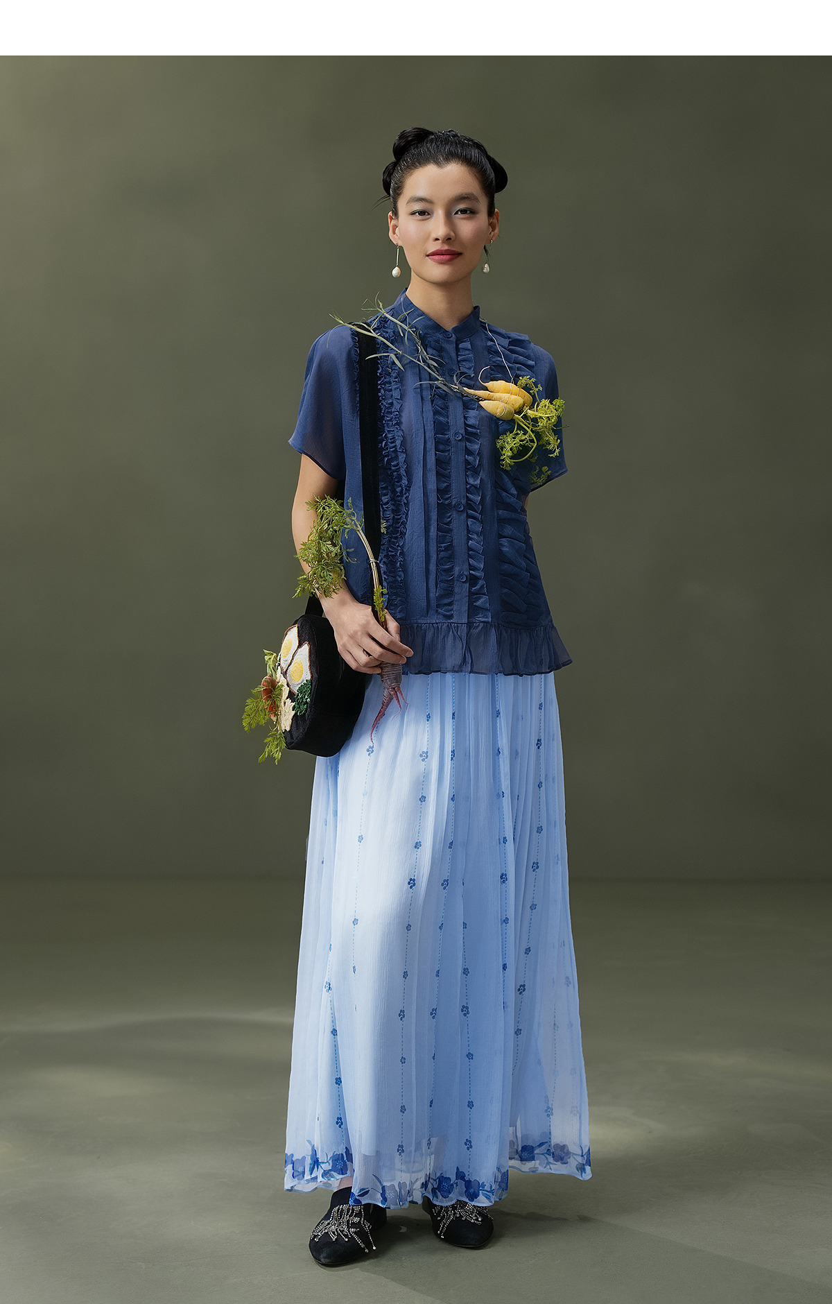 【林栖设计小店】松黄漫庭|桑蚕丝多色宽松垂感百搭2026夏新款印花半身裙