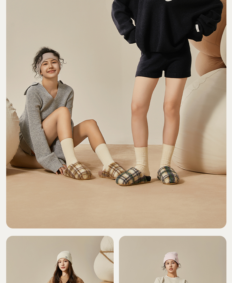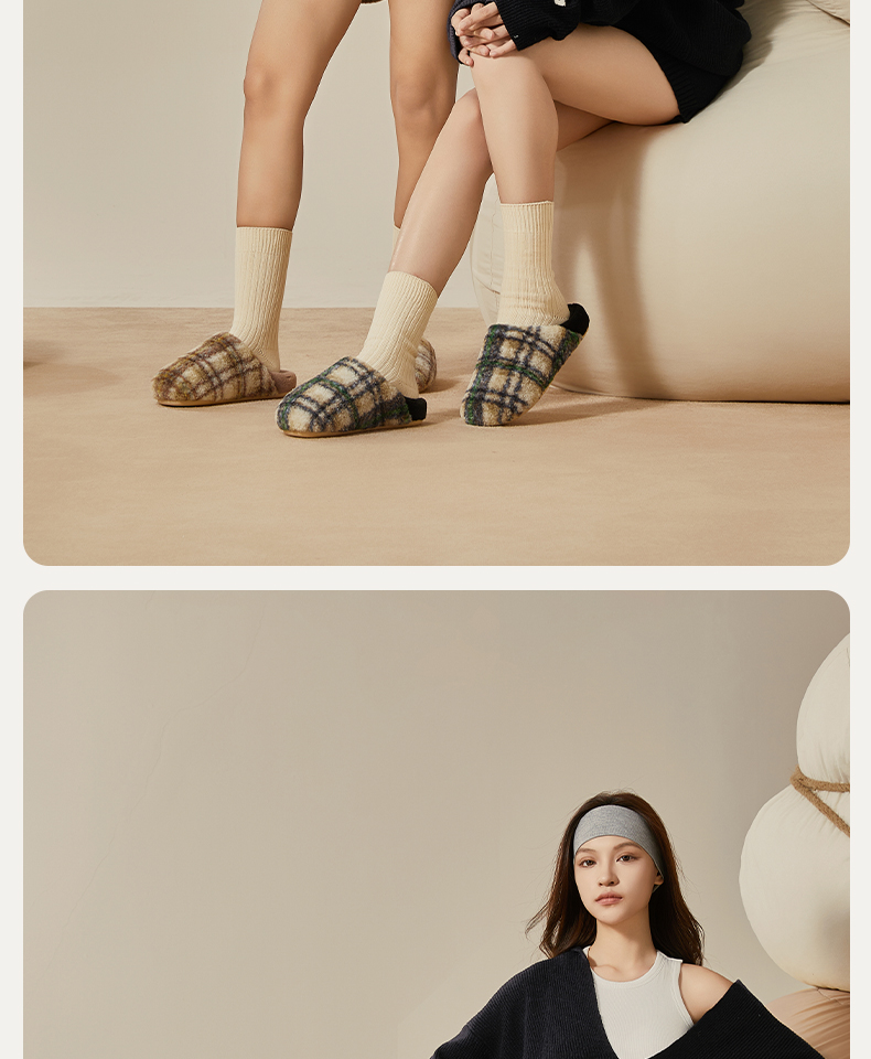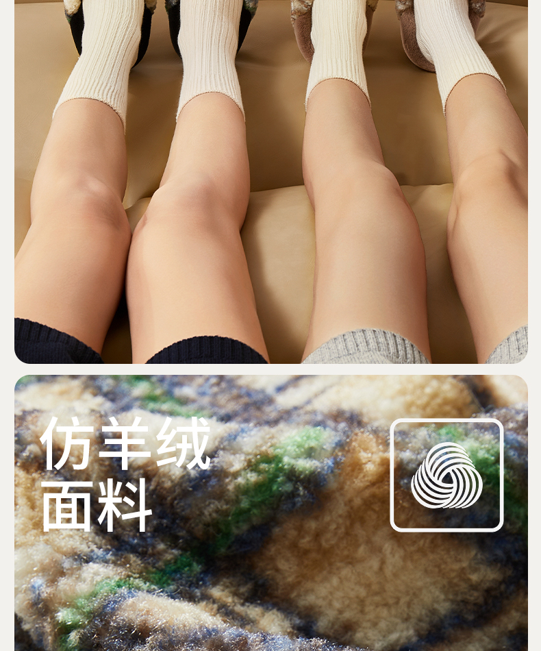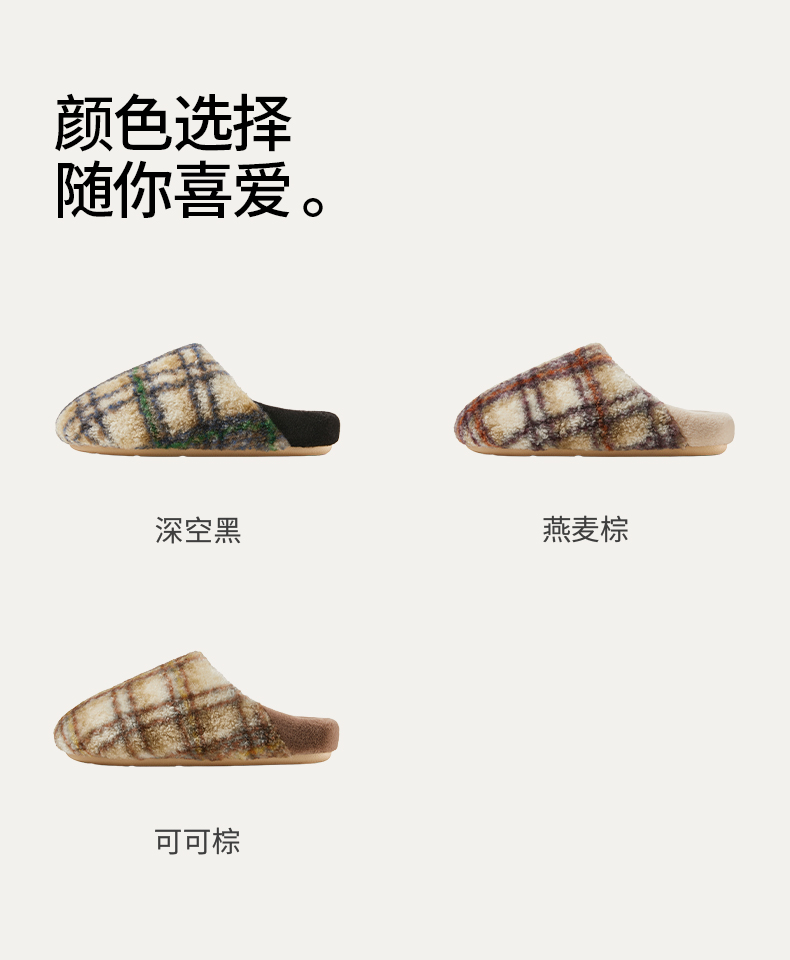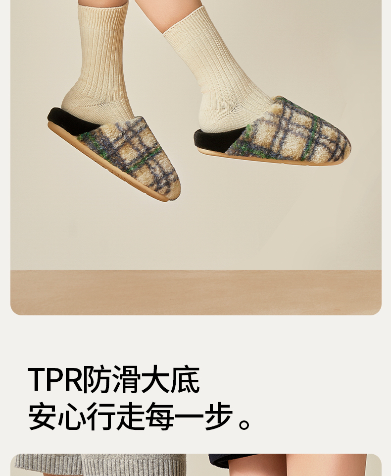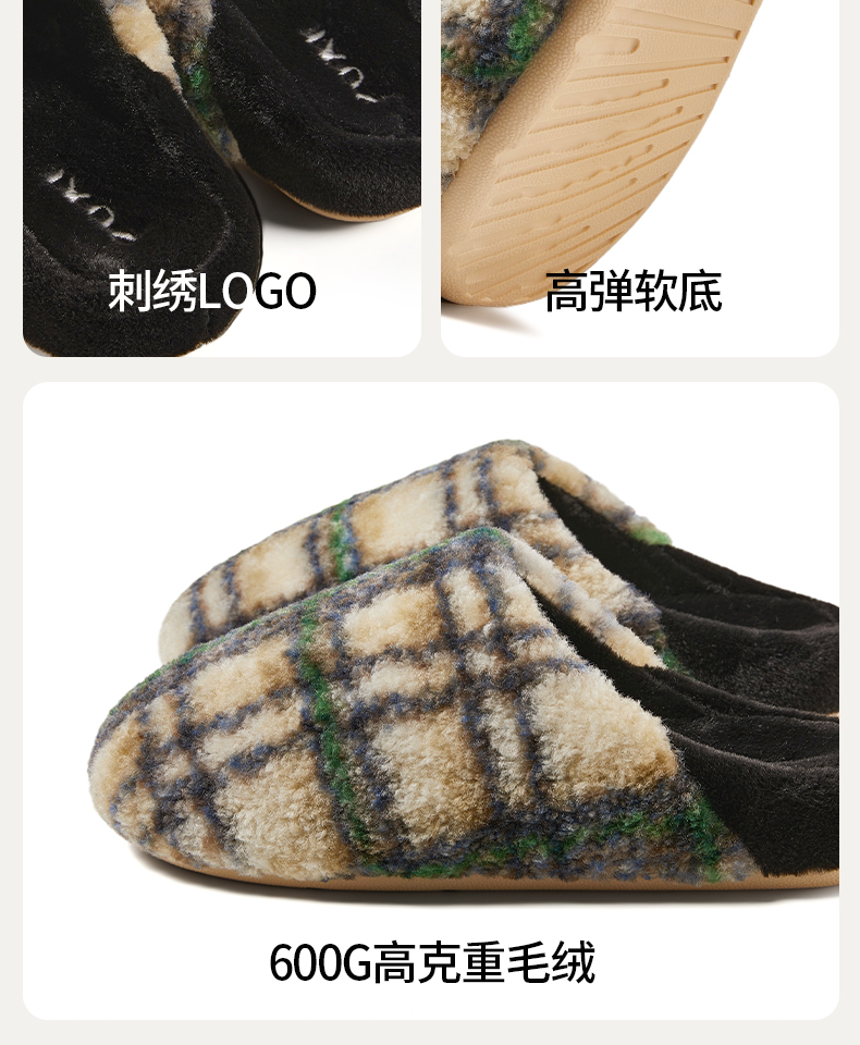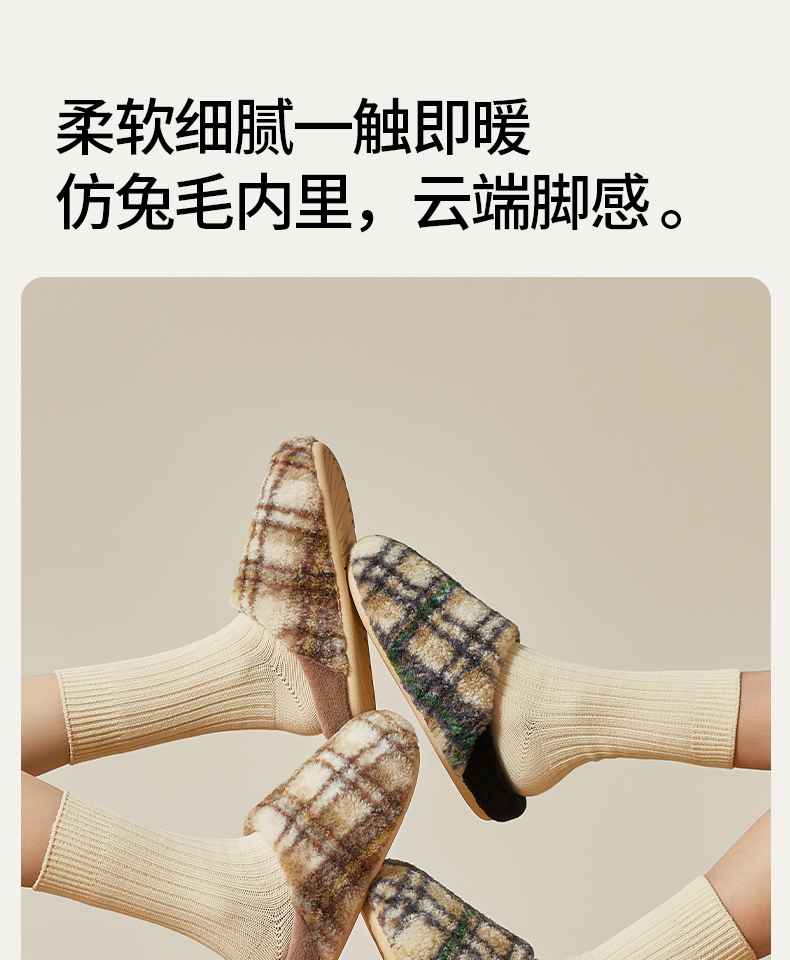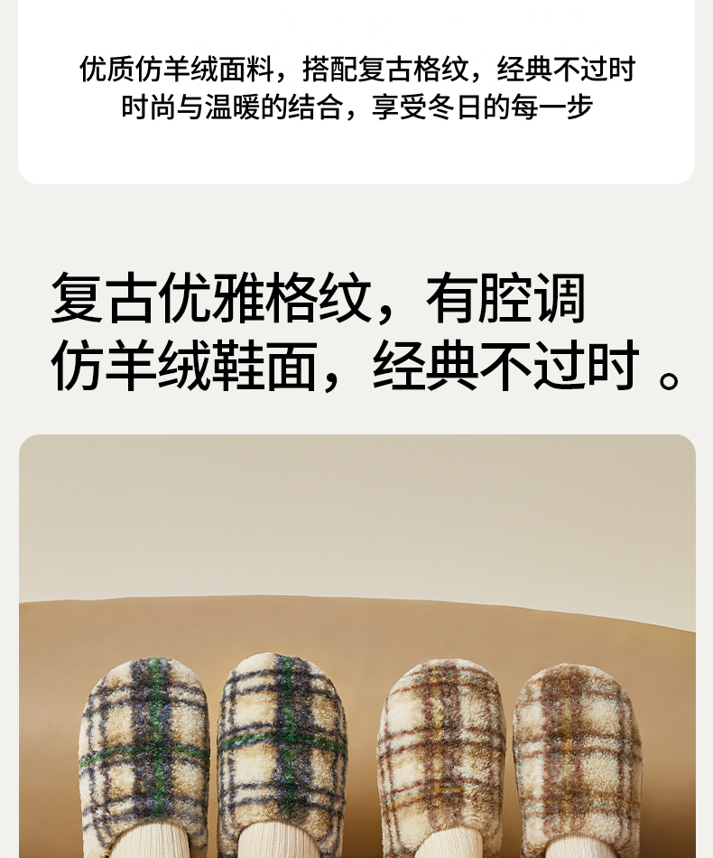 【板牙专享】朴西南星棉拖鞋女复古格纹冬季保暖家居室内情侣防滑家用