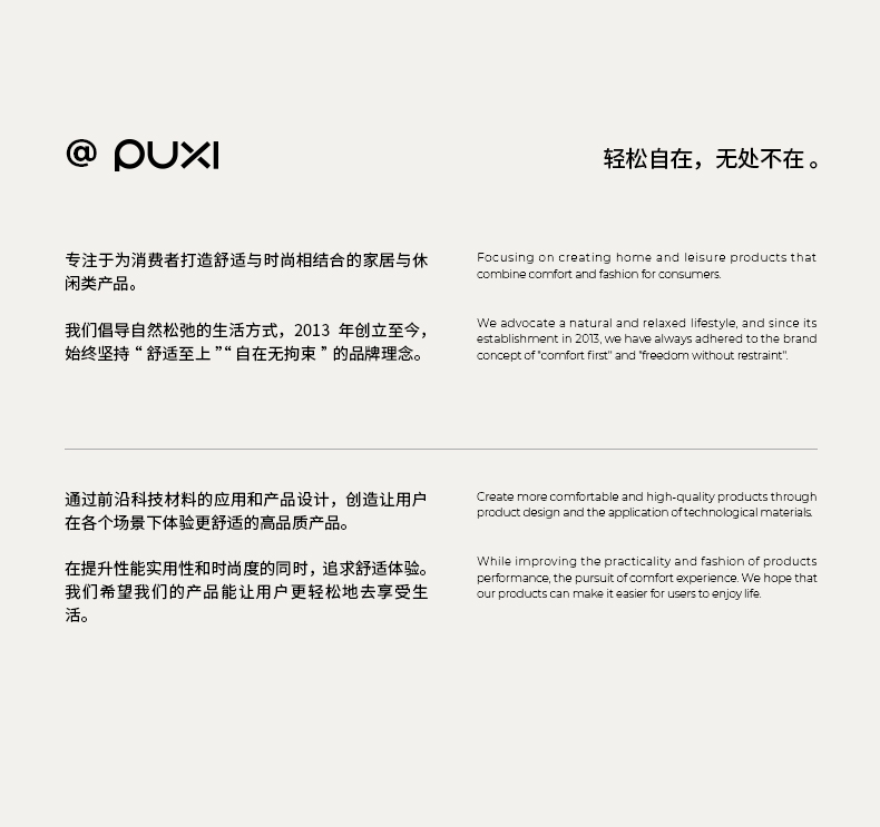 - 浙江朴西集团成立于2013年,是一家集研发设计生产销售服务为一体的复合型集团。朴西多年来坚持自主延发设计,并不断融合科技创新,致力于让更多人穿上舒适拖鞋,享受家庭幸福感。