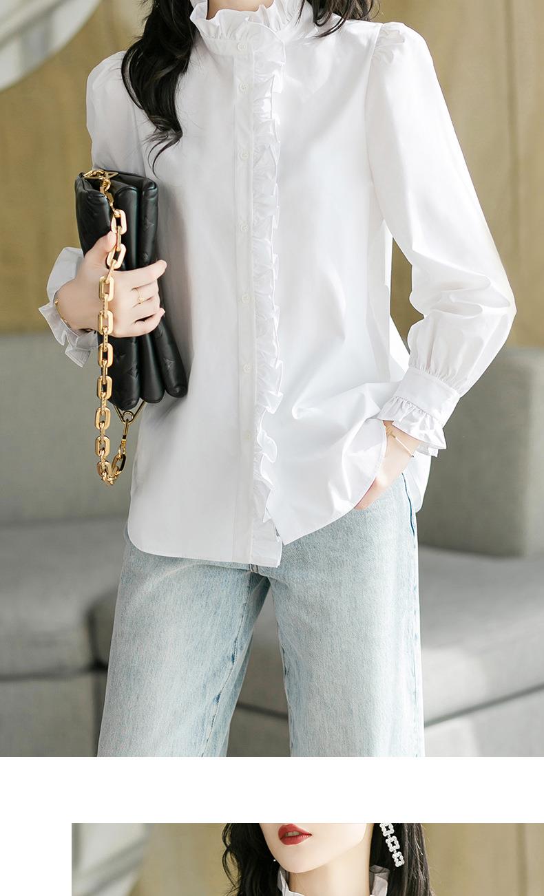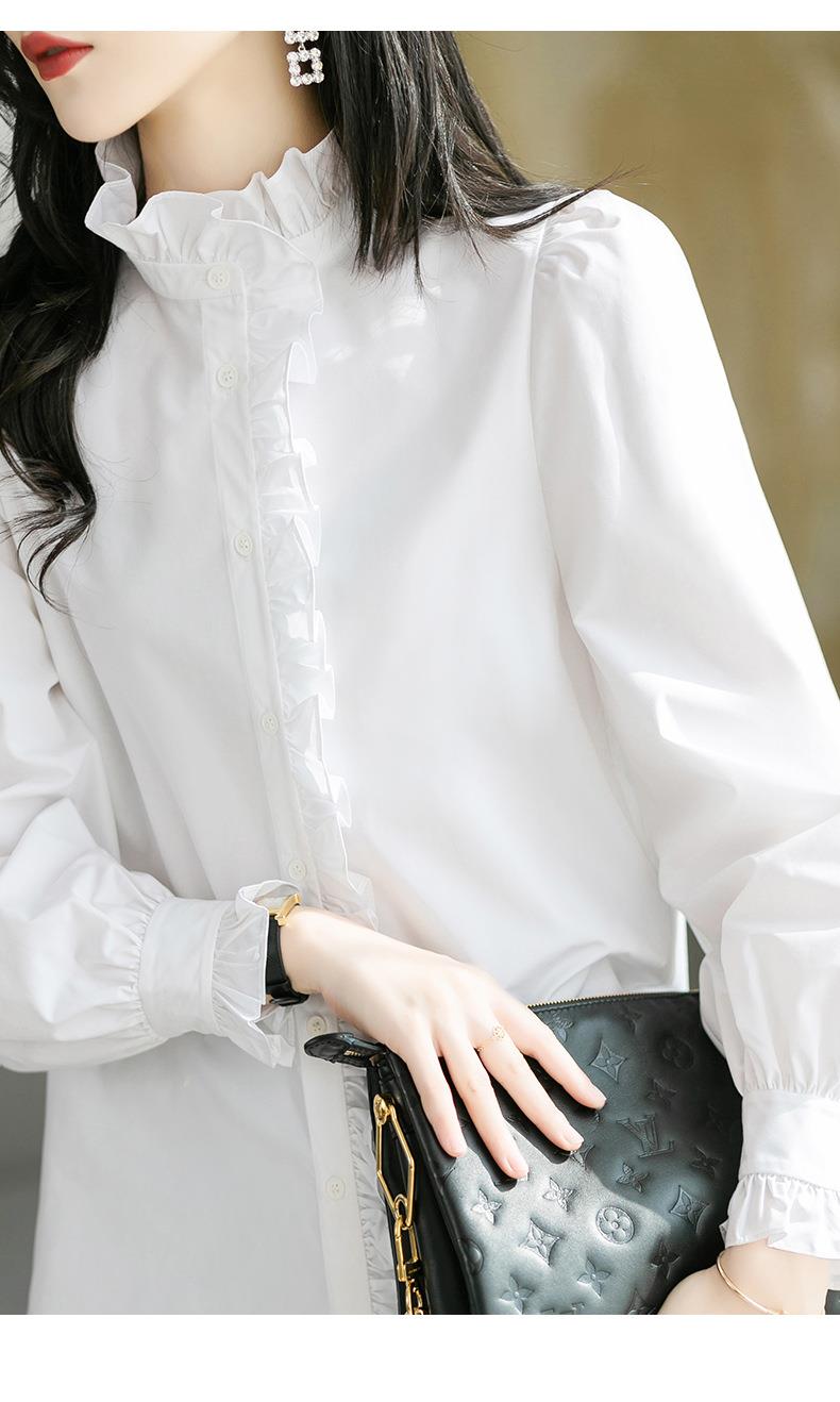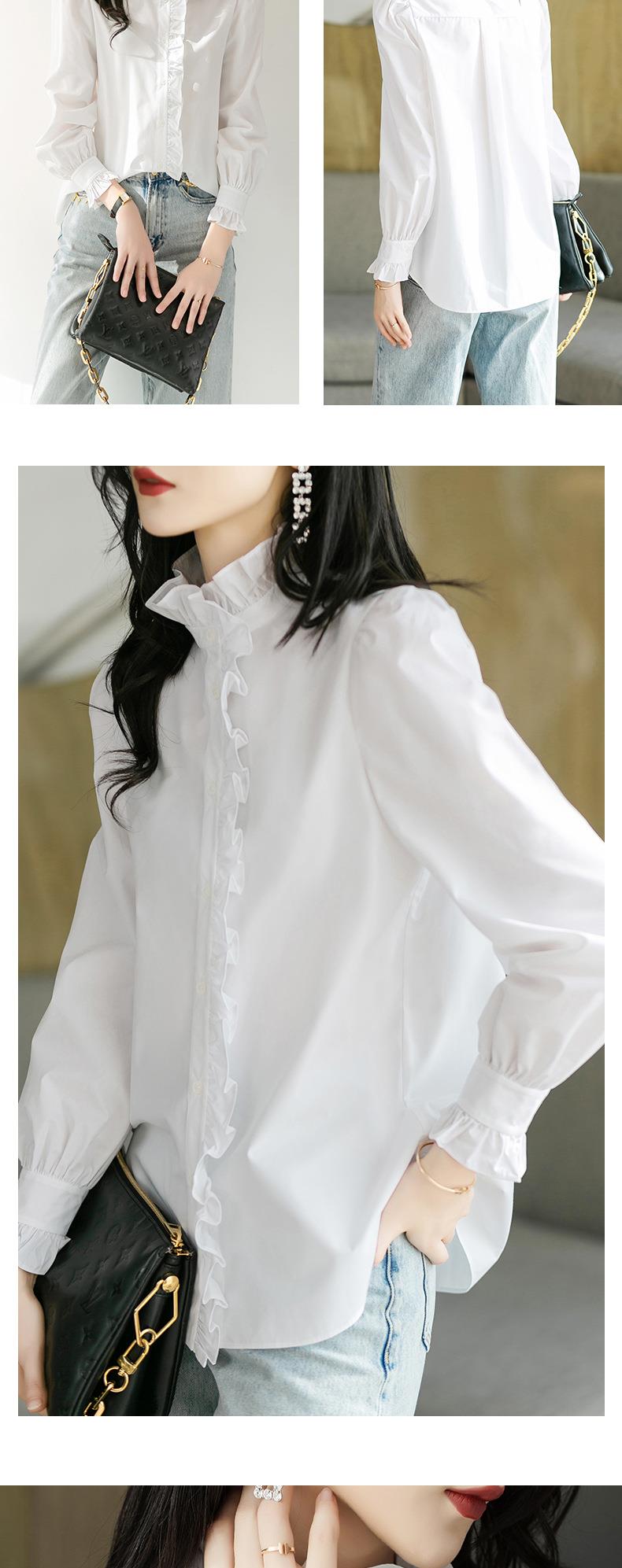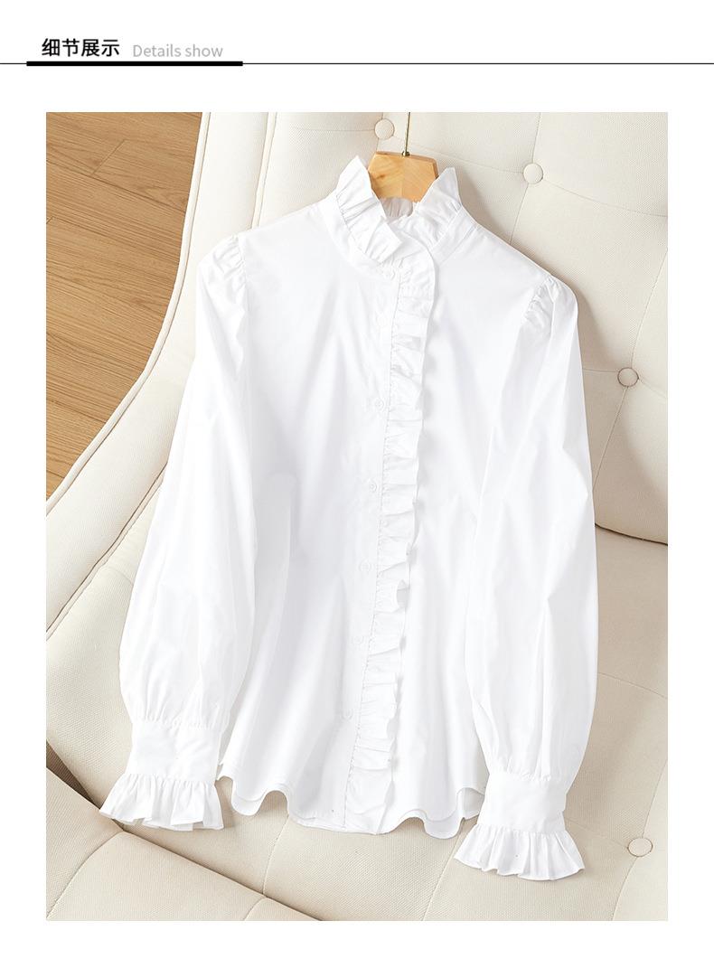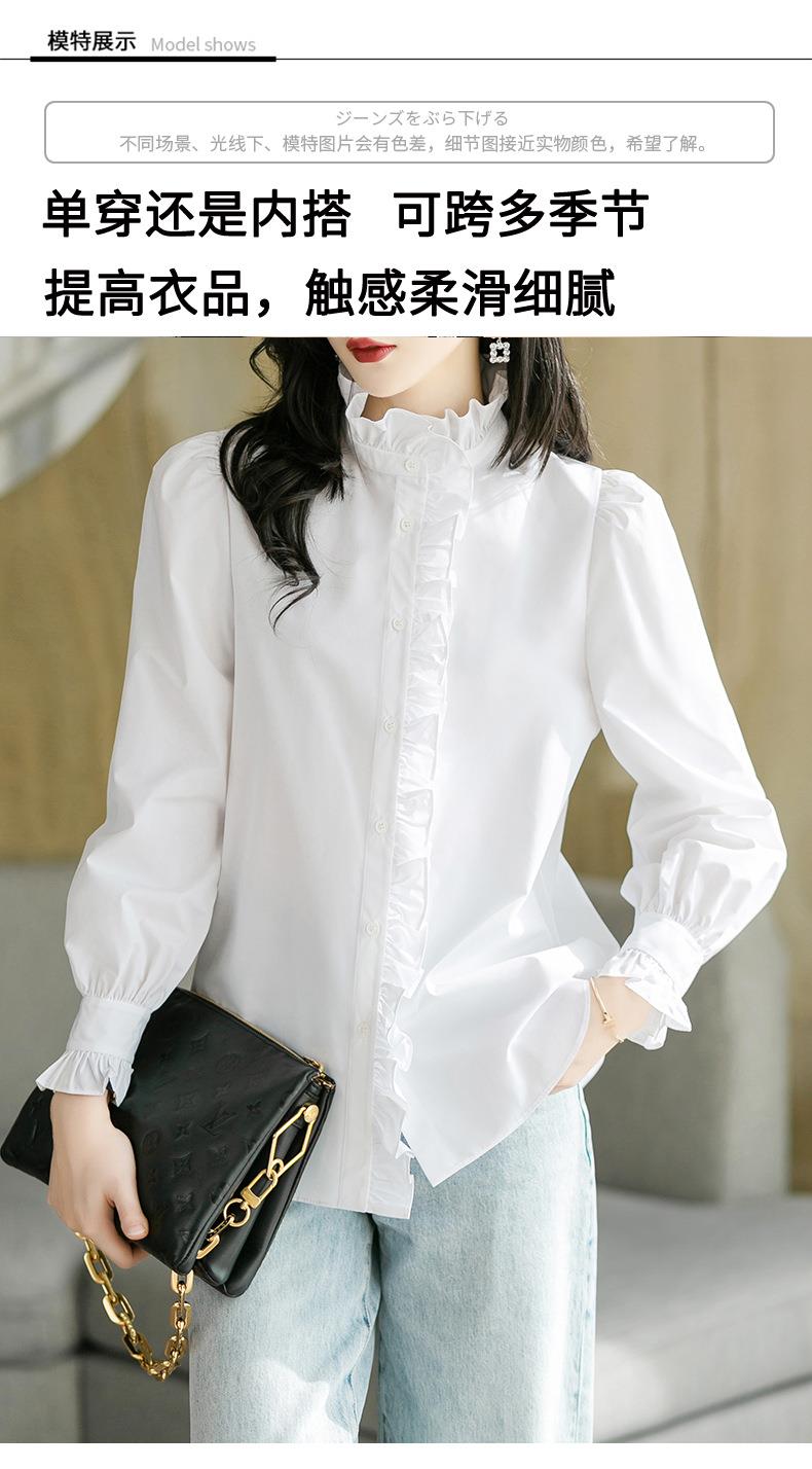 2023秋装新款立领荷叶边衬衫女长袖纯棉女士衬衣大码