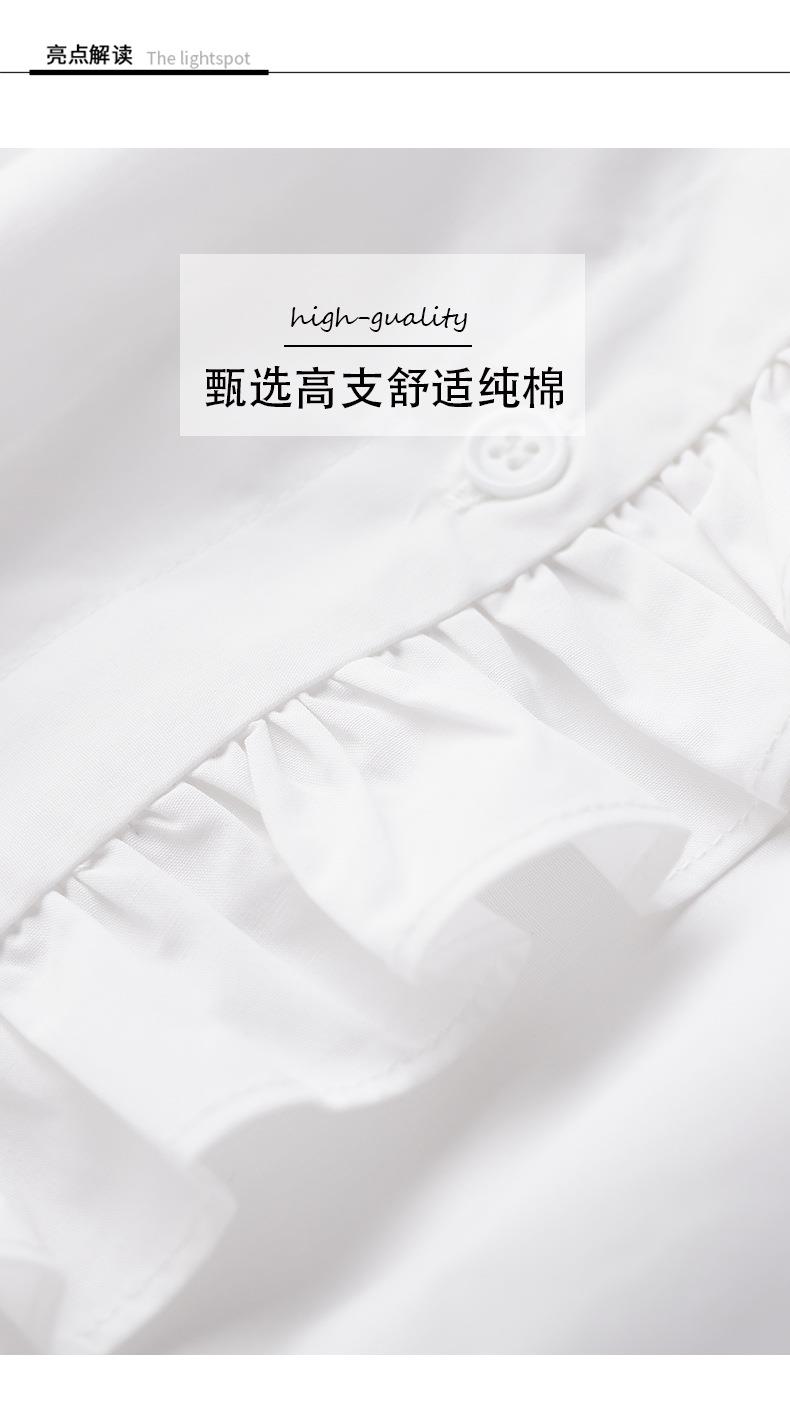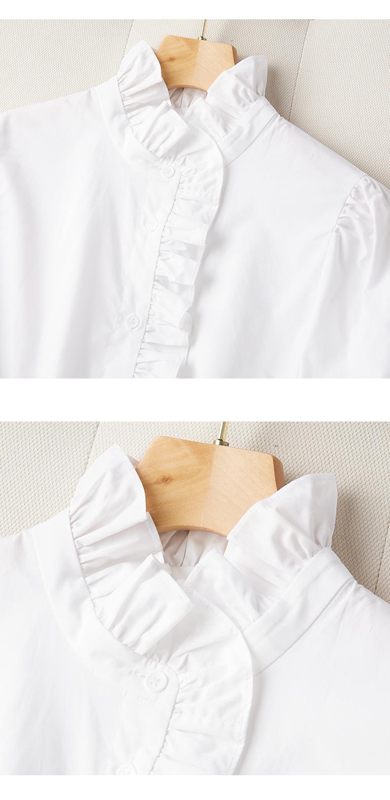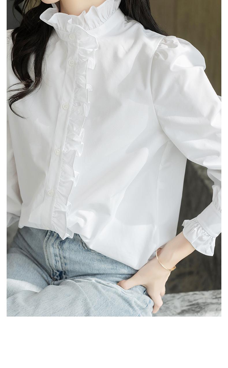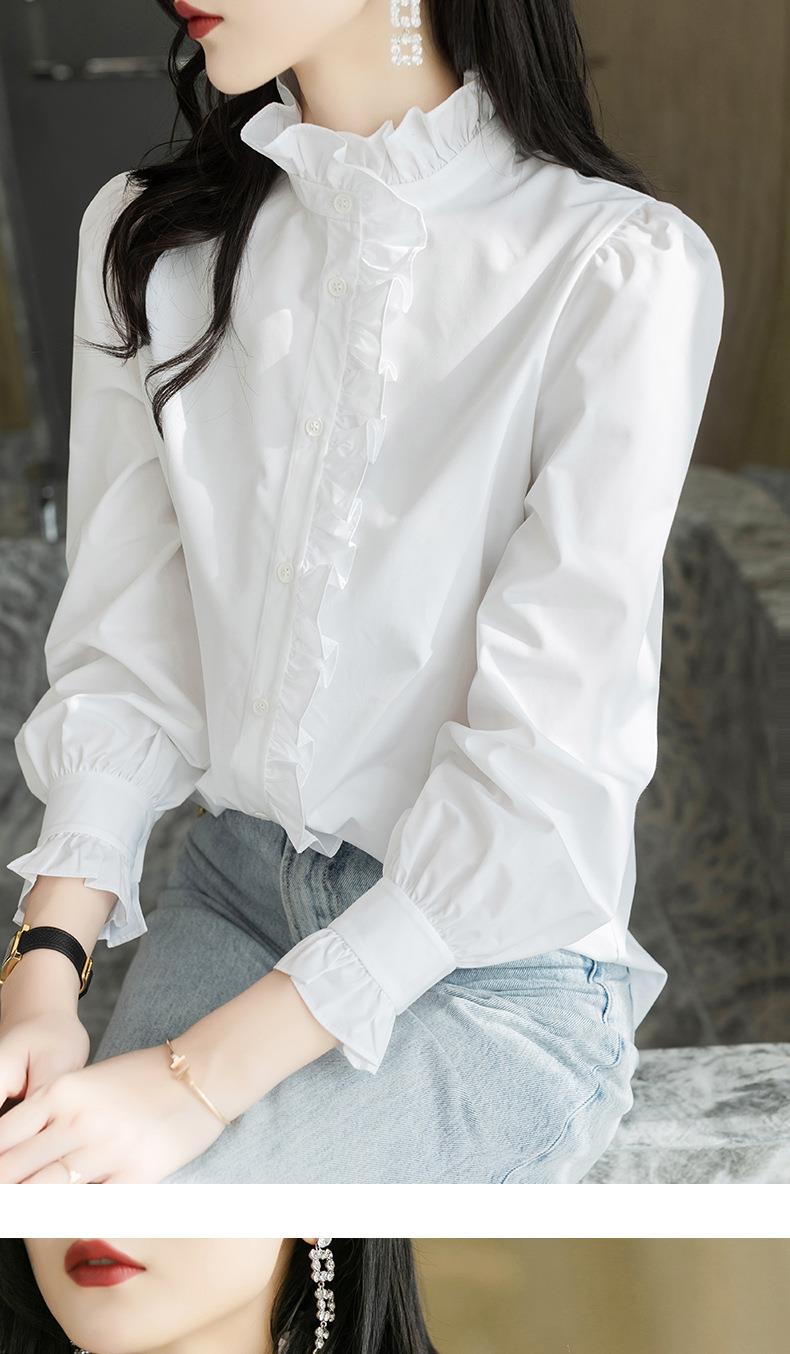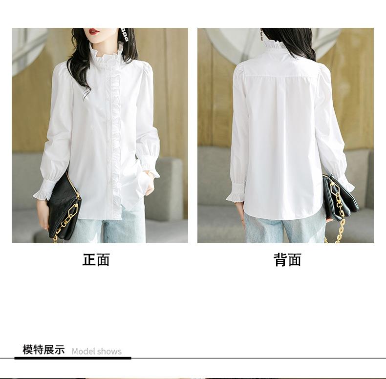 2023秋装新款立领荷叶边衬衫女长袖纯棉女士衬衣大码