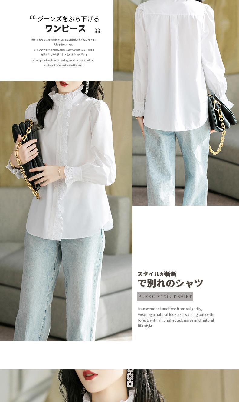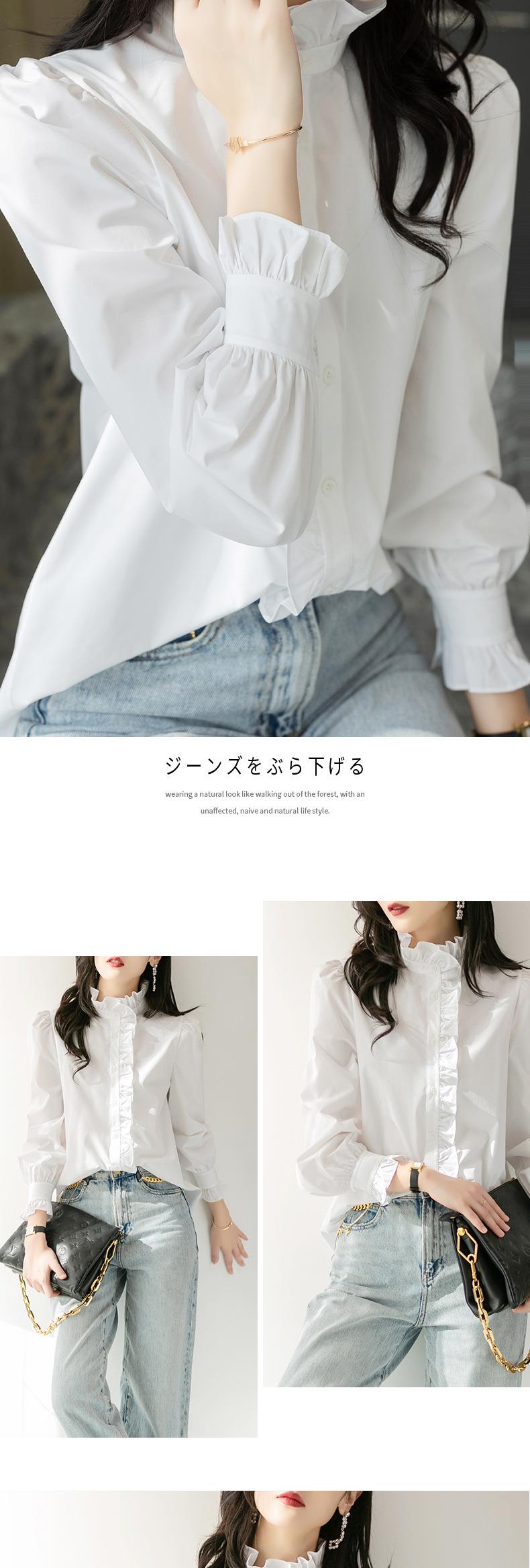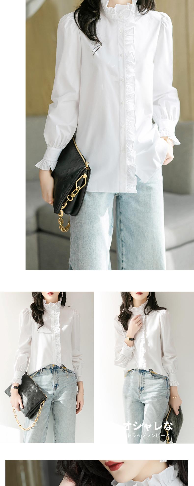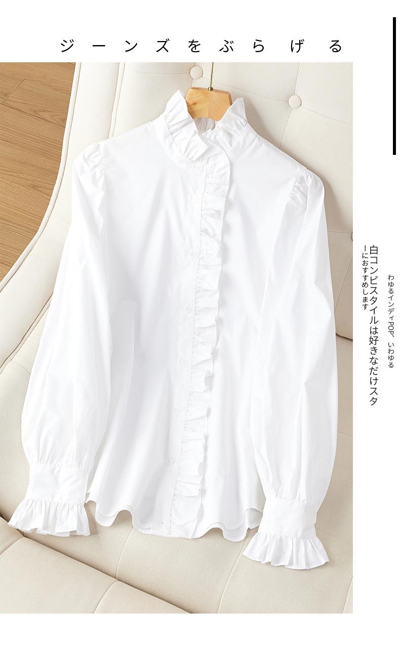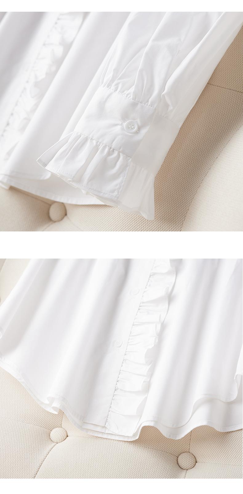 2023秋装新款立领荷叶边衬衫女长袖纯棉女士衬衣大码