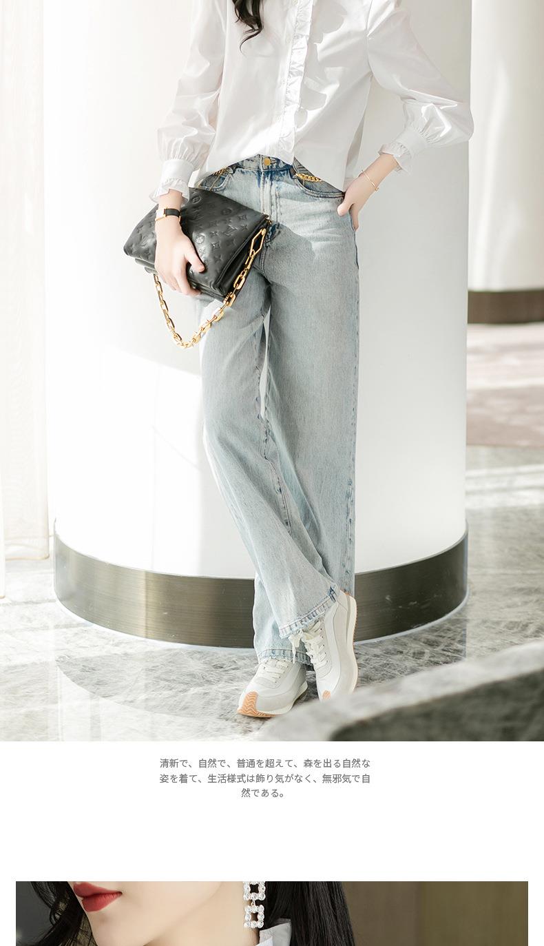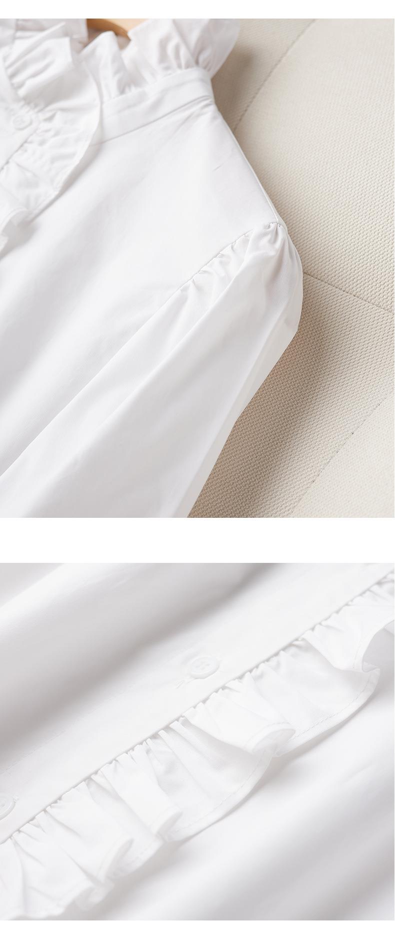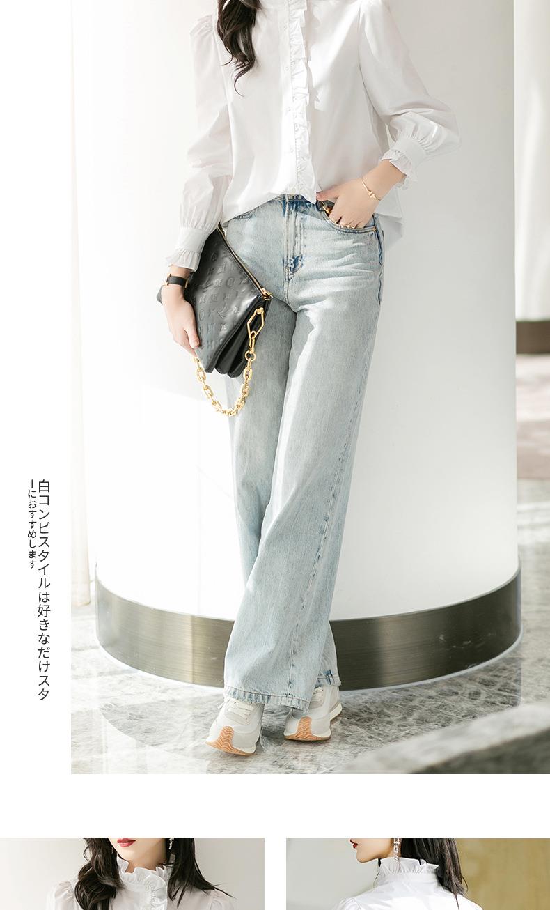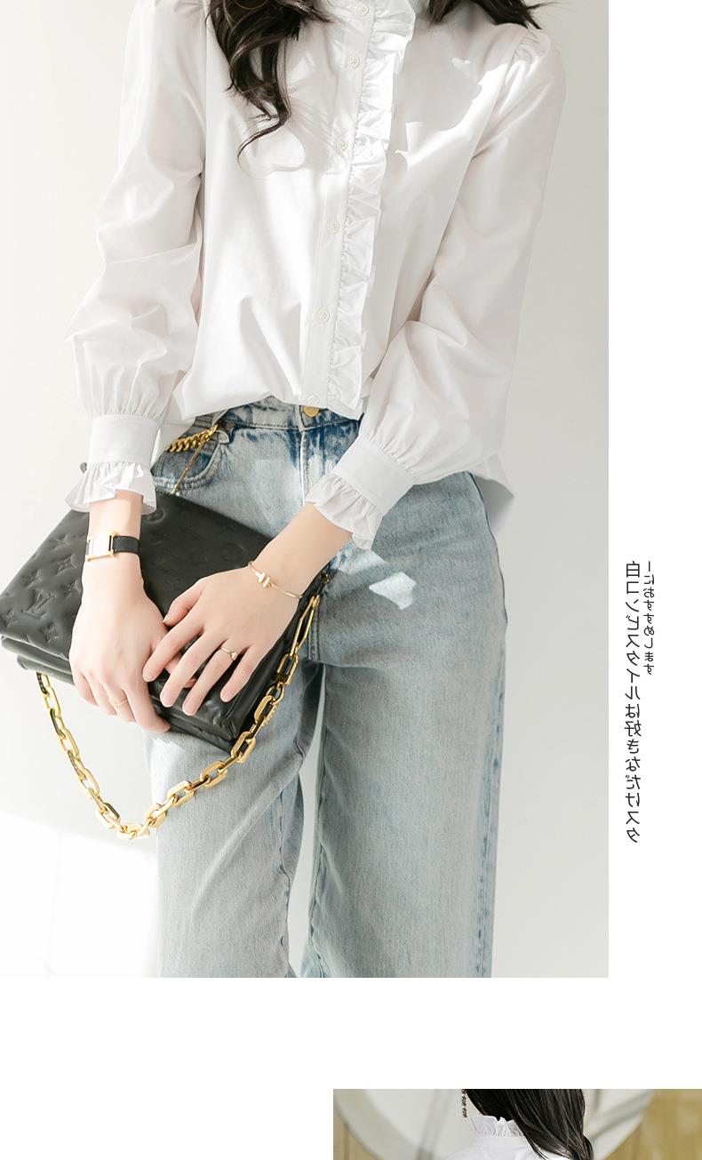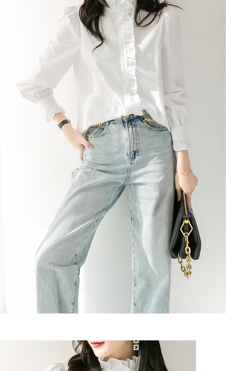 2023秋装新款立领荷叶边衬衫女长袖纯棉女士衬衣大码