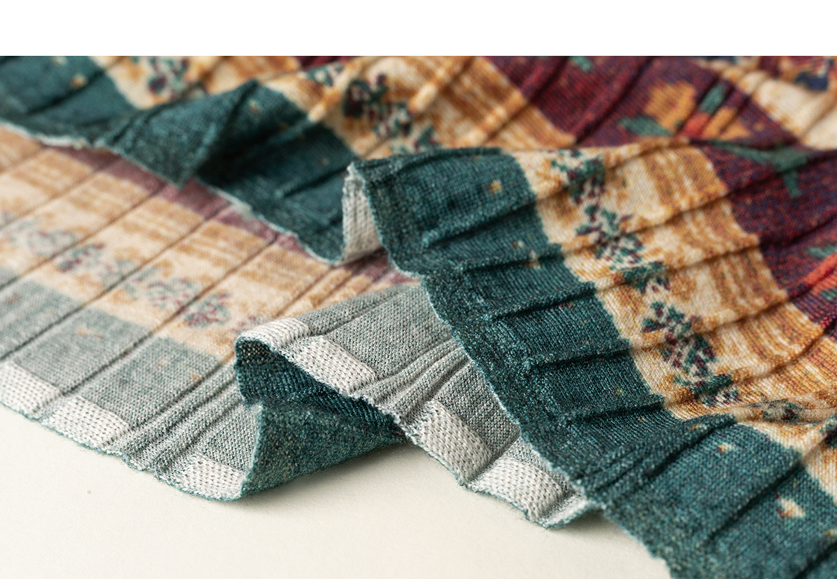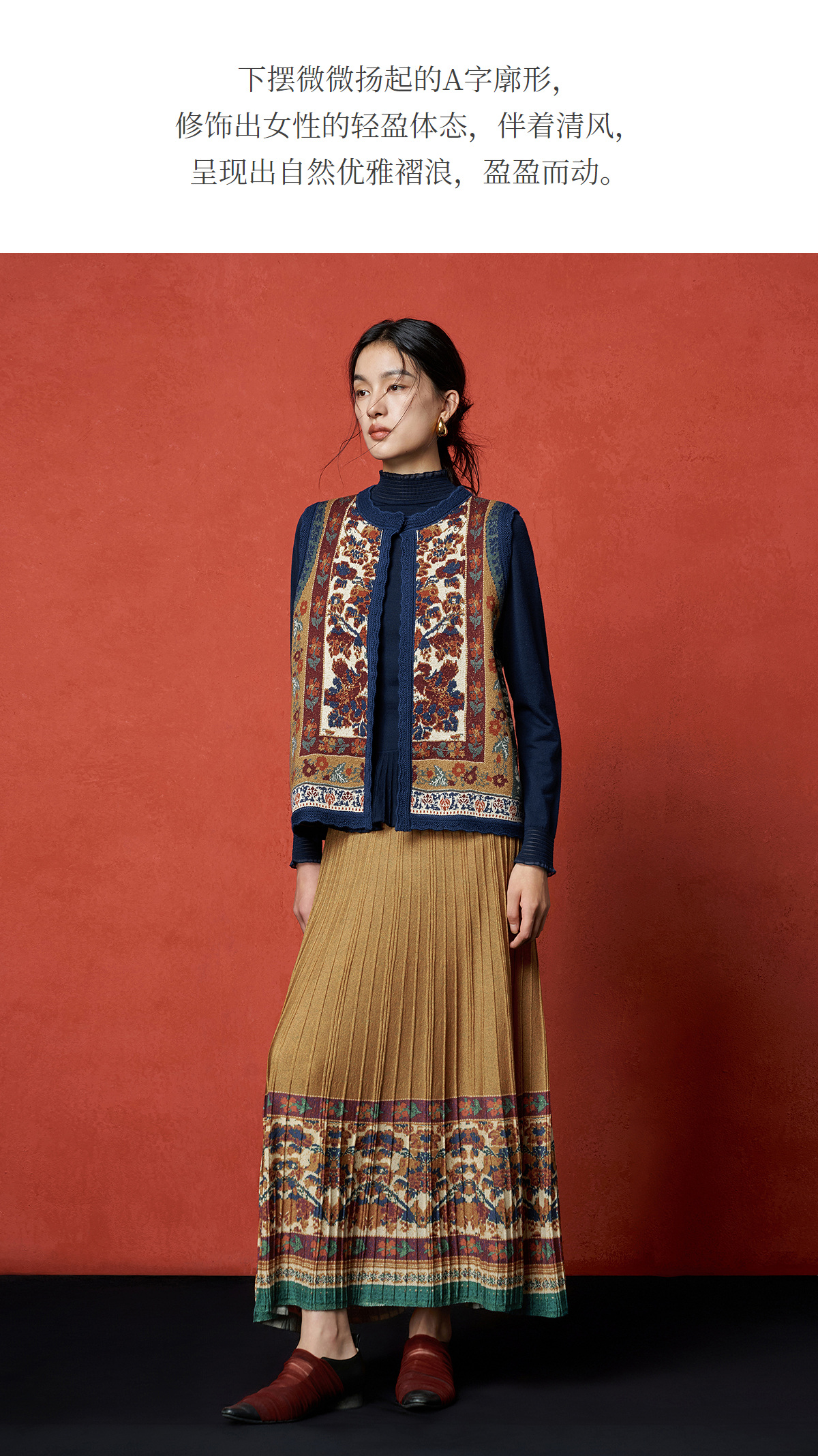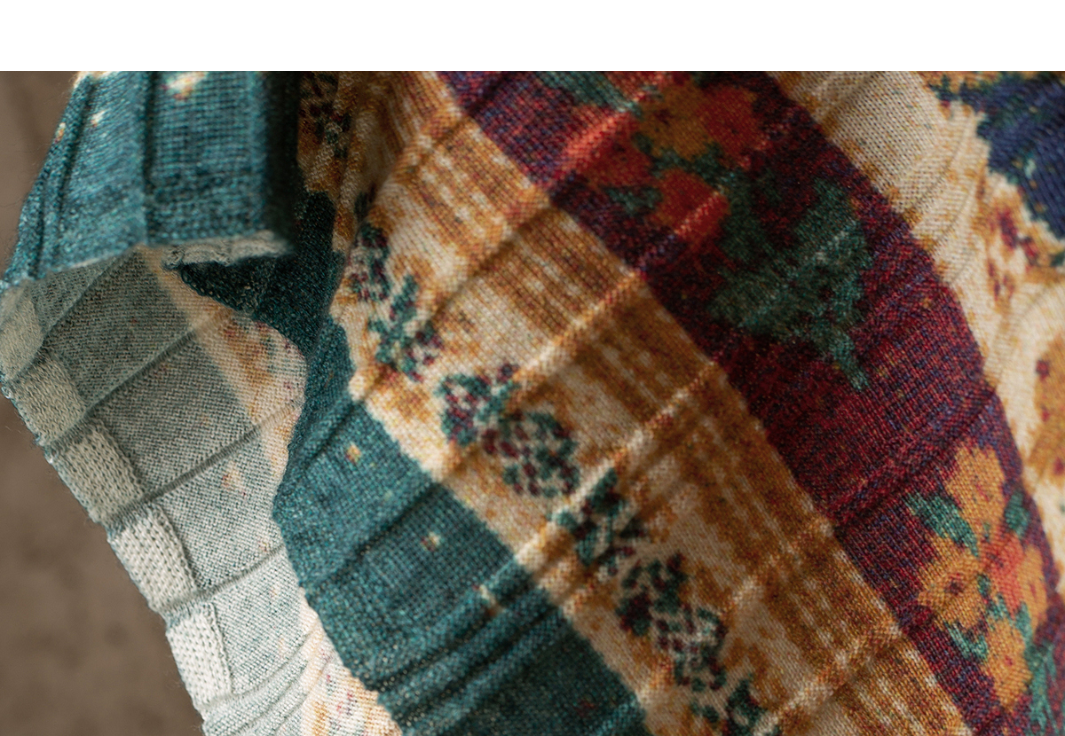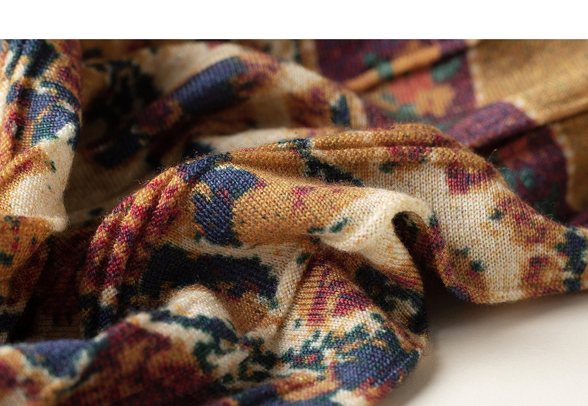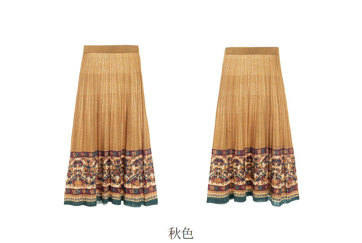 【林栖设计小店】秋色绵羊毛鸳鸯印花毛织半身裙褶皱复古百搭2025秋冬新款长裙子女T1954285