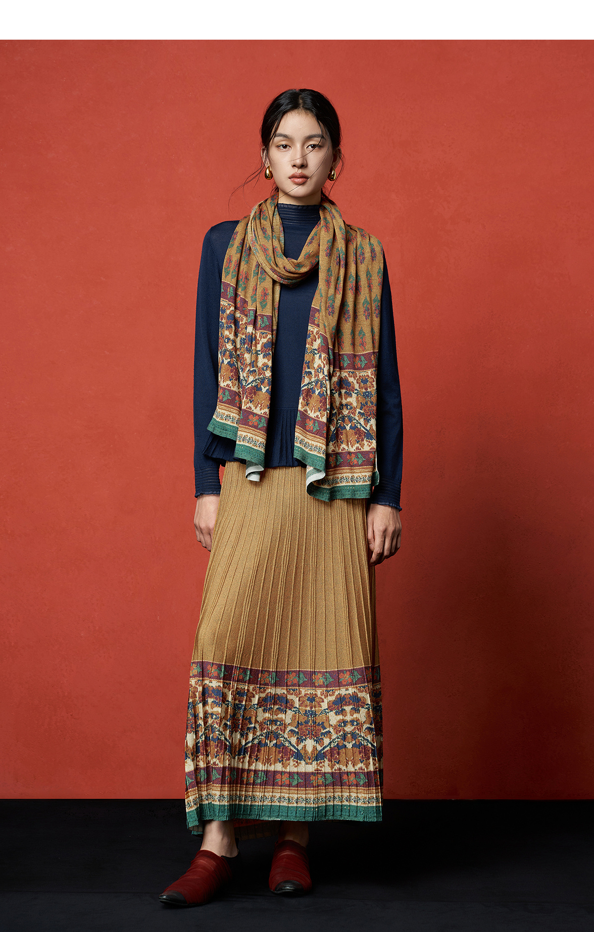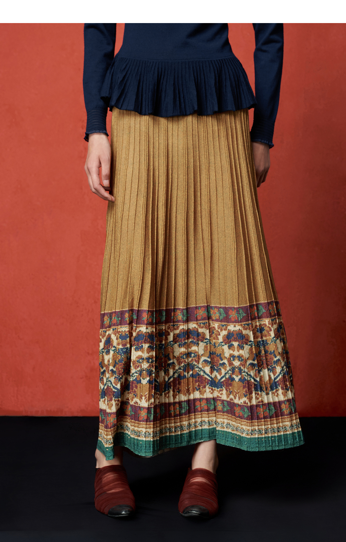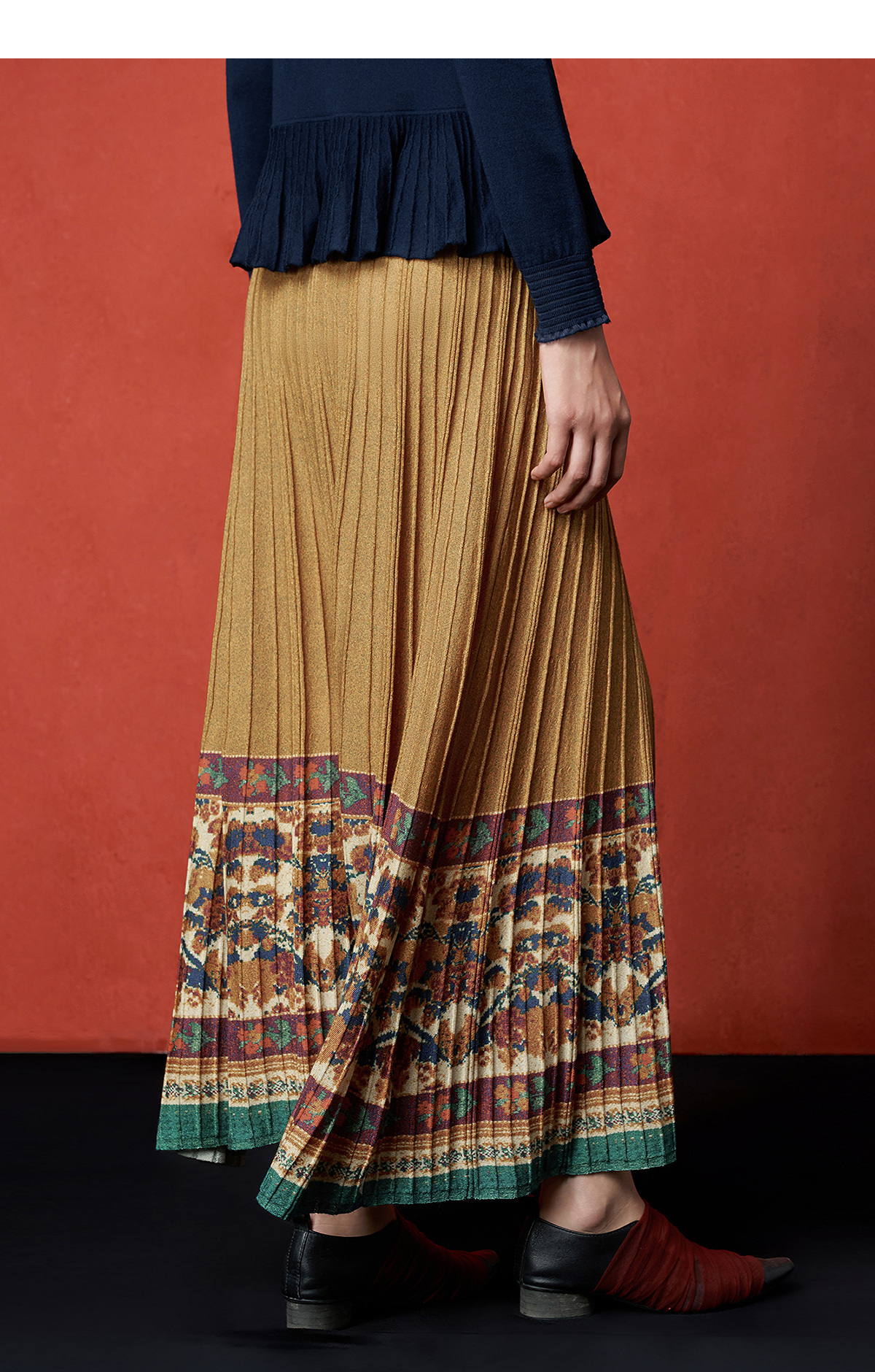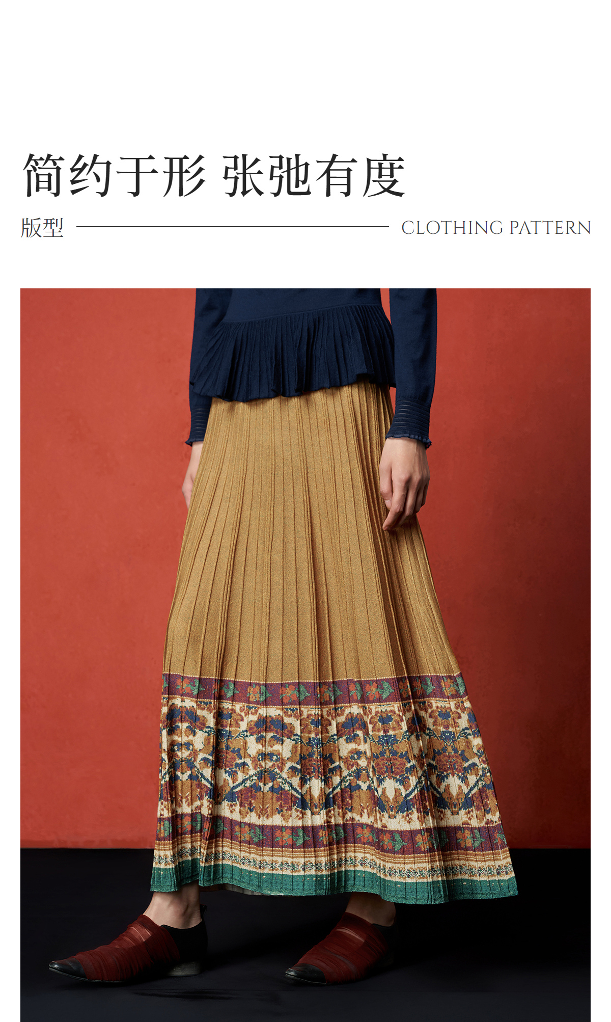 【林栖设计小店】秋色绵羊毛鸳鸯印花毛织半身裙褶皱复古百搭2025秋冬新款长裙子女T1954285