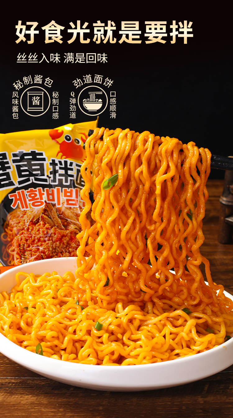【新鲜有料❗️秘制蟹黄拌面】甄选品质原料制作,还原餐馆级口感,浓香蟹黄酱,面饼劲道Q弹,网红速食拌面,办公室宿舍夜宵即食懒人食品方便面泡面L-d