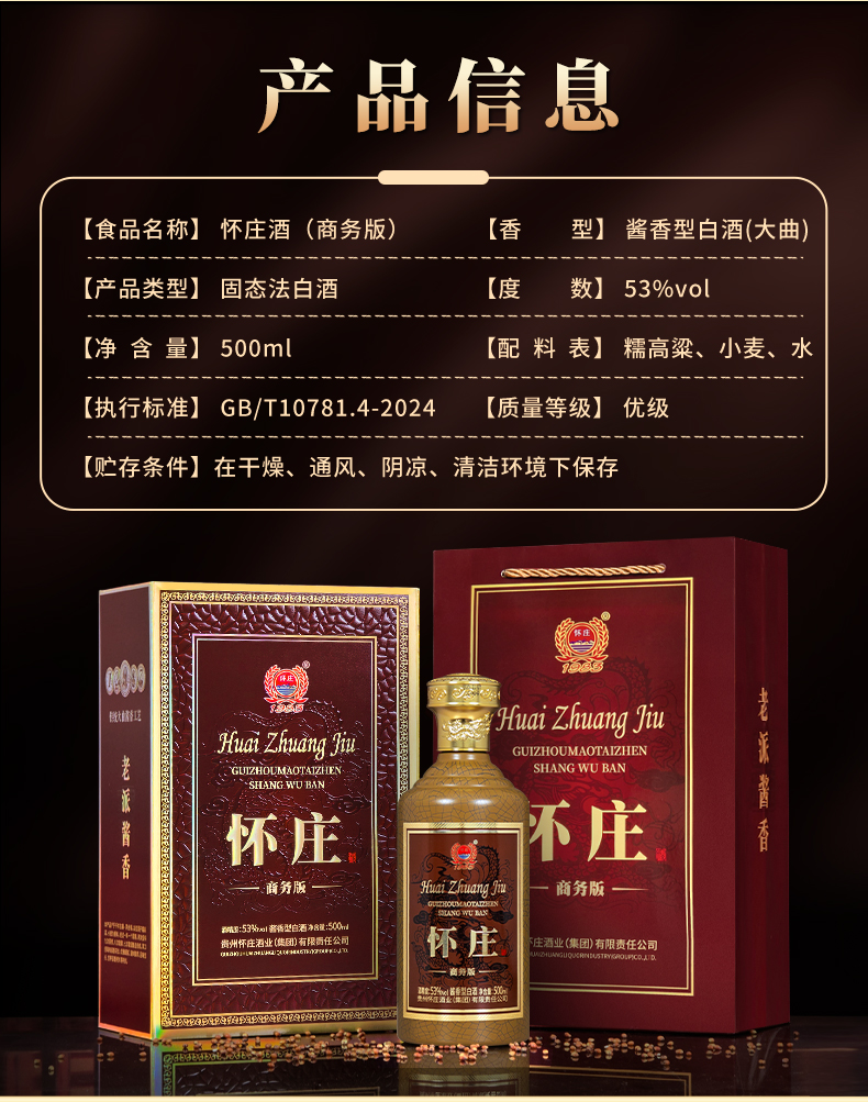 怀庄酒·商务版 53度 酱香型白酒 500ml*6瓶/箱