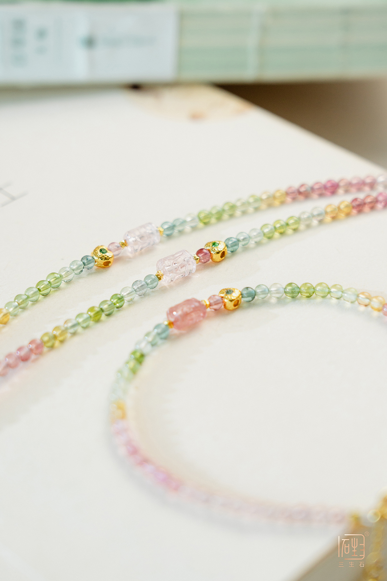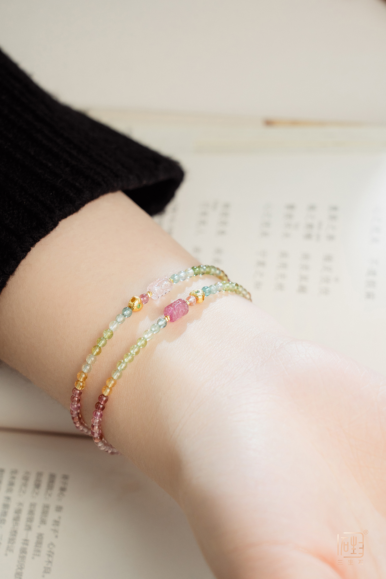 清新的"马卡龙"色的碧玺小手链