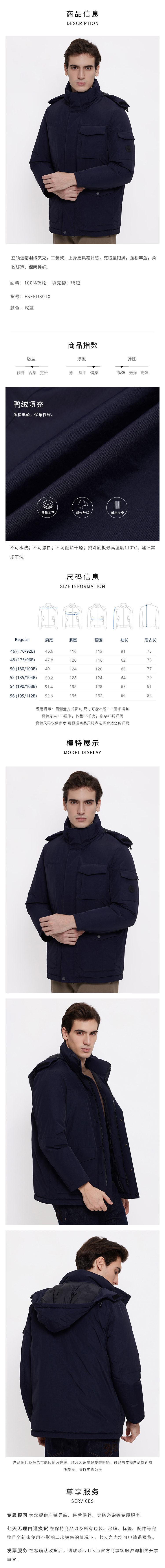 callisto深蓝色鸭绒立领连帽羽绒夹克 FSFED301X