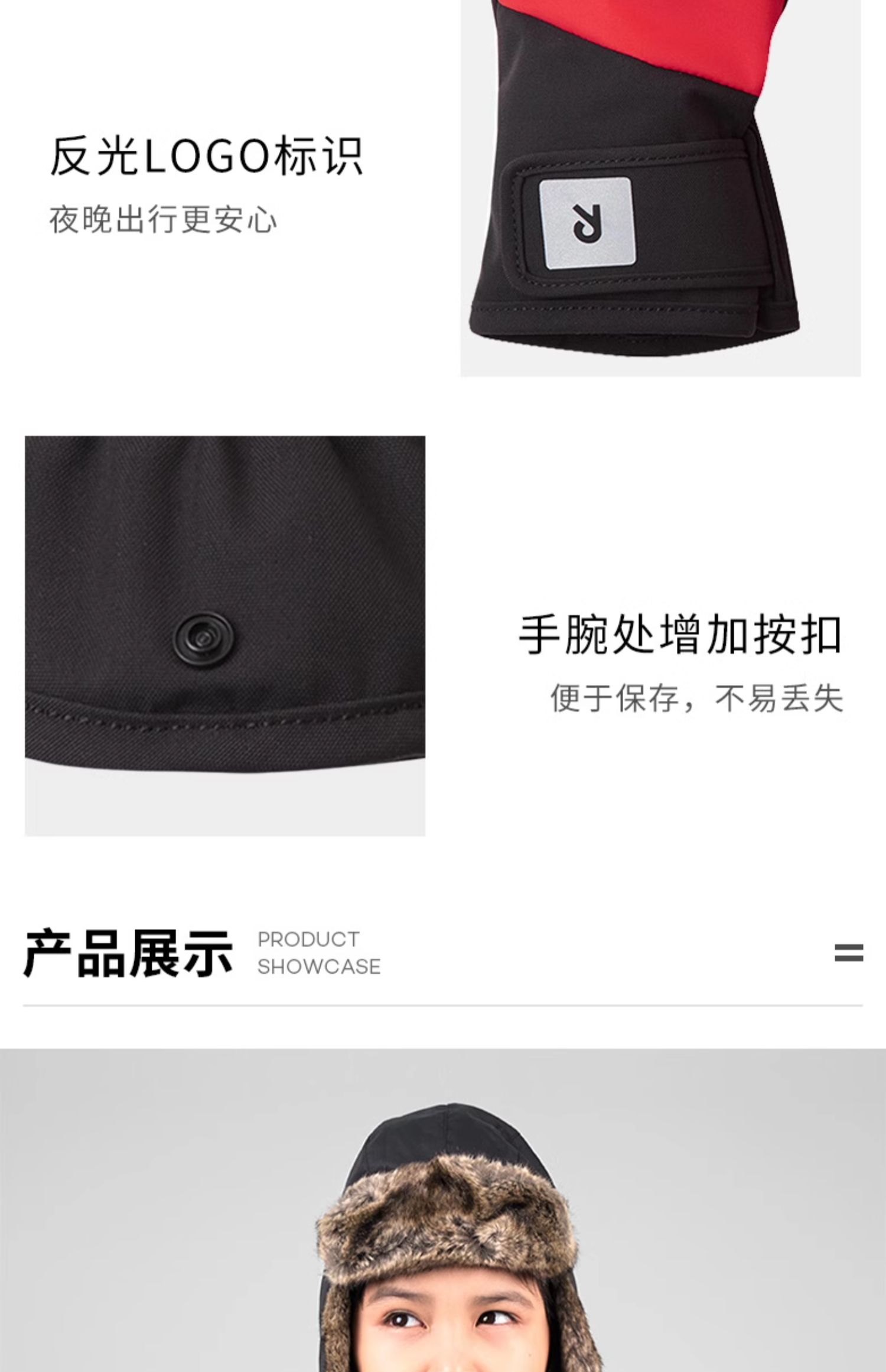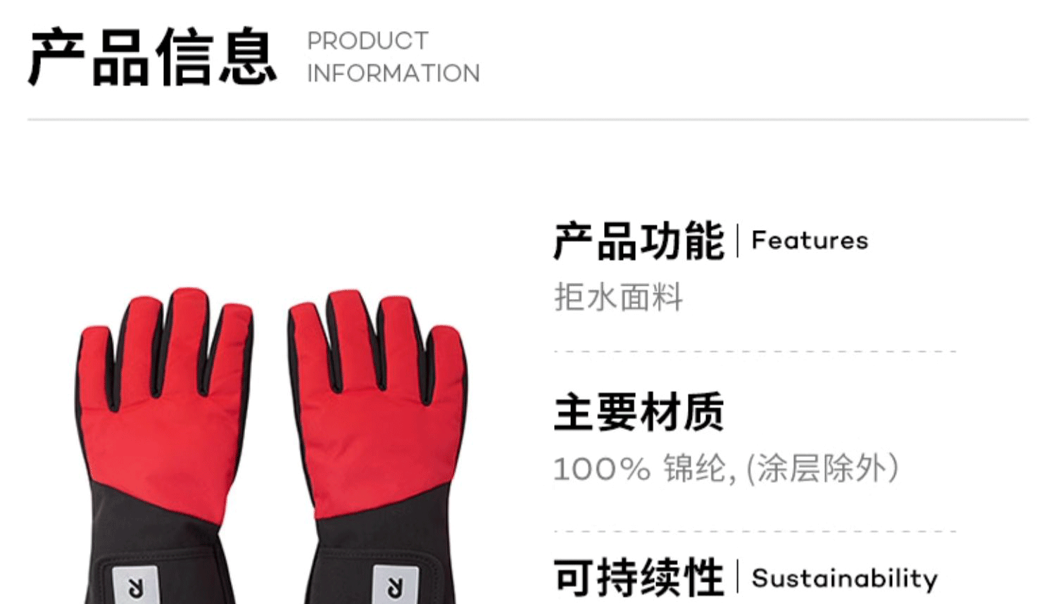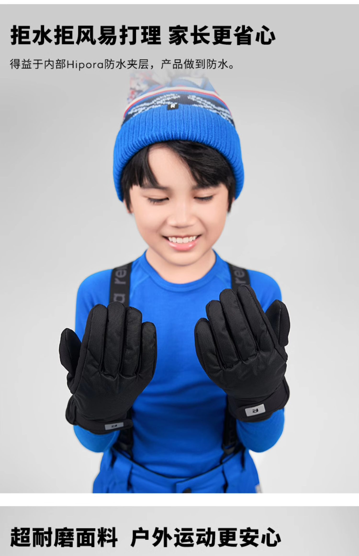 芬兰reima2024冬季新款男女儿童大童拒水防风保暖分指棉手套