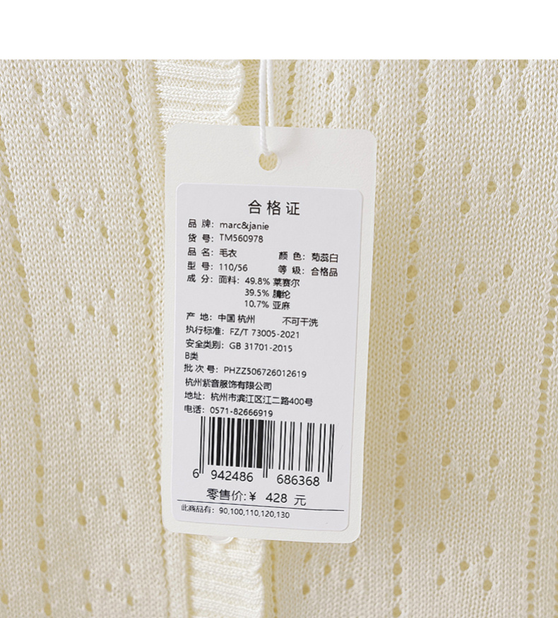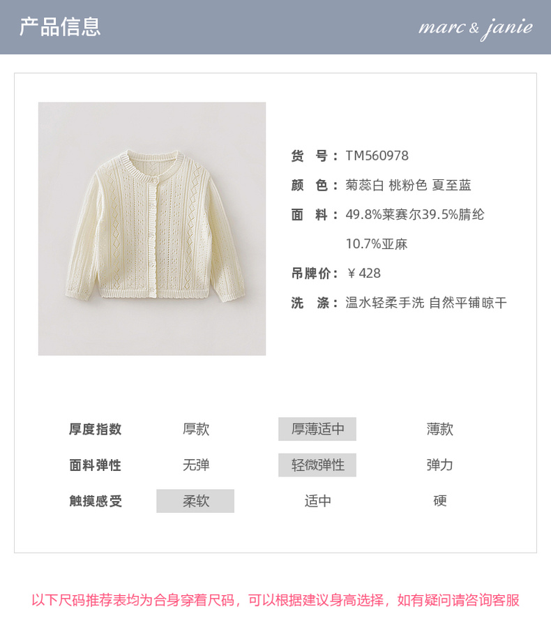 马克珍妮甜美优雅女童透气亚麻空调衫2026年夏装新款560978