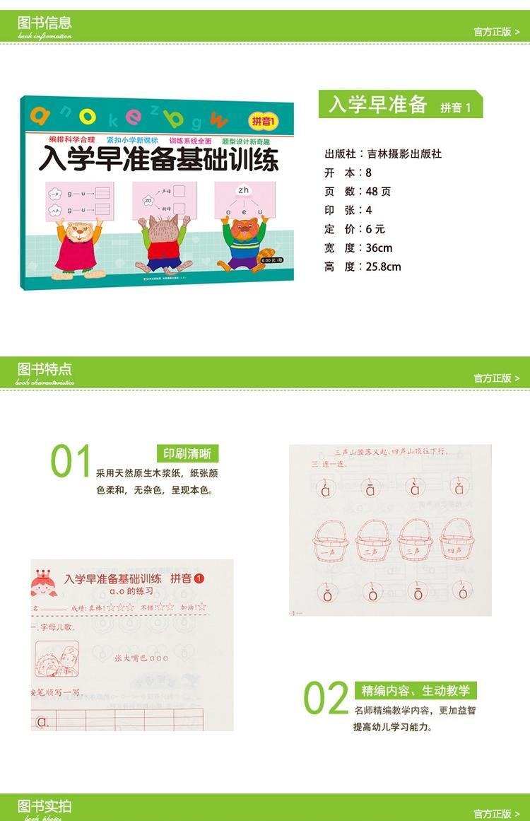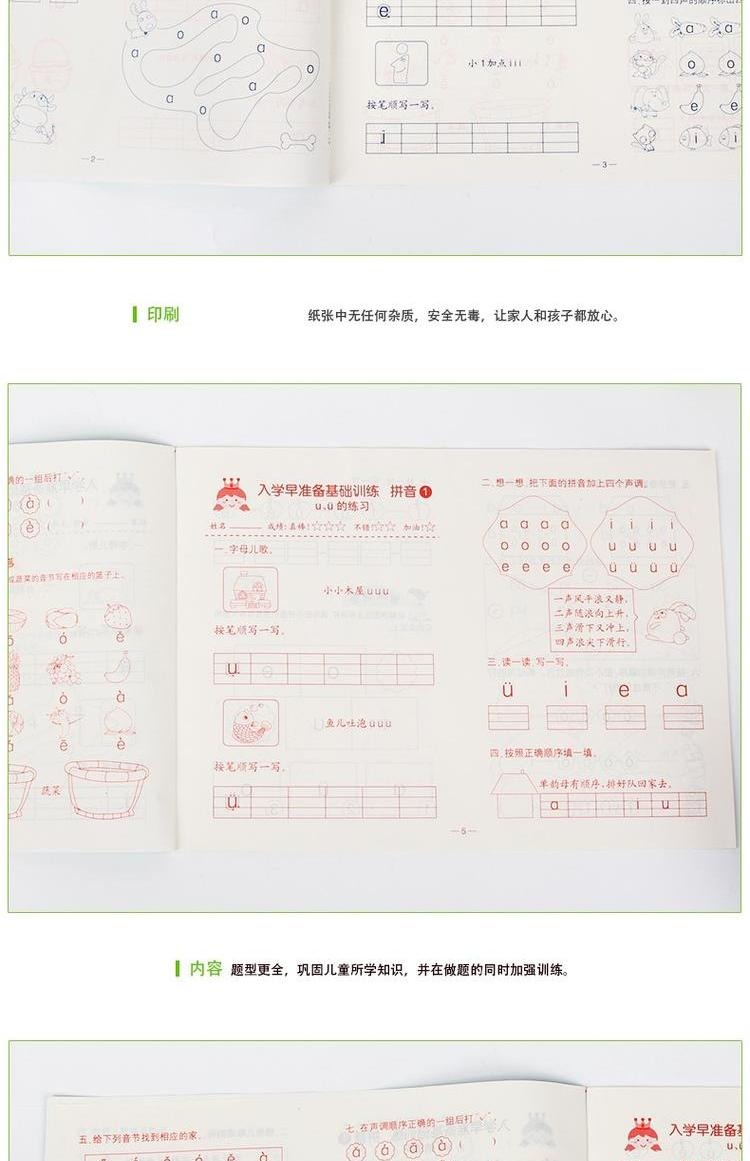 3-6岁儿童入学早准备基础训练 拼音1 学前拼音大练习 幼小衔接拼音测试卷 幼升小拼音练习册