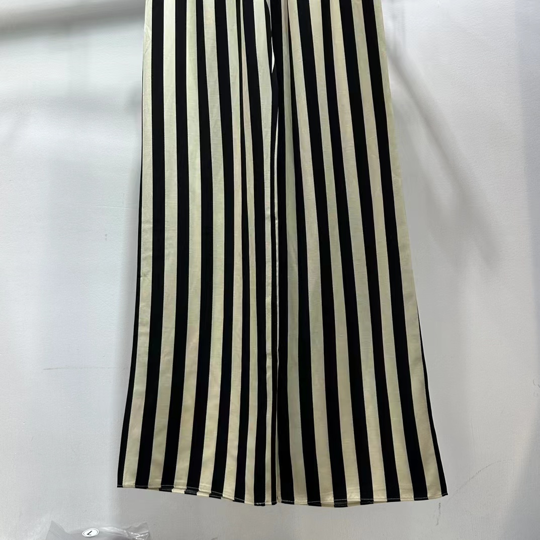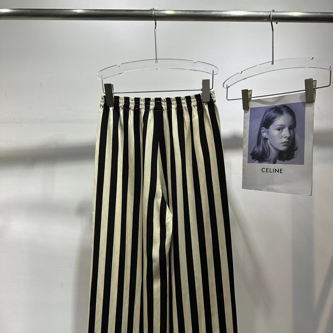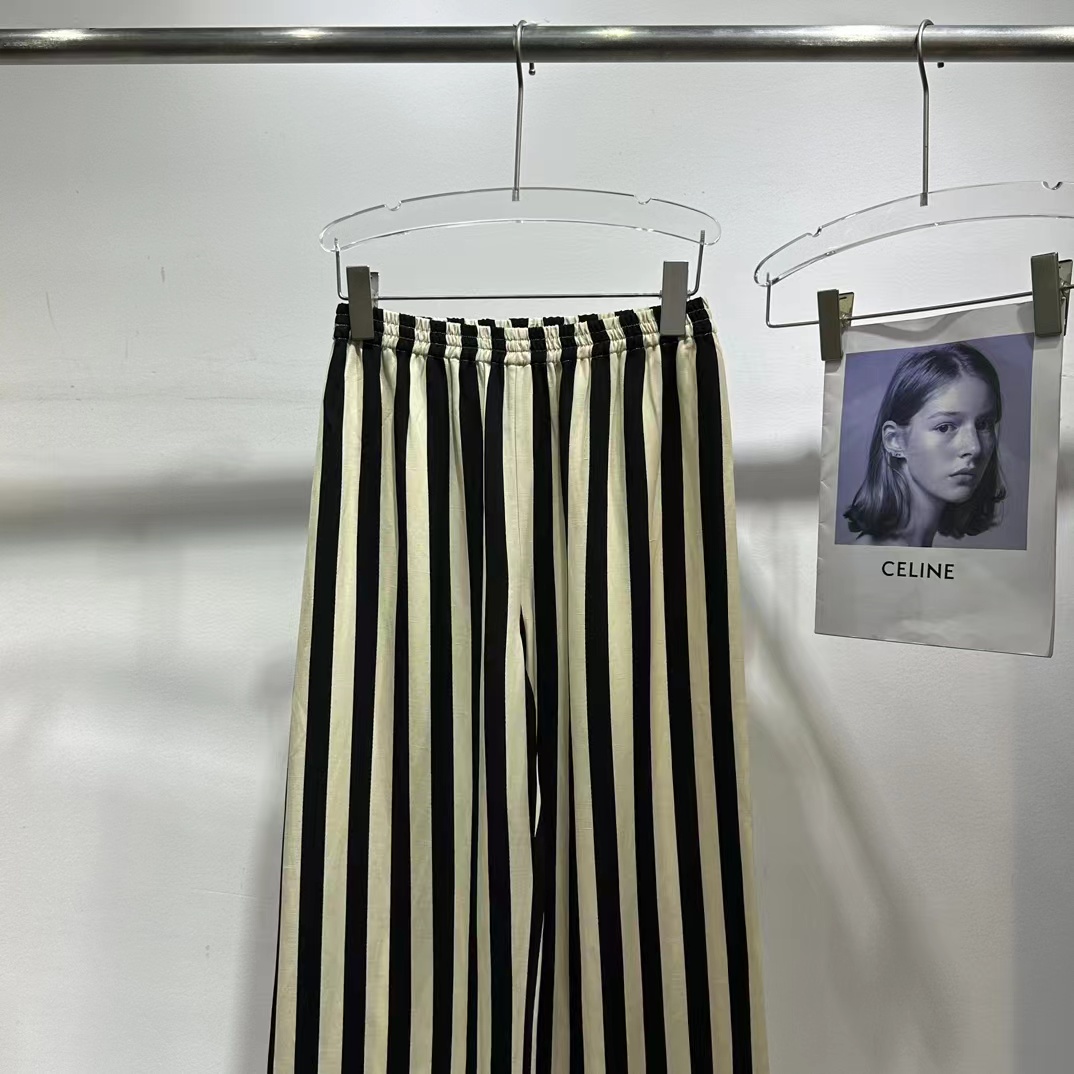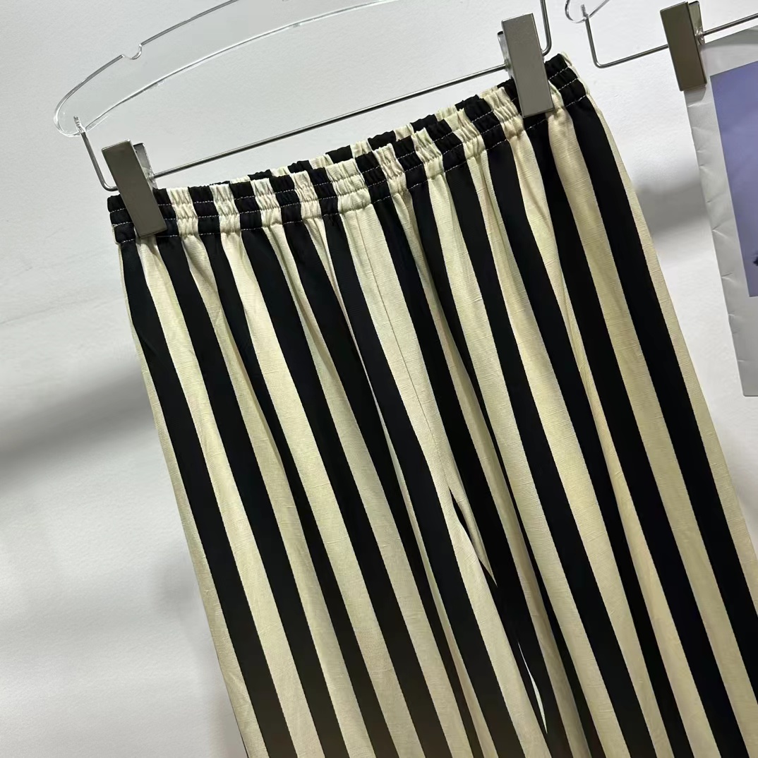 随性通勤条纹人丝麻休闲裤,汲取经典条纹元素