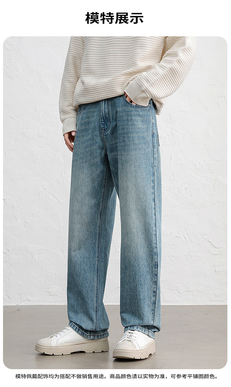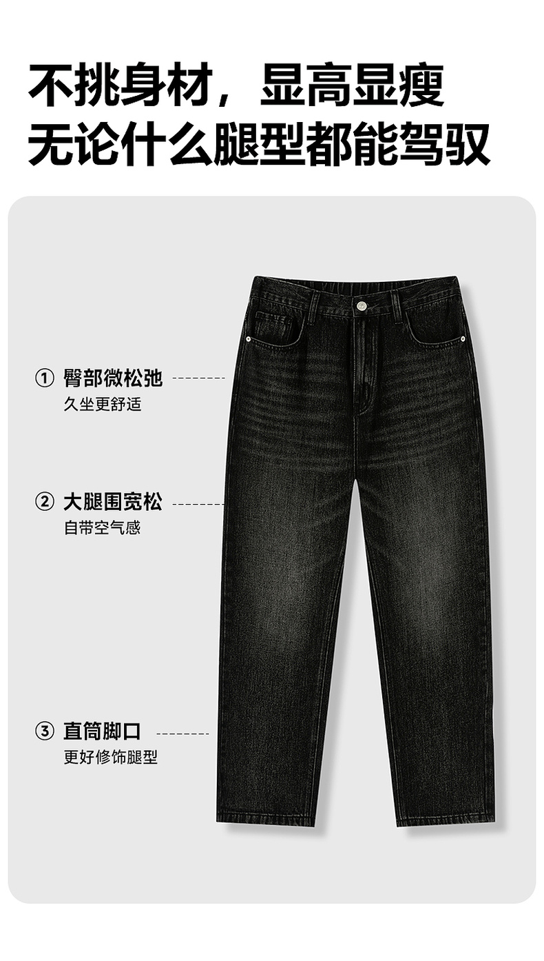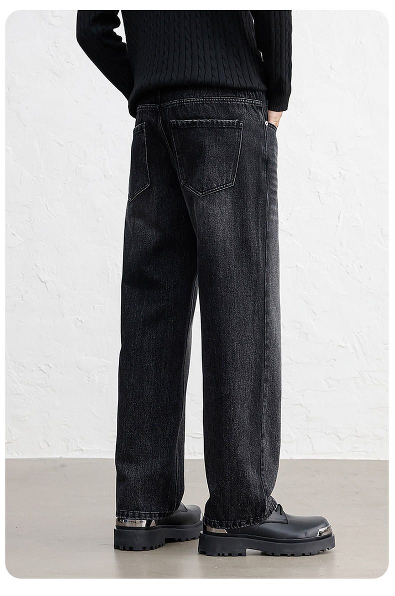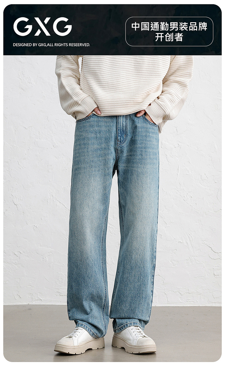 GXG男装25秋季弹力舒适半松紧腰百搭宽松日常通勤直筒男式牛仔裤K&C