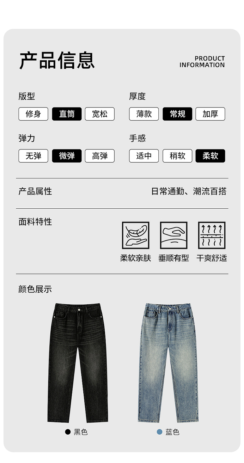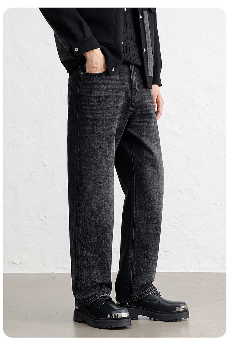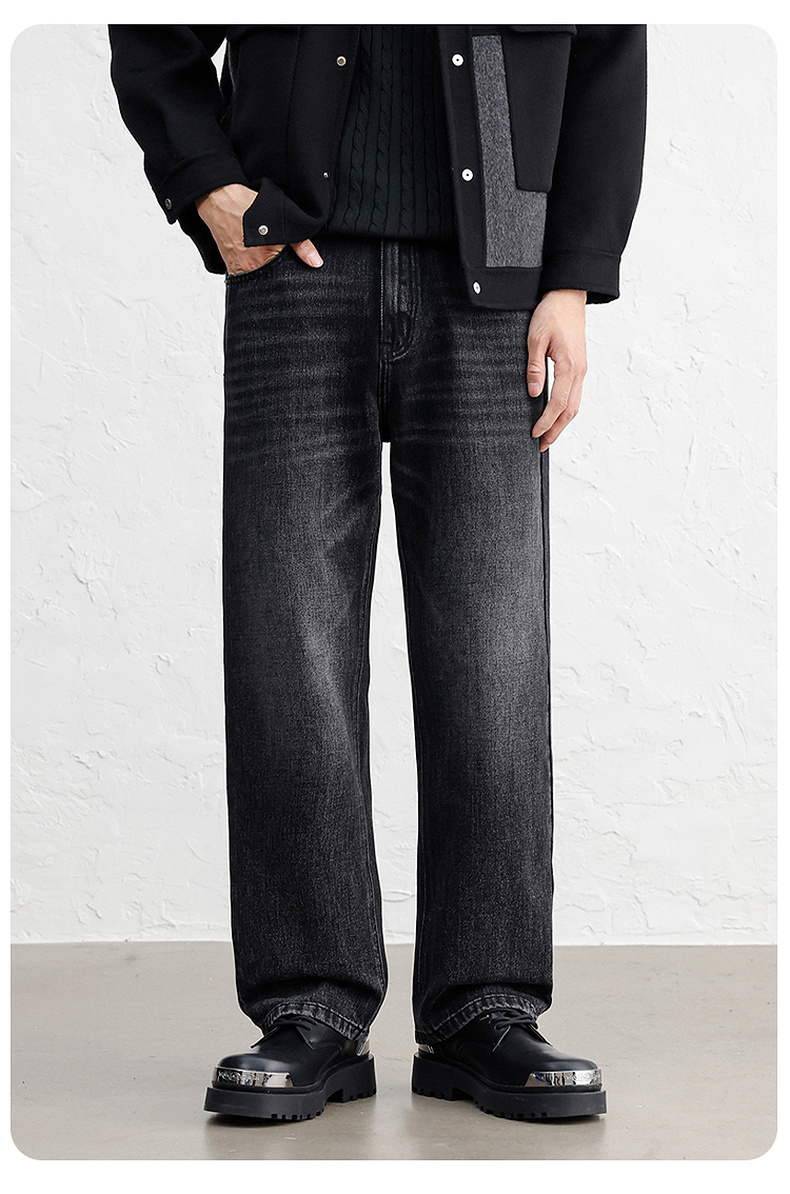 GXG男装25秋季弹力舒适半松紧腰百搭宽松日常通勤直筒男式牛仔裤K&C