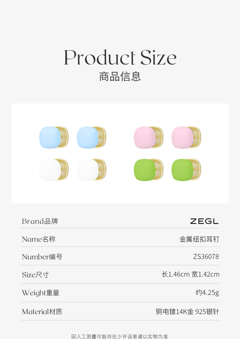 ZEGL纽扣小耳钉小众设计感耳环2022年新款潮925银针夏天气质耳饰