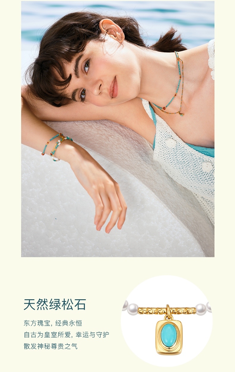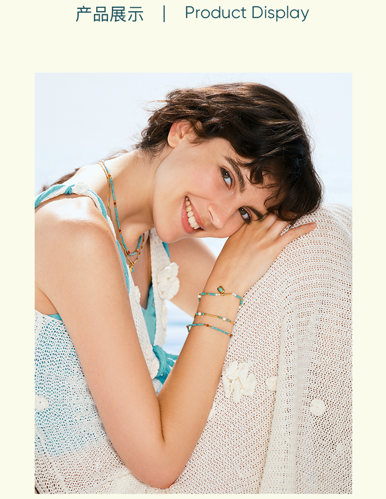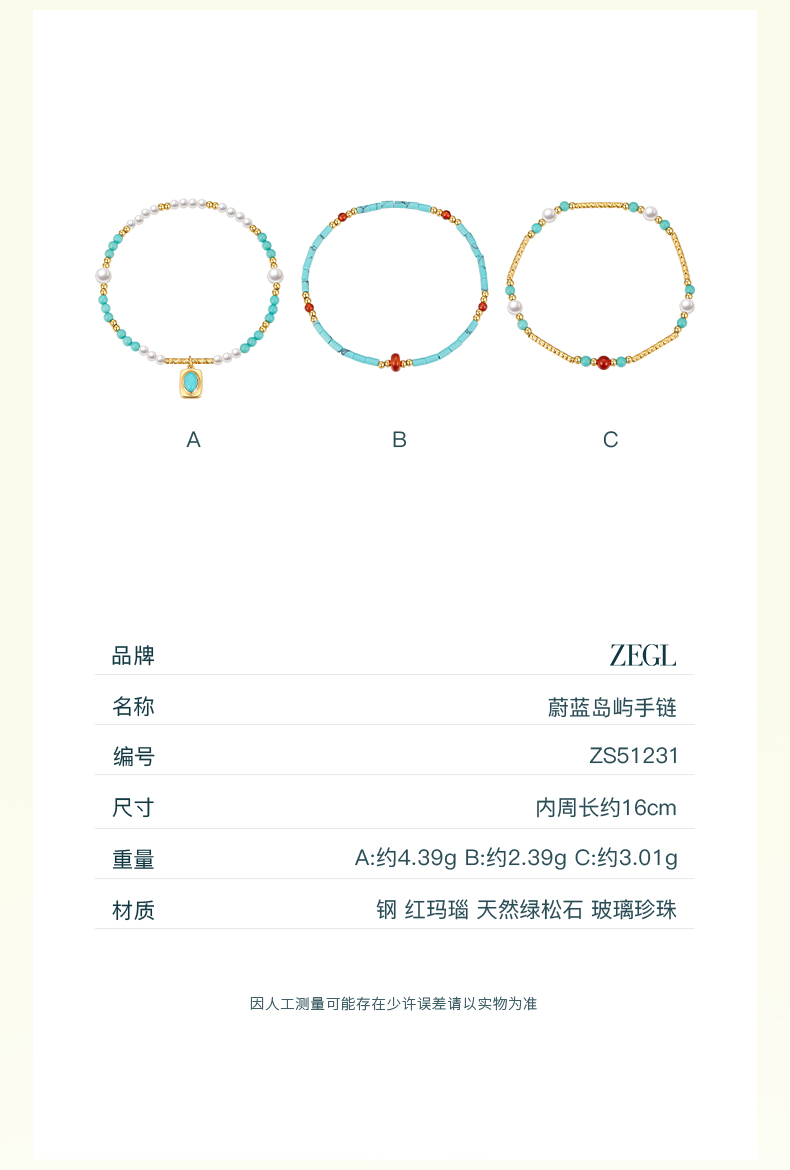 ZEGL设计师小彩串天然绿松石手链手串女小众多巴胺叠戴串珠手饰品