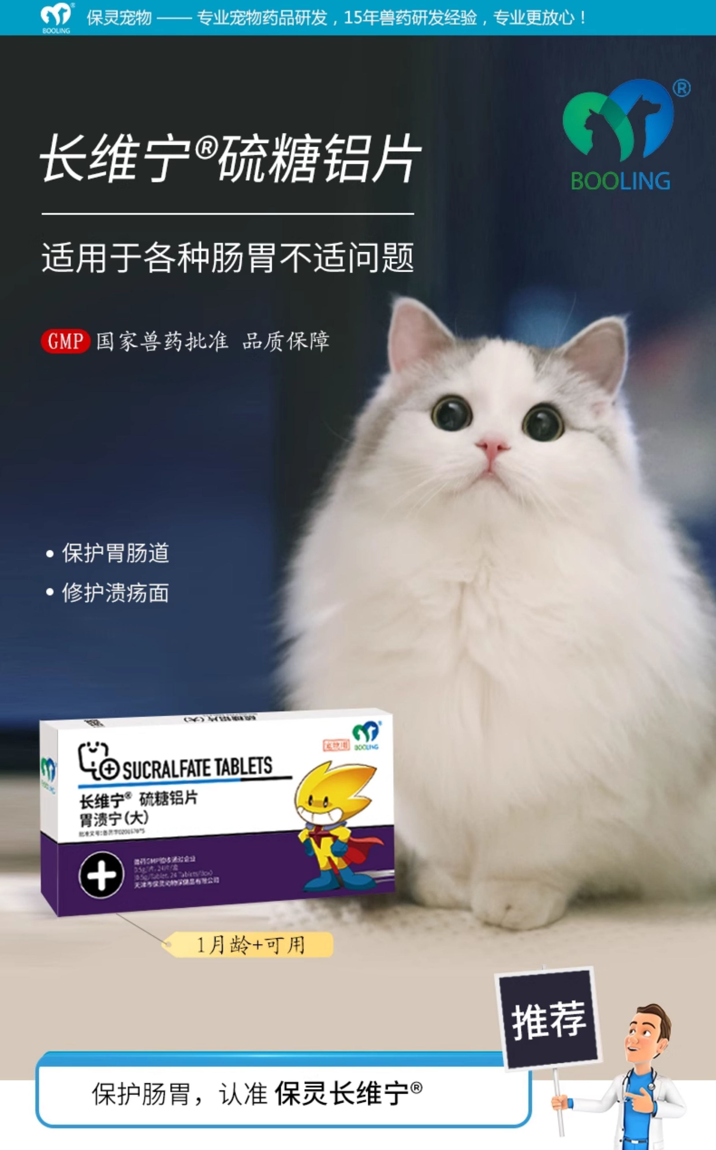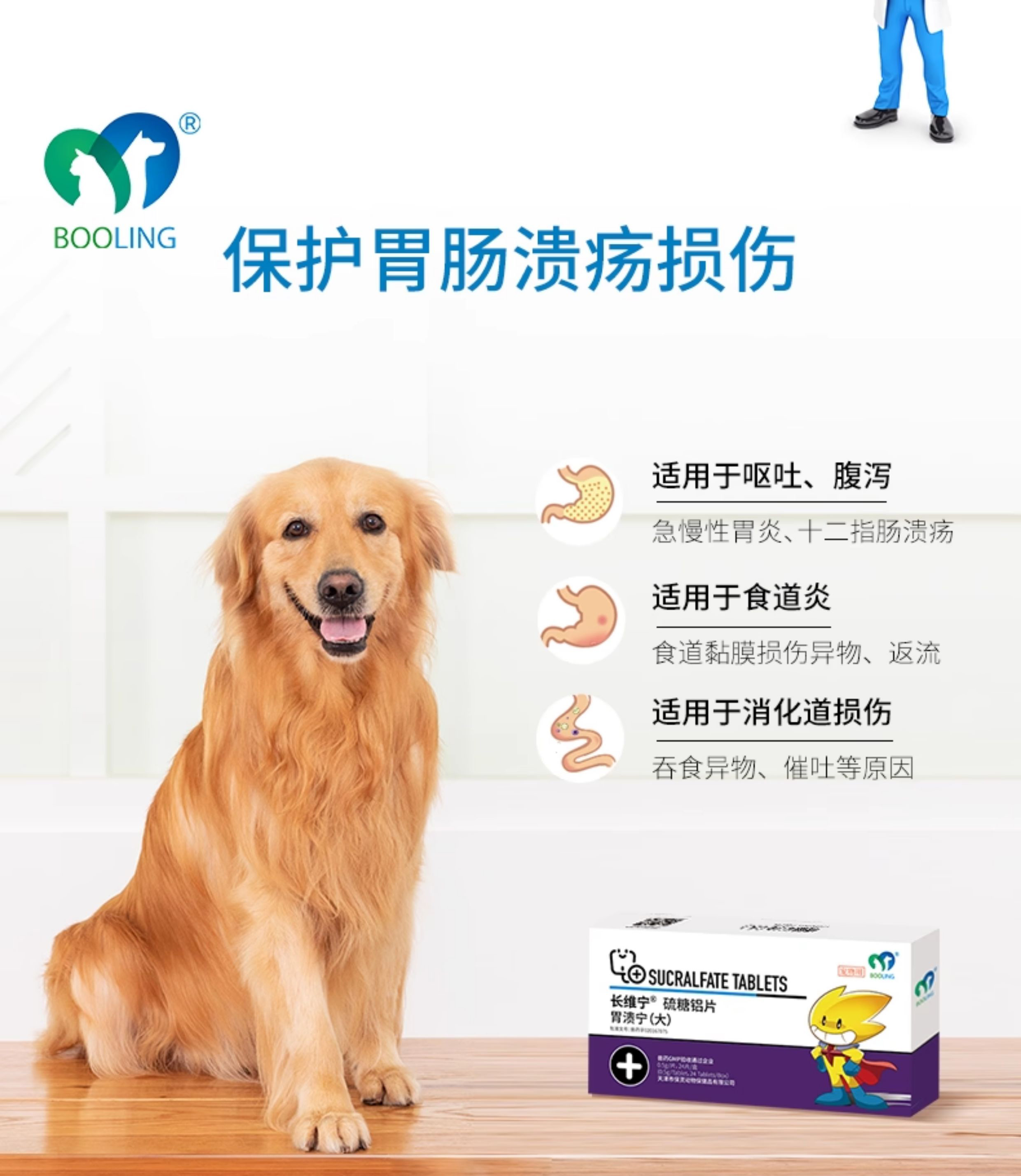 BOOLING保灵胃溃宁长维宁硫糖铝片猫狗肠胃炎吐黄水胃溃疡止吐