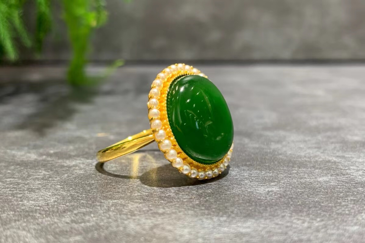【御珠宫坊】金镶碧玉戒指