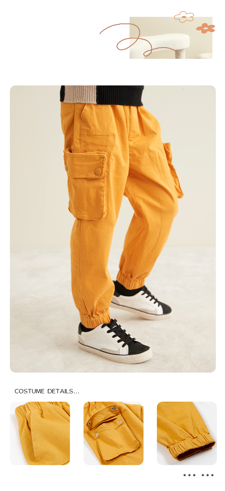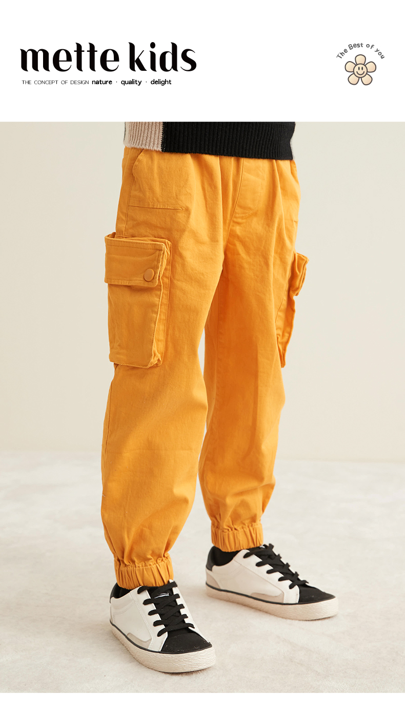 mettekids秋冬新品男童工装裤时尚大口袋纯棉百搭薄款休闲长裤