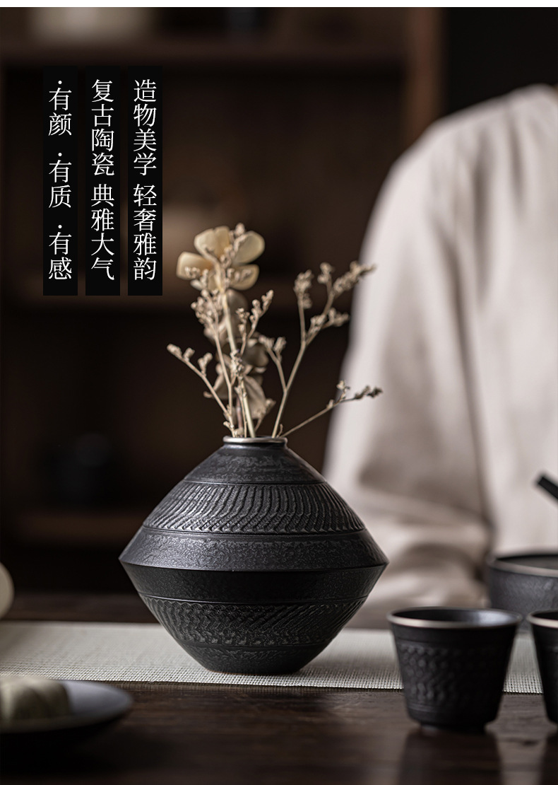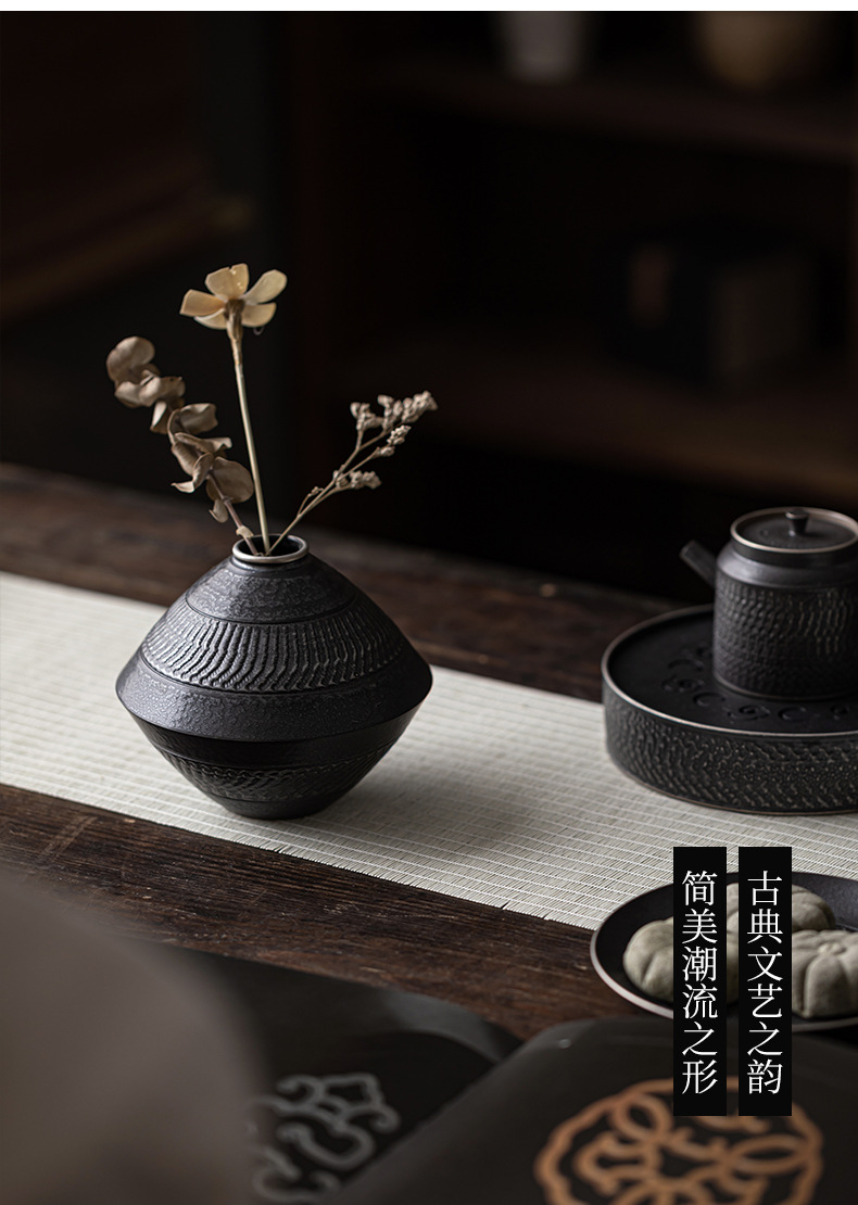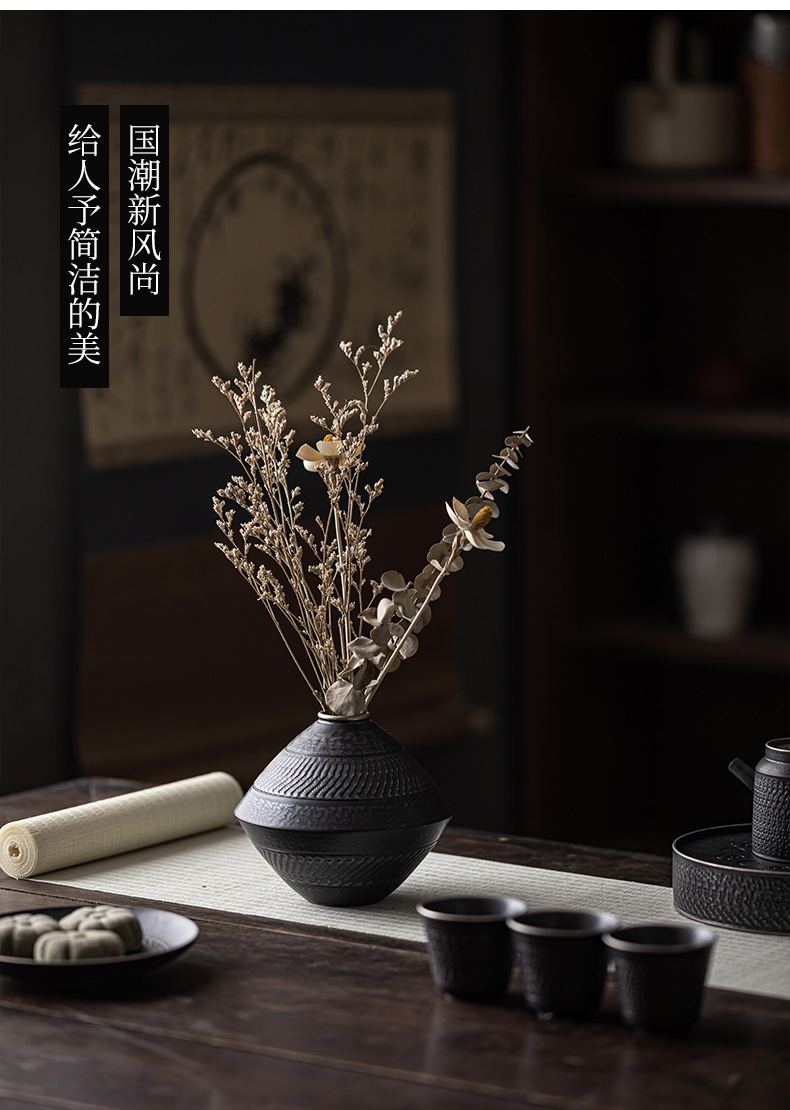 手工跳刀复古小花瓶花插中式家用客厅陶瓷花器茶桌瓷器茶道小摆件