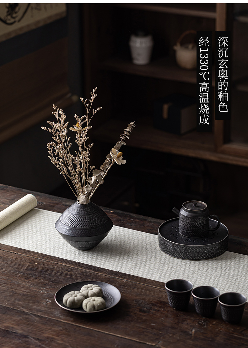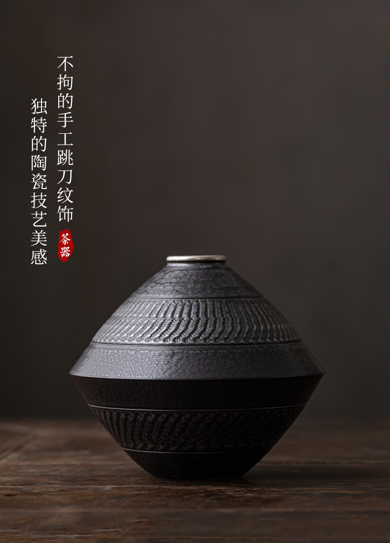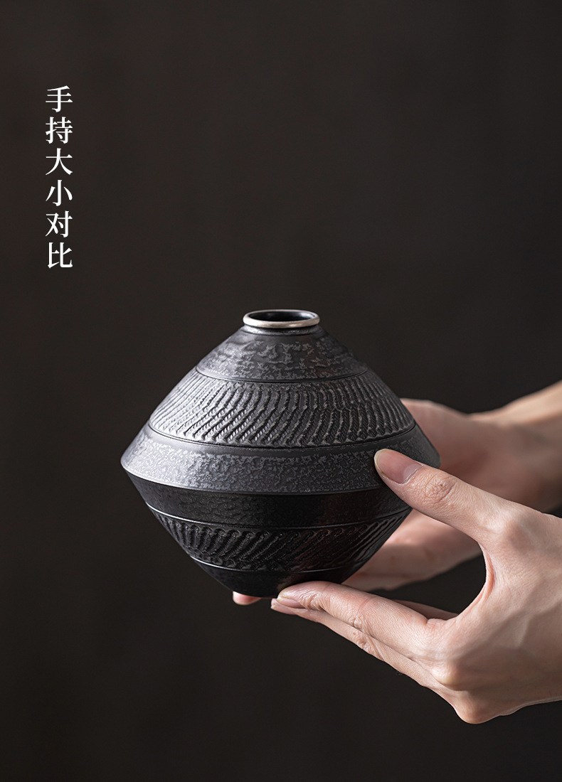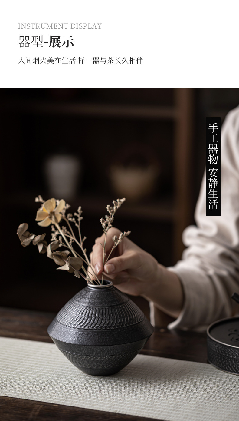 手工跳刀复古小花瓶花插中式家用客厅陶瓷花器茶桌瓷器茶道小摆件