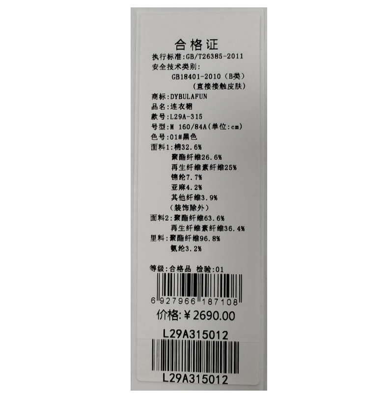 戴布拉芬连衣裙L29A315