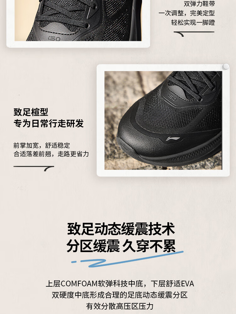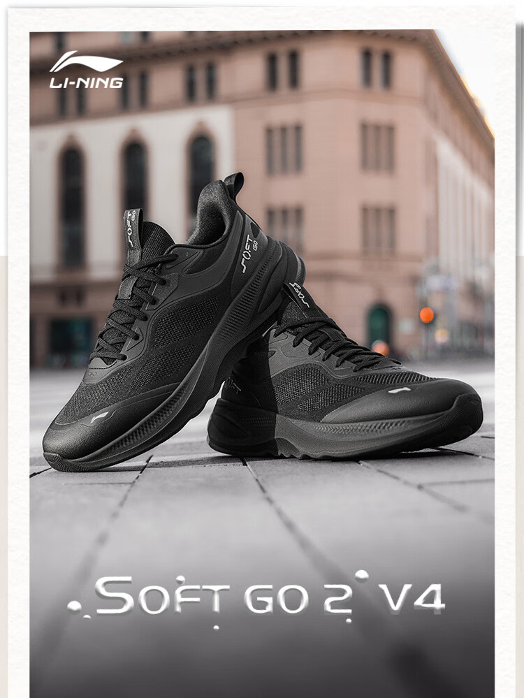 李宁soft go 2 v4潮流休闲鞋男鞋2025春夏新款柔软复古休闲鞋AGLV091
