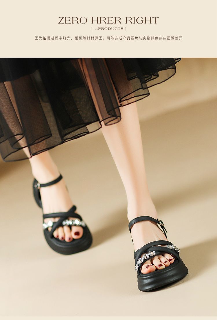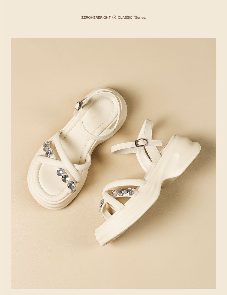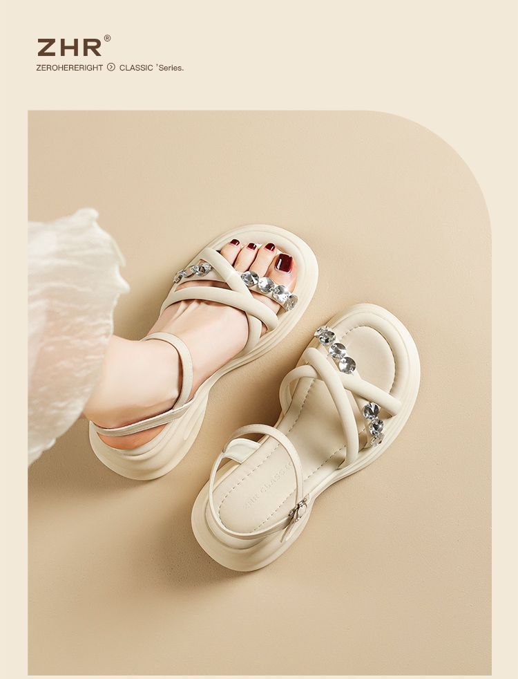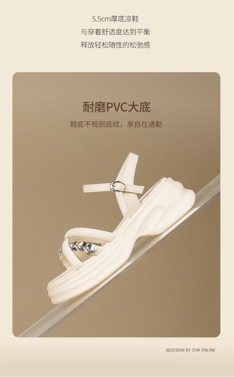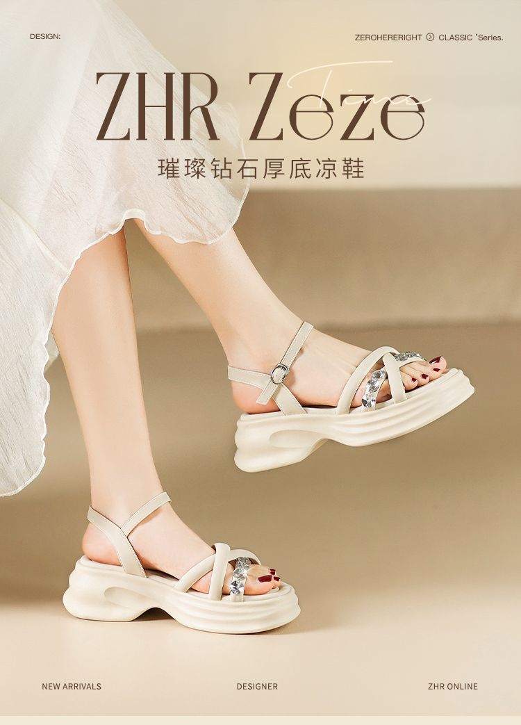 ZHR则则时髦钻石厚底凉鞋女鞋2025夏季新款5.5cm增高透气舒适凉鞋