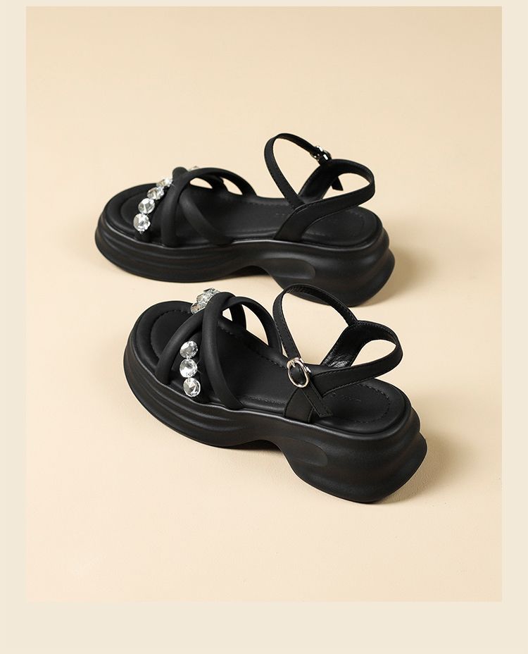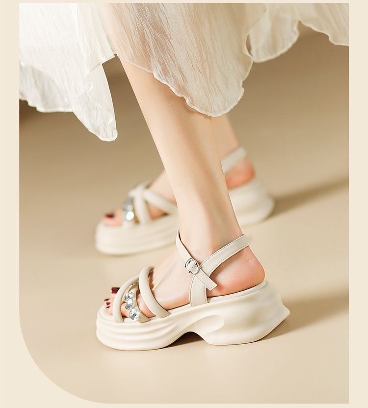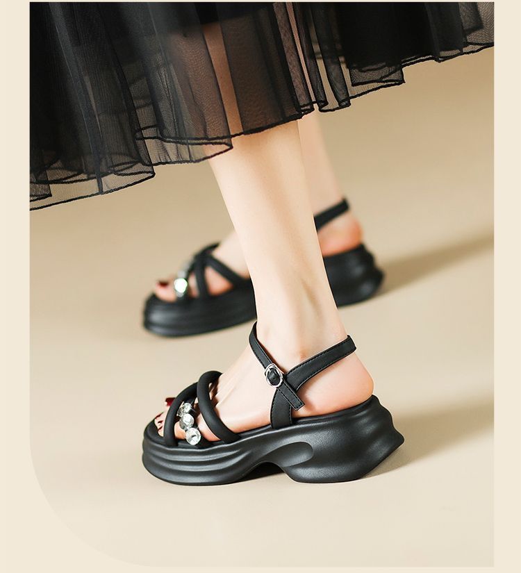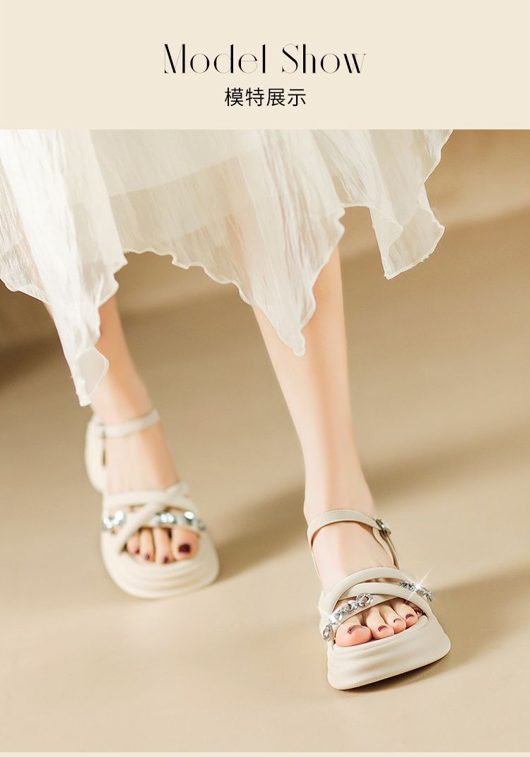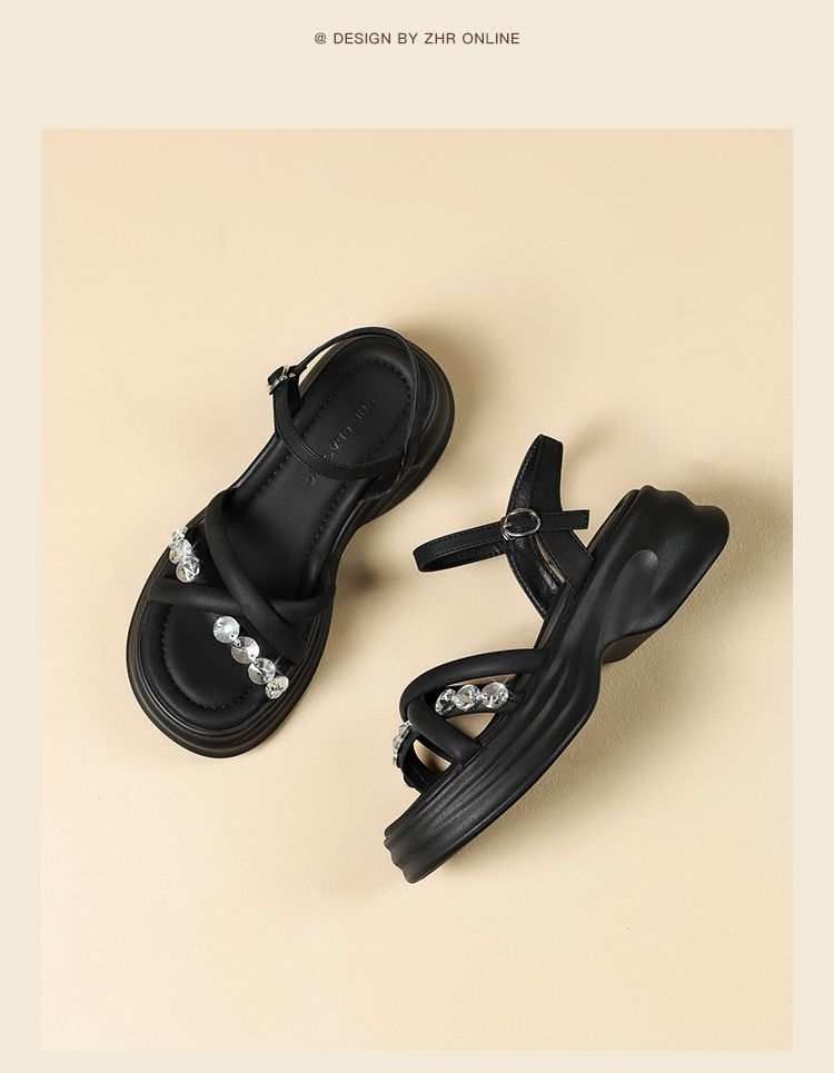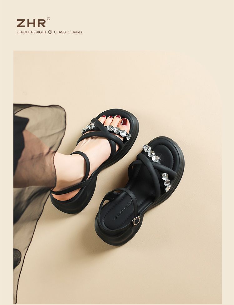 ZHR则则时髦钻石厚底凉鞋女鞋2025夏季新款5.5cm增高透气舒适凉鞋