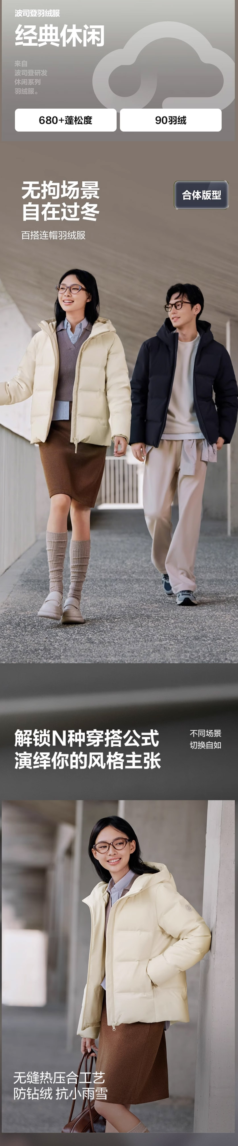 波司登2025冬新款男女短款连帽羽绒服B250245550