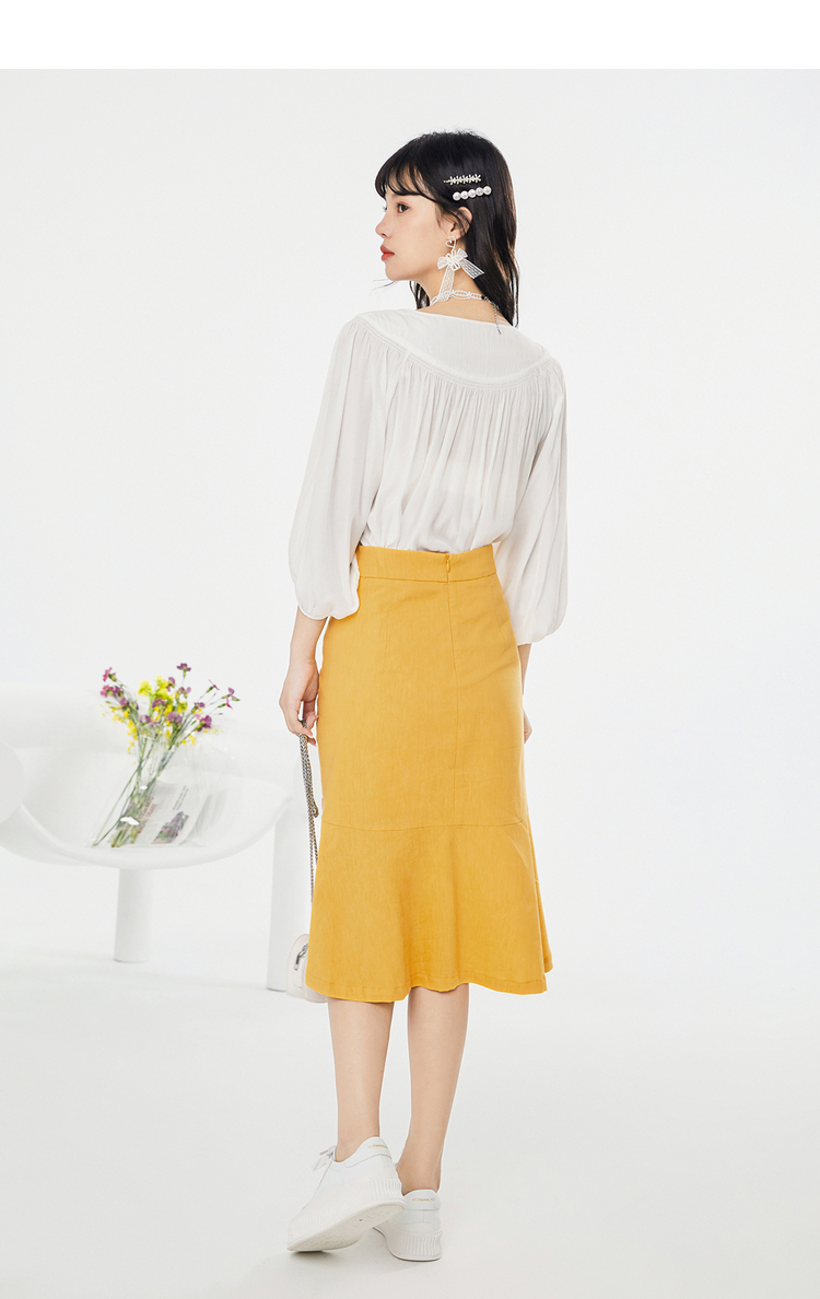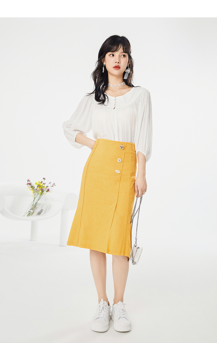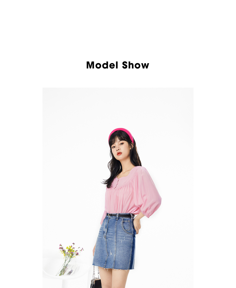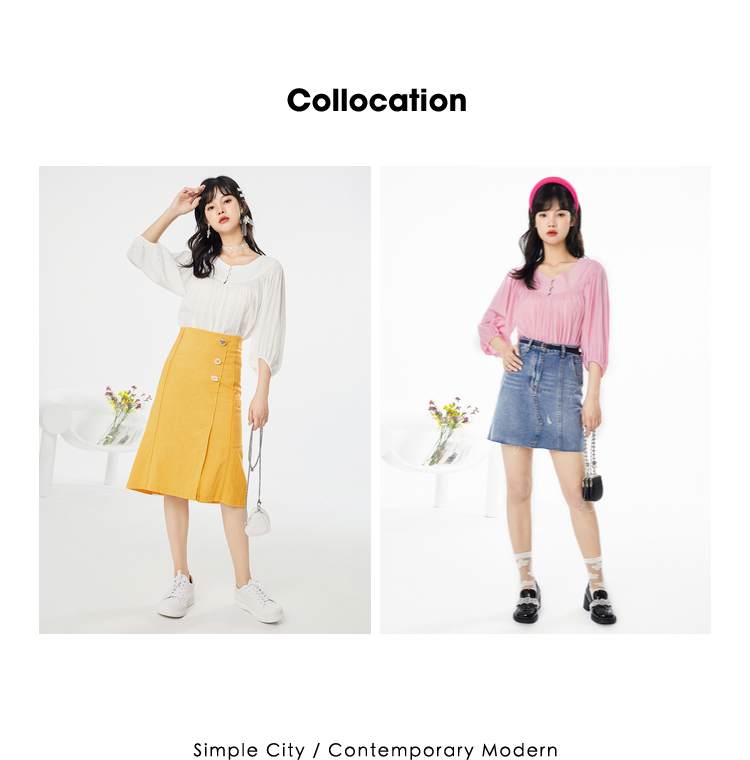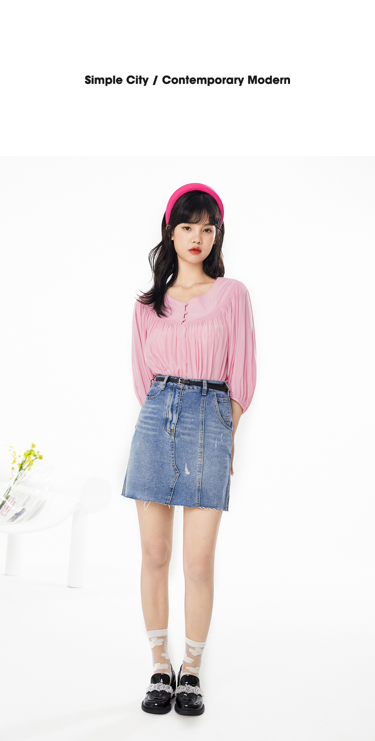 NEELLY纳俪春夏新款女圆领纯色五分灯笼袖衬衫商场同款套头衫N112005CR161