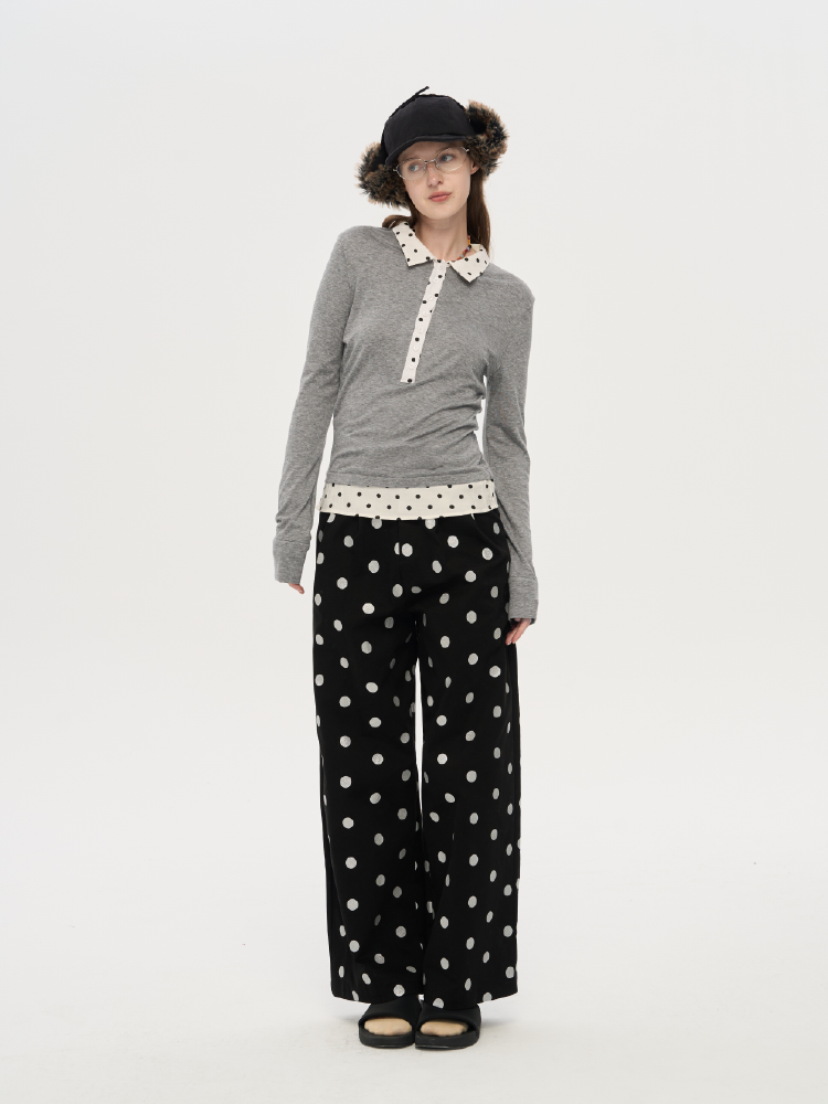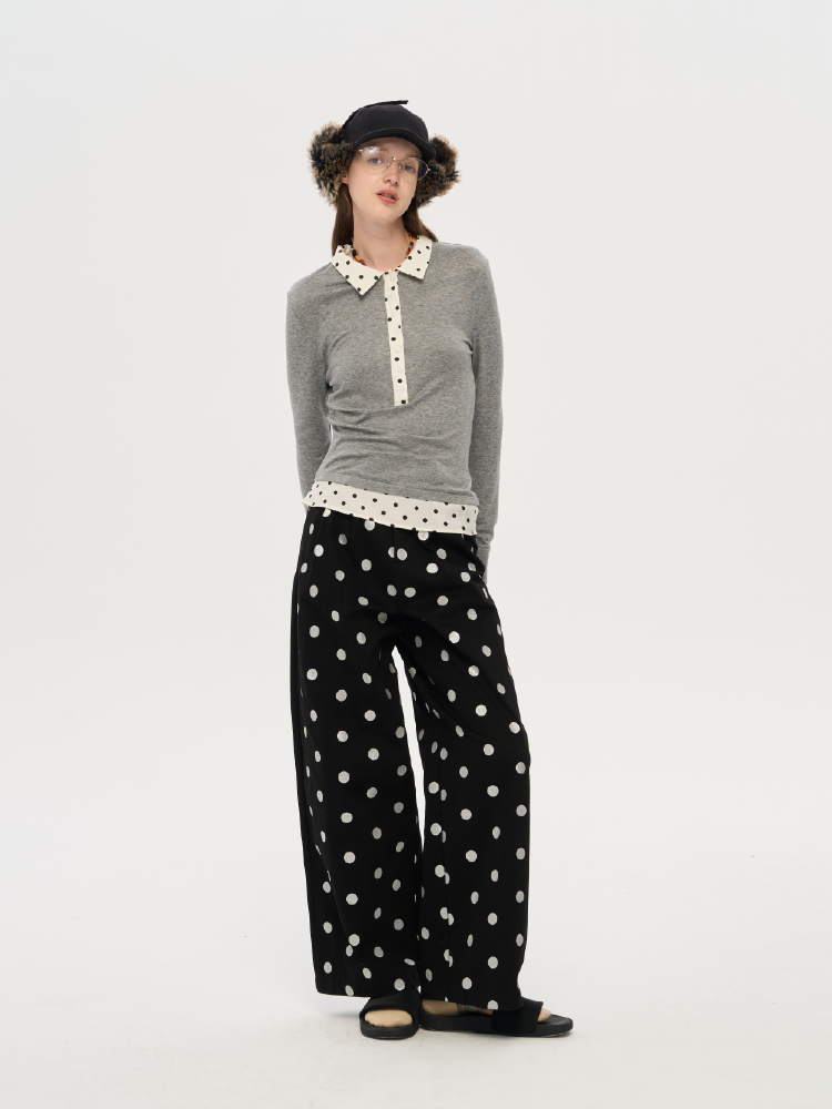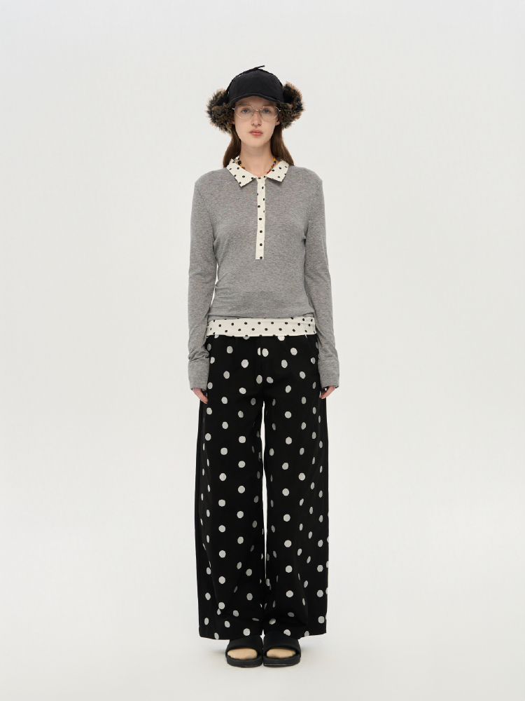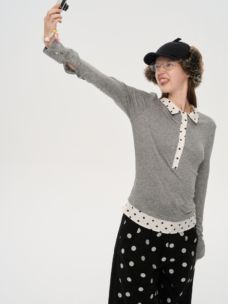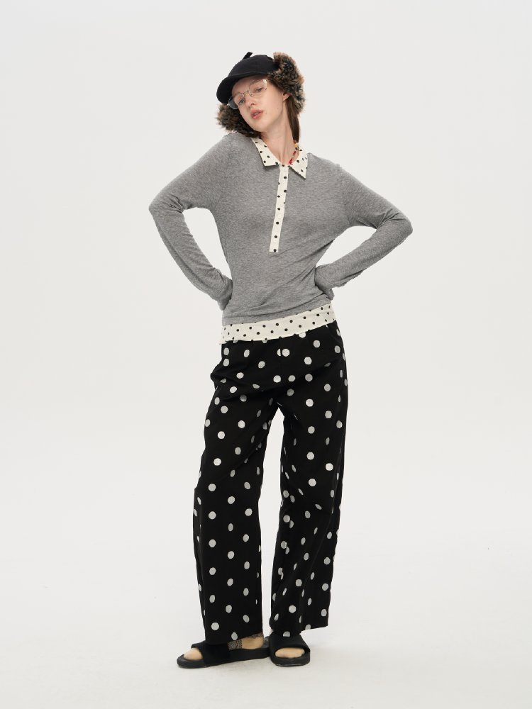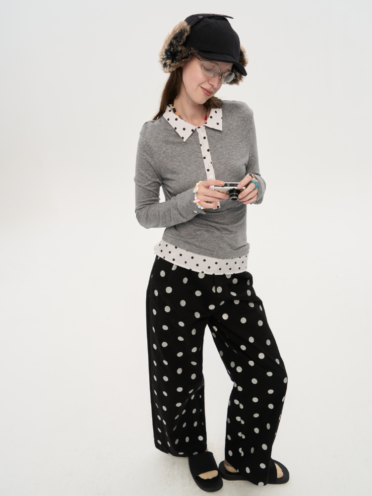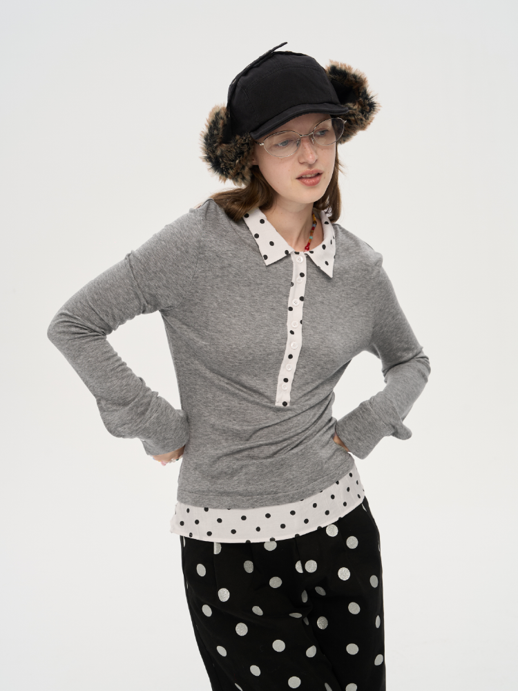 local tag/lt25awk10/波点拼接翻领上衣