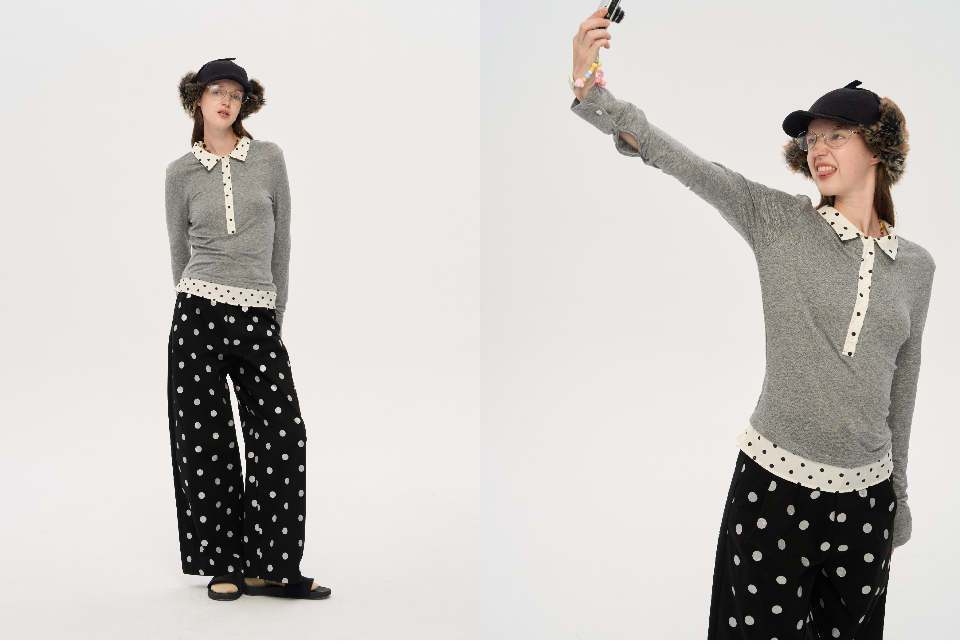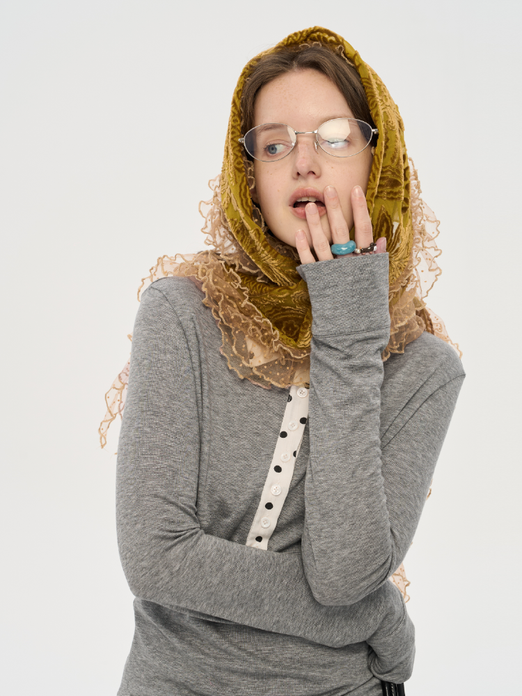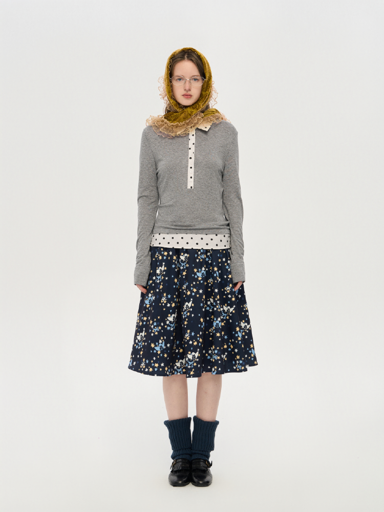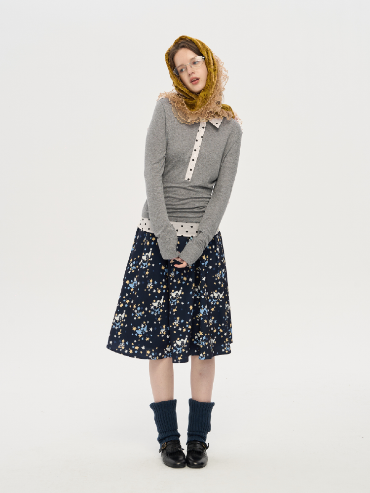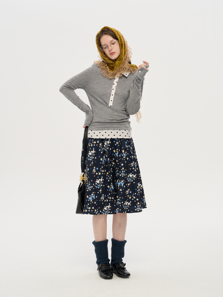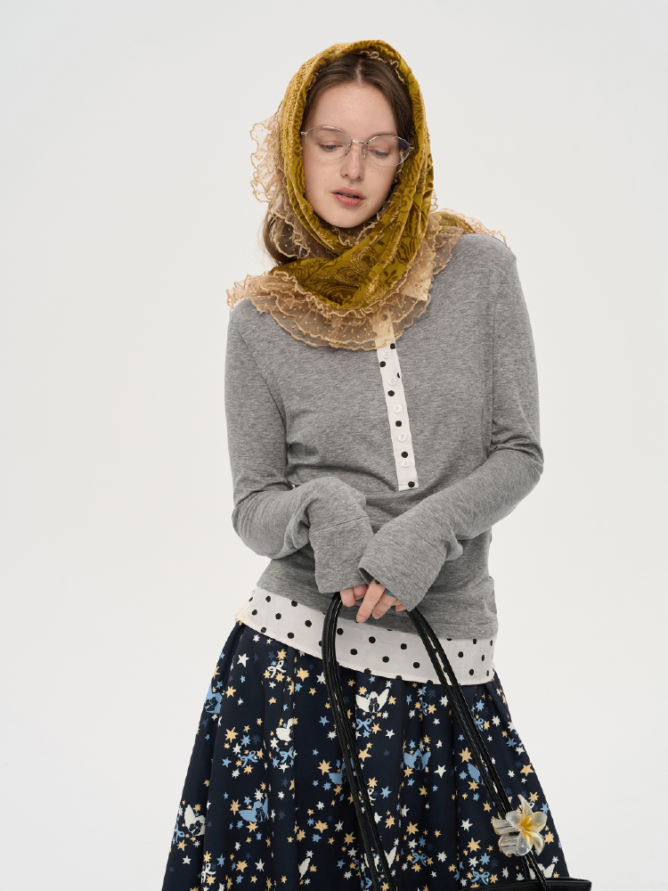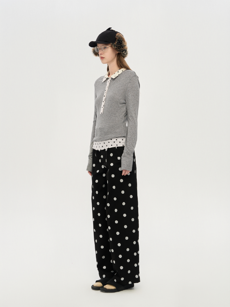 local tag/lt25awk10/波点拼接翻领上衣