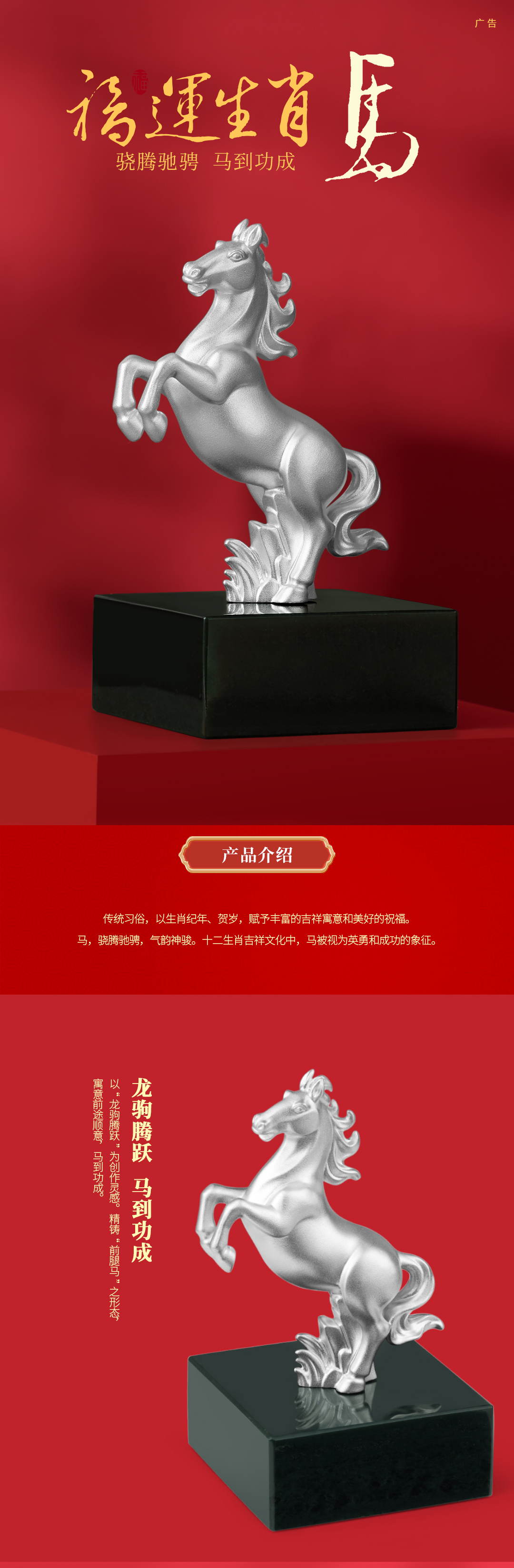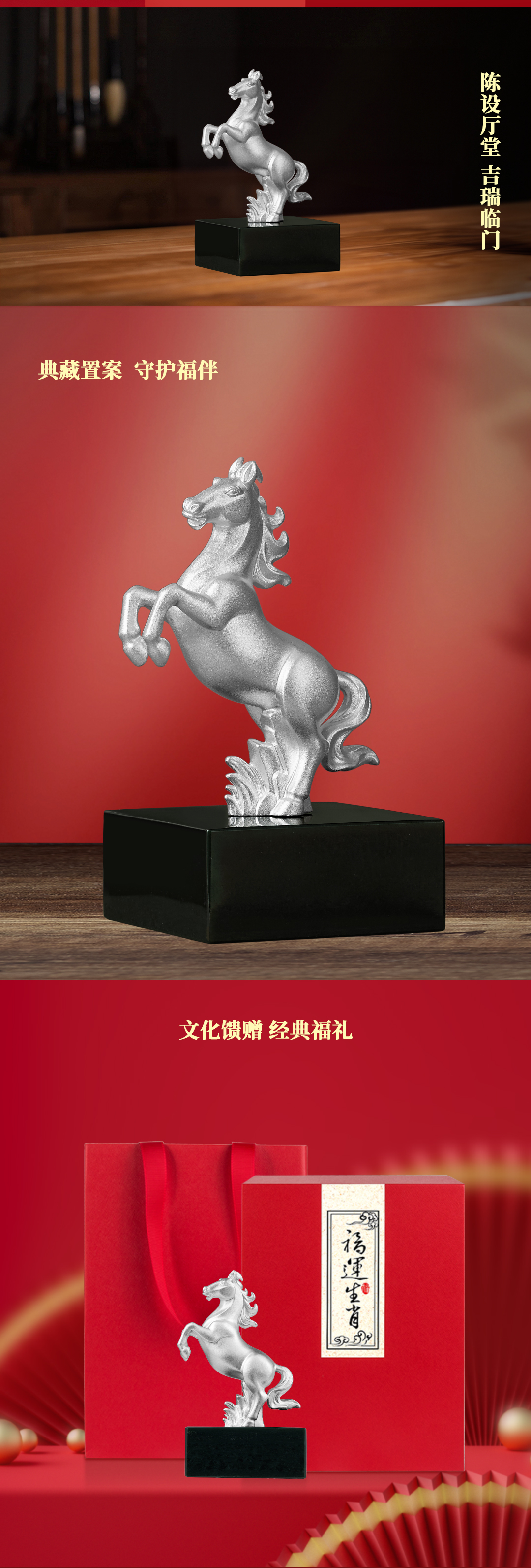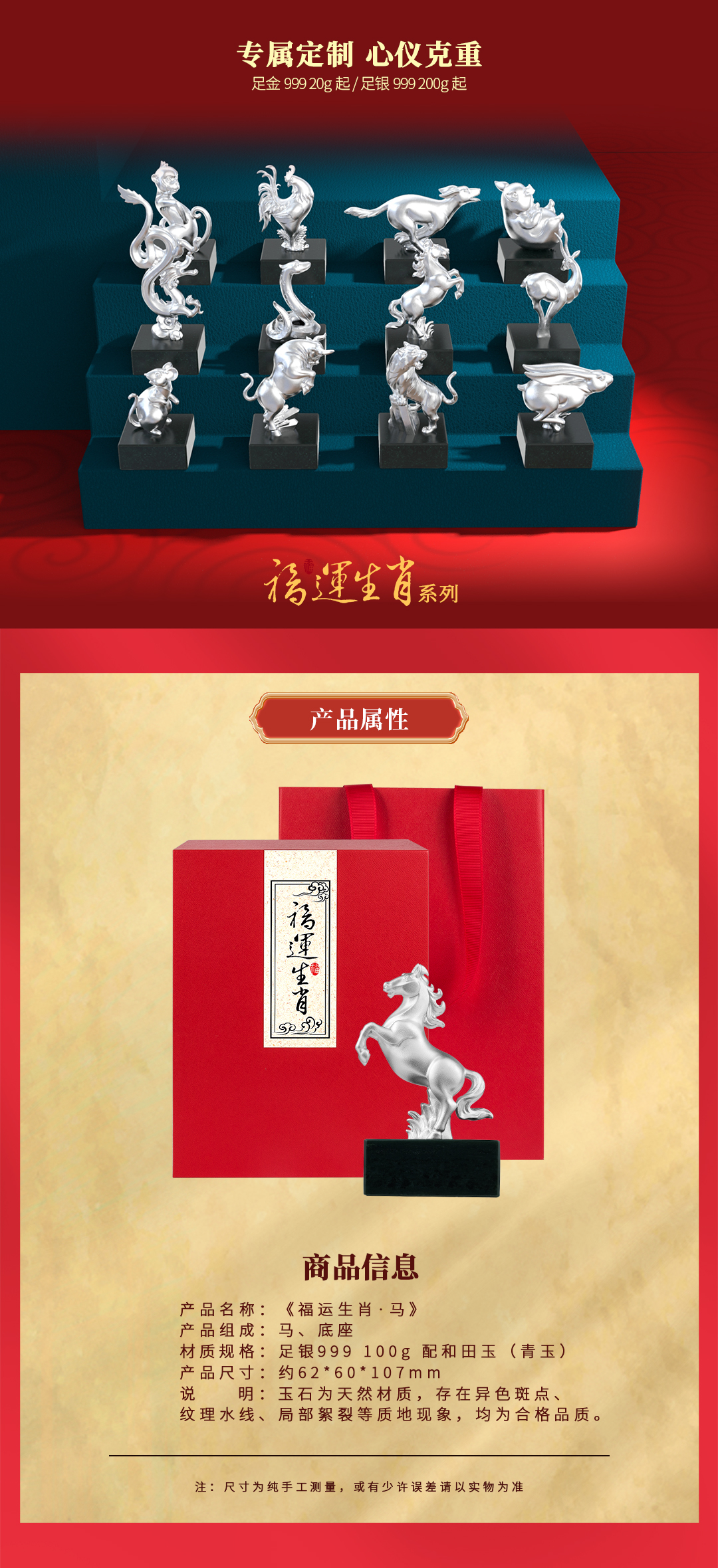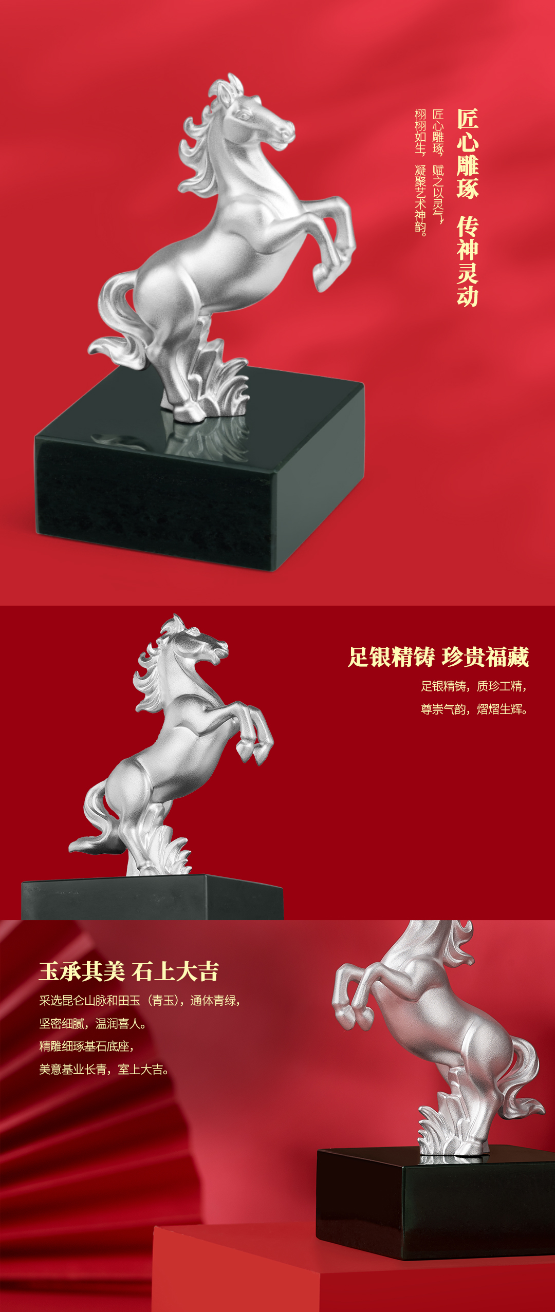《福运生肖·马》神骏龙驹 前腿马 马到成功 足银 和田玉 十二生肖艺术摆件 商务 贺岁 生日 礼品