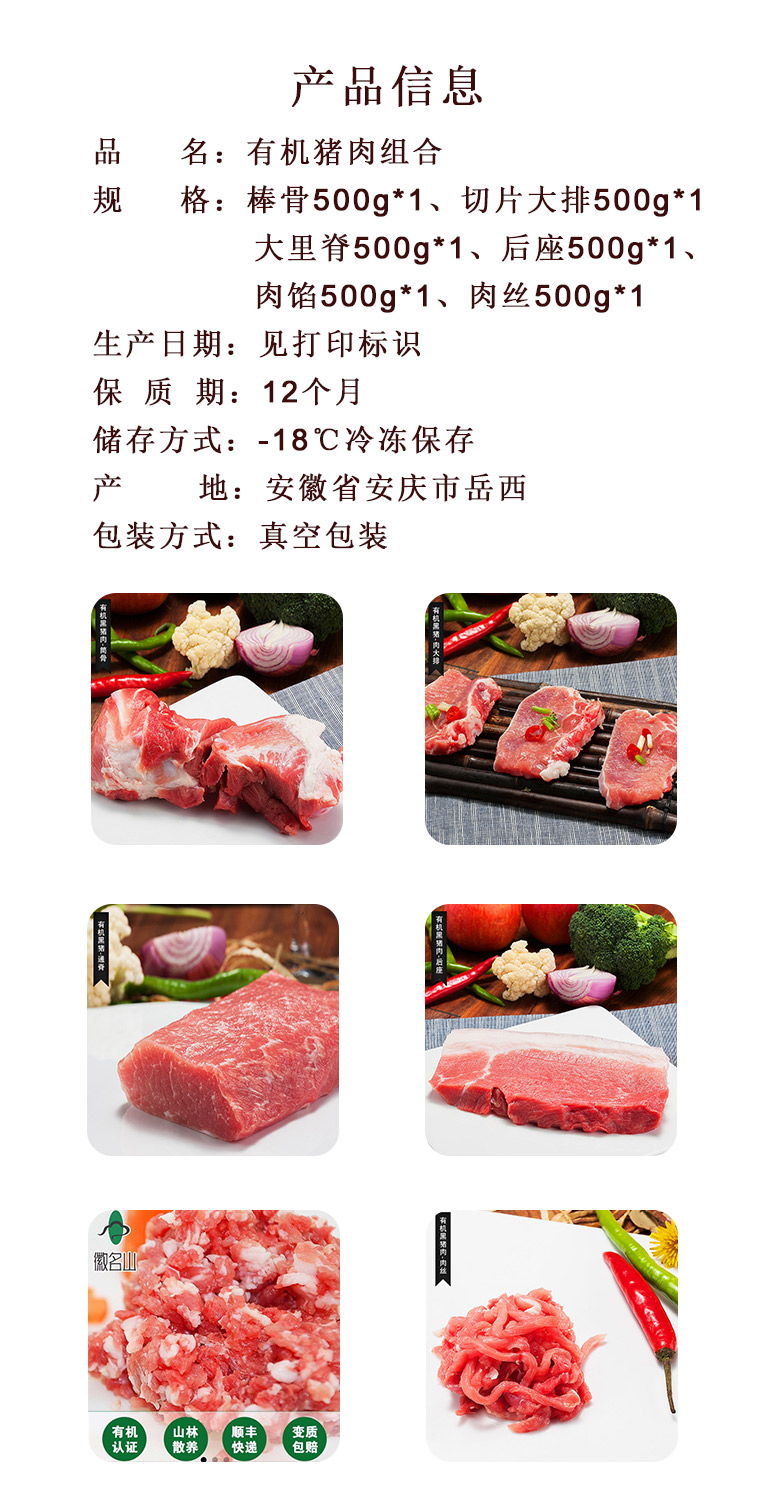 有机黑猪肉组合 6个品种 6斤装 顺丰冷链包邮到家