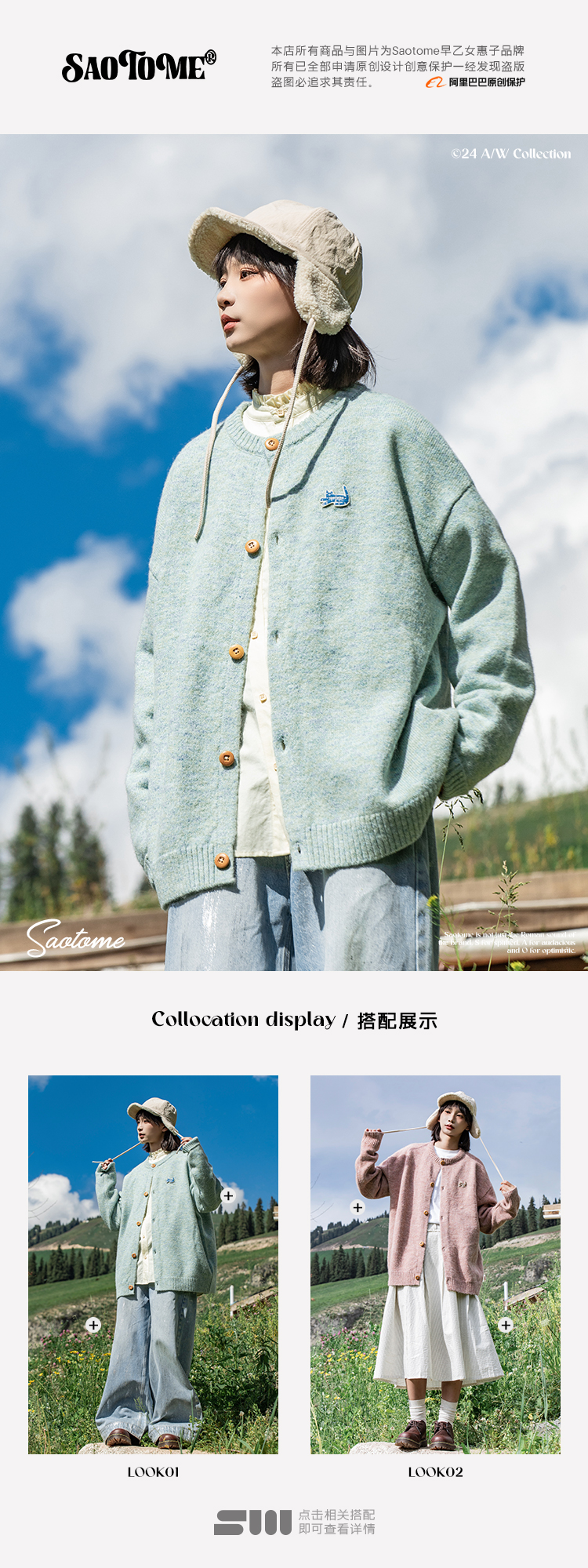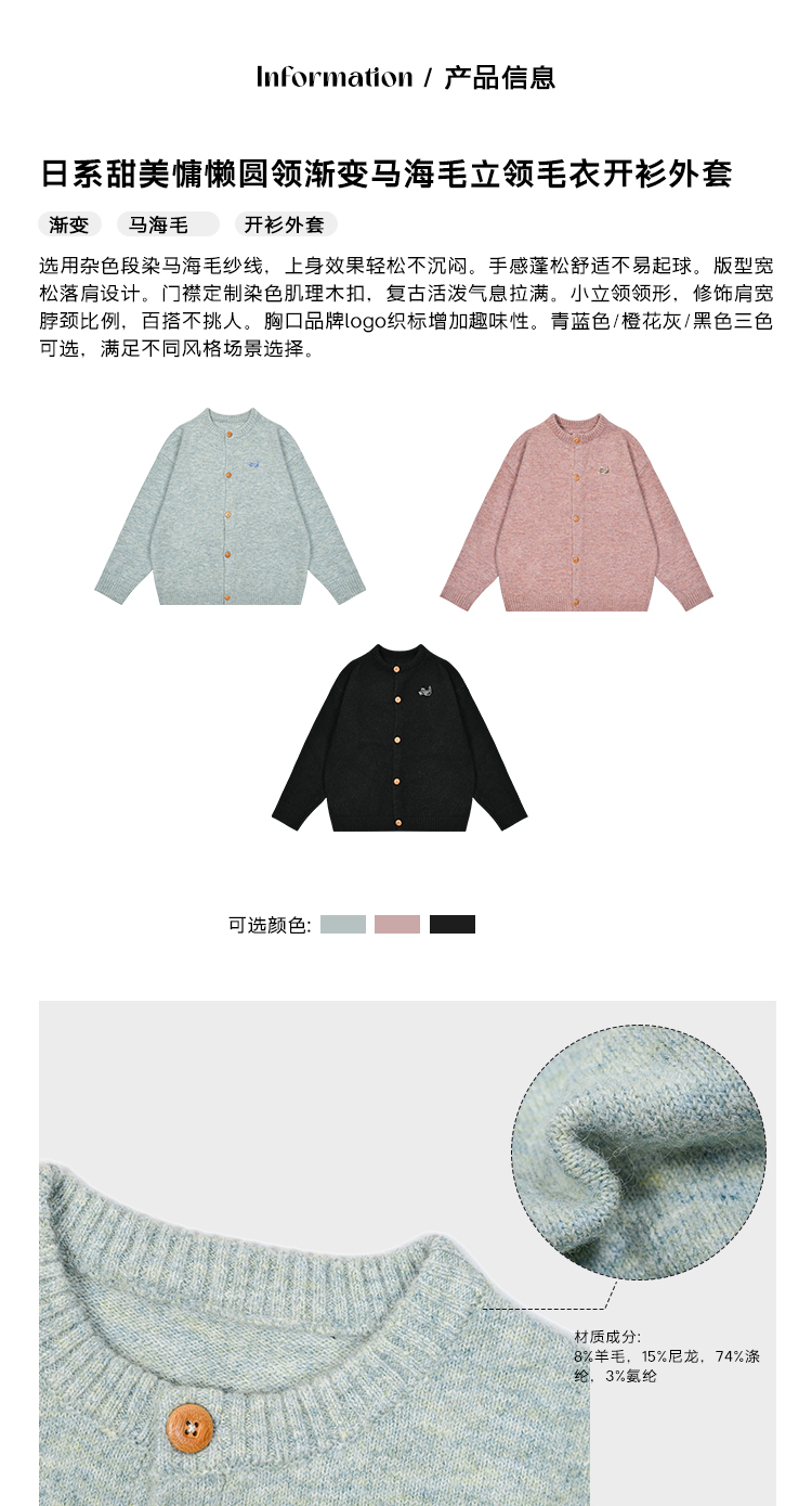 早乙女惠子saotome/STMMY243144/圆领渐变毛衣开衫