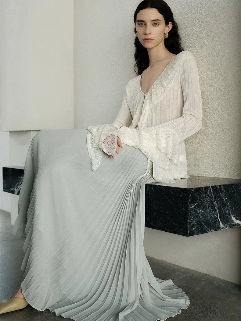 老米优品🎈3-7天!度假风重工仙女百褶裙《珍珠雪纺百褶半身长裙》大牌平替,丝滑垂感,立体压褶,品质巨好~~ C12260112