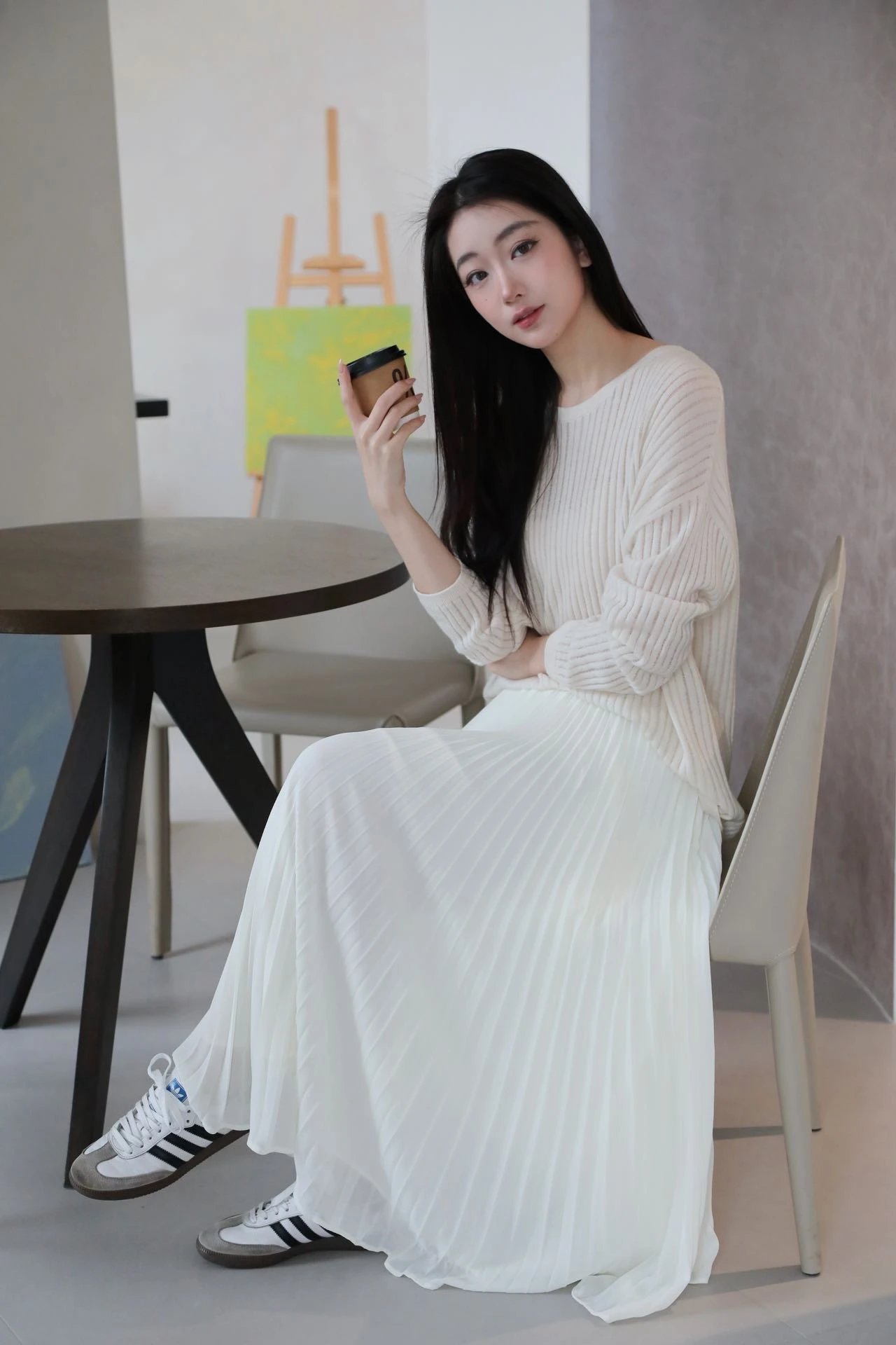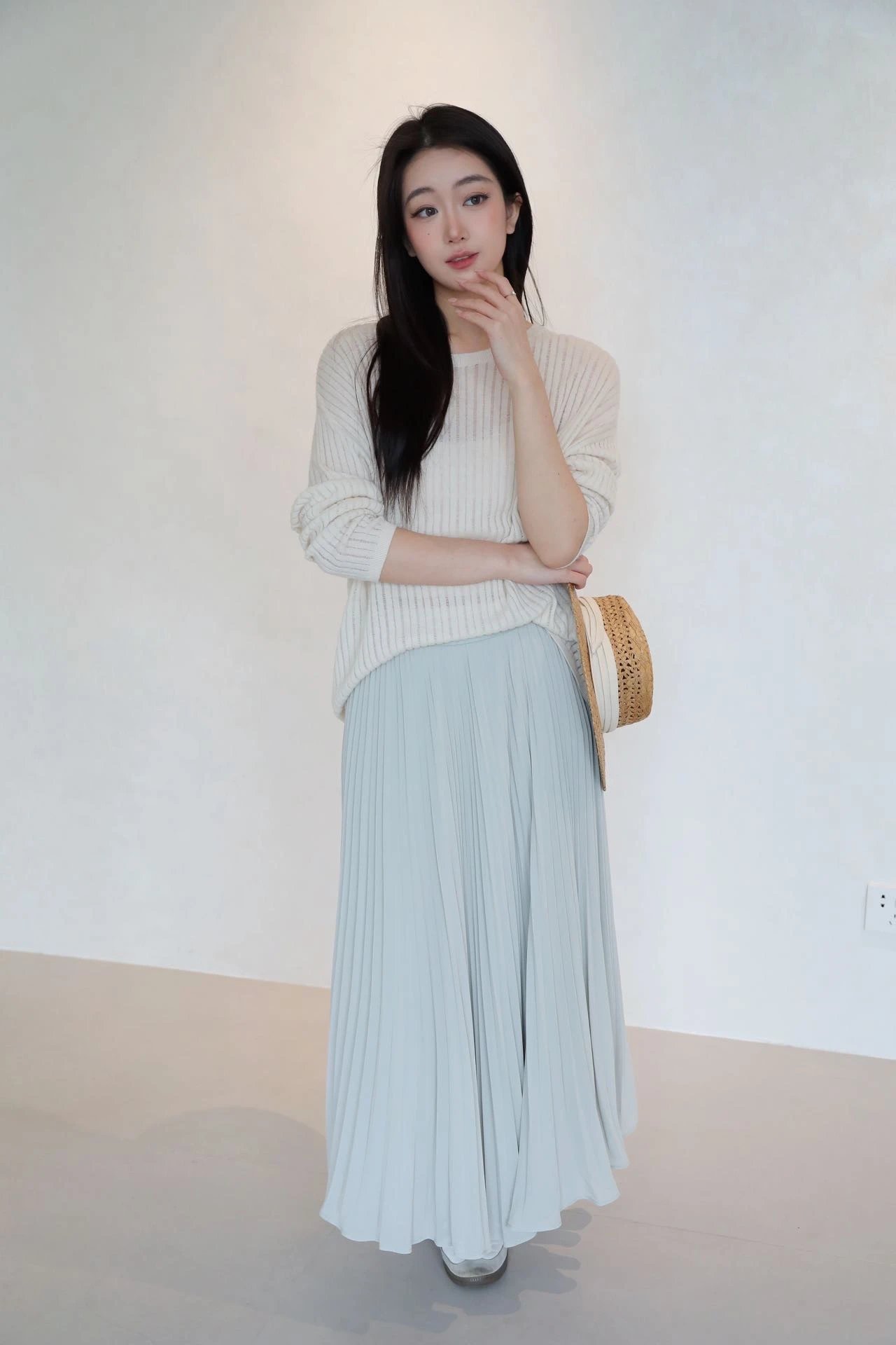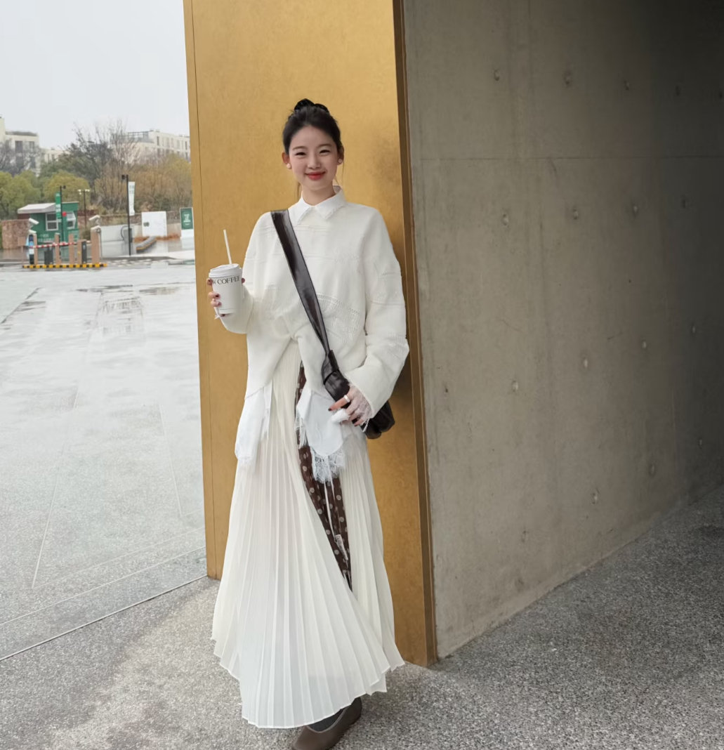 一般穿到脚踝位置,长裙就要这个度,