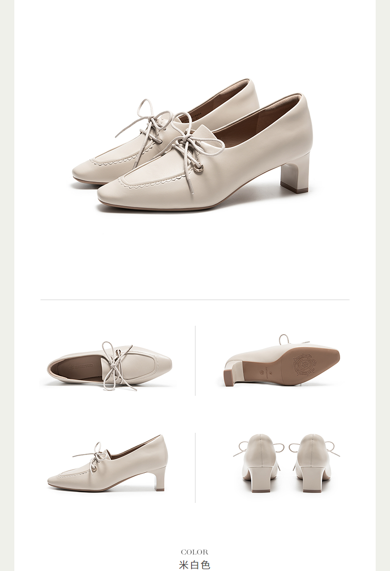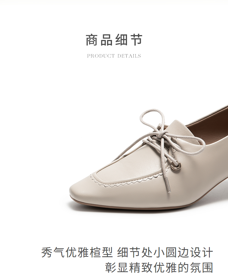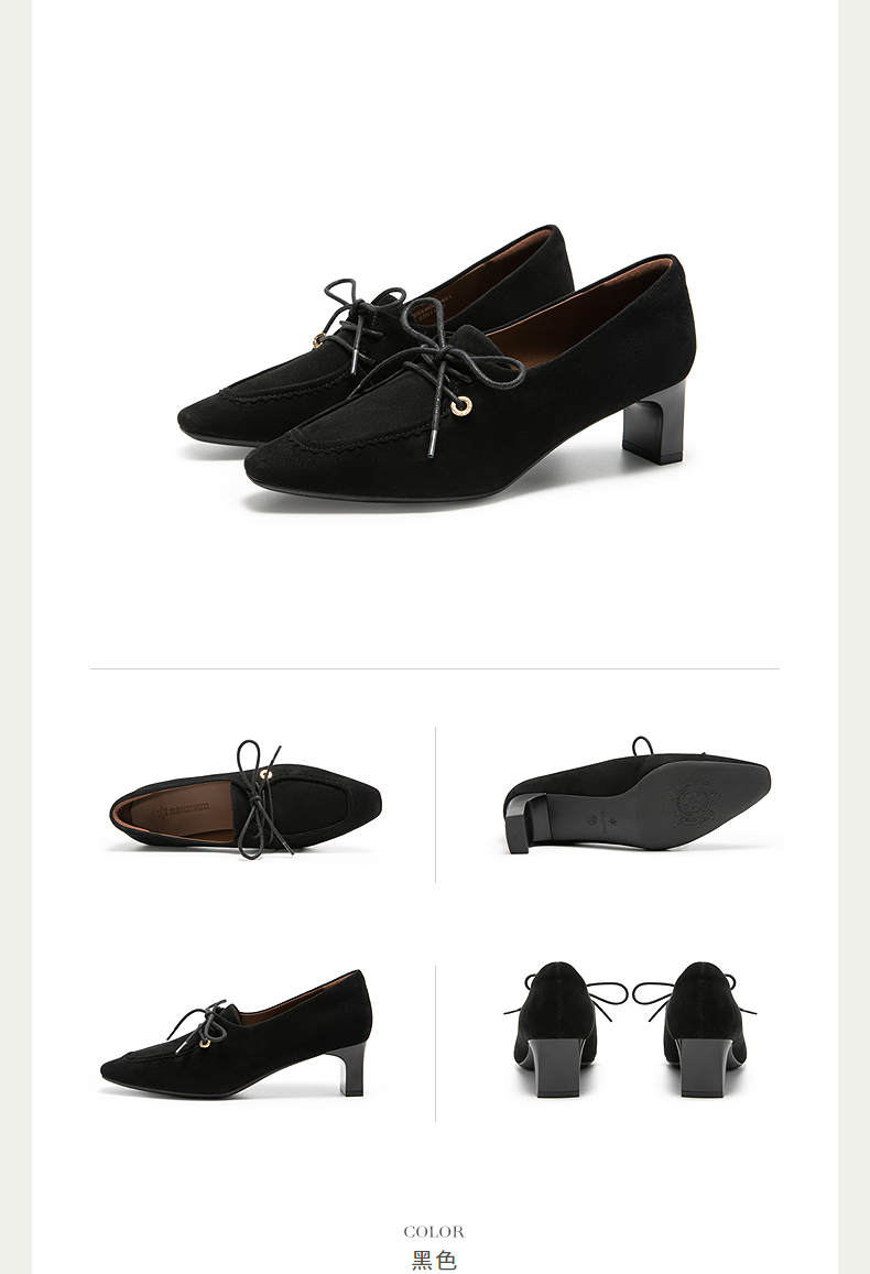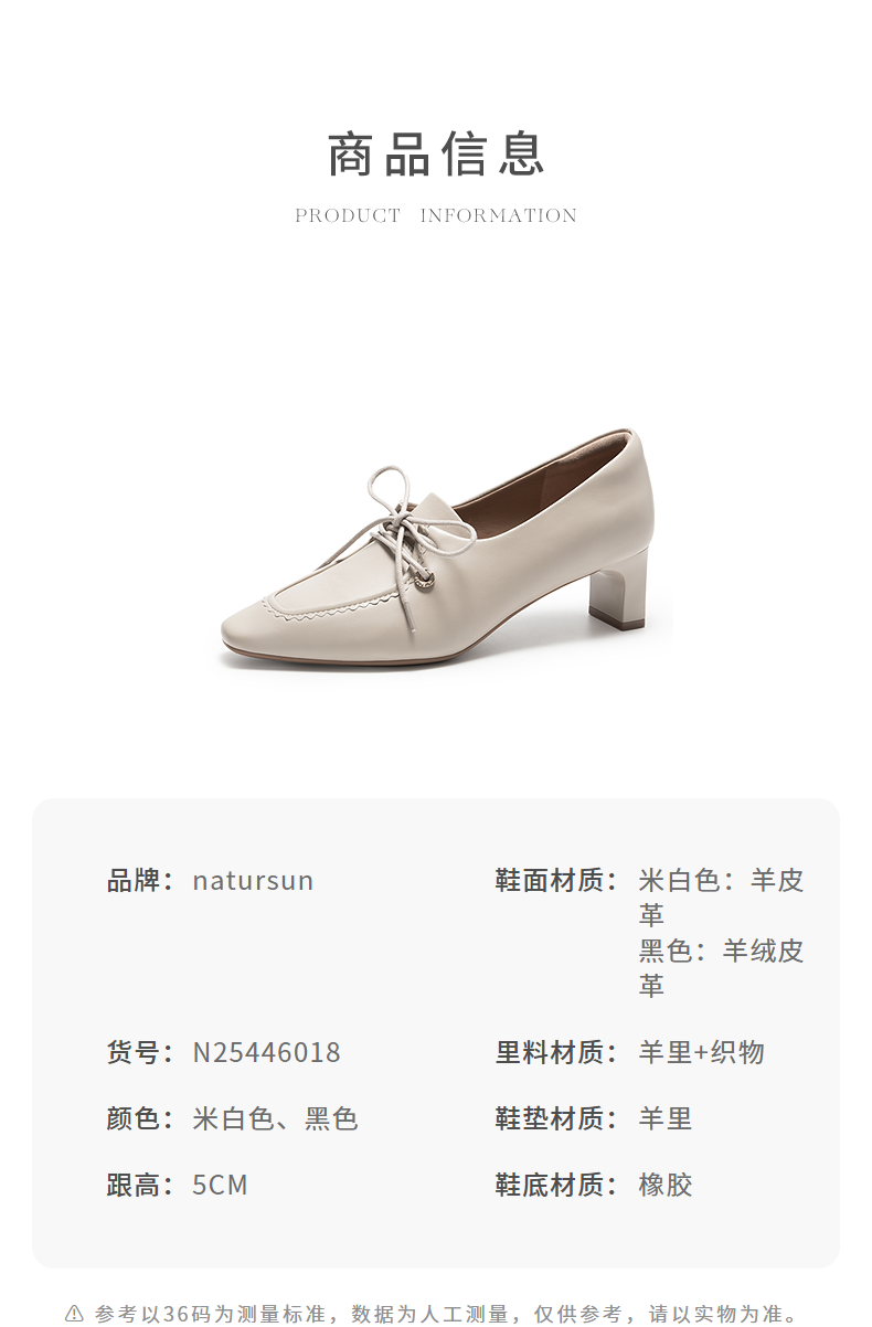 natursun方跟乐福鞋气质通勤显瘦小方头不累脚高跟鞋N25446018