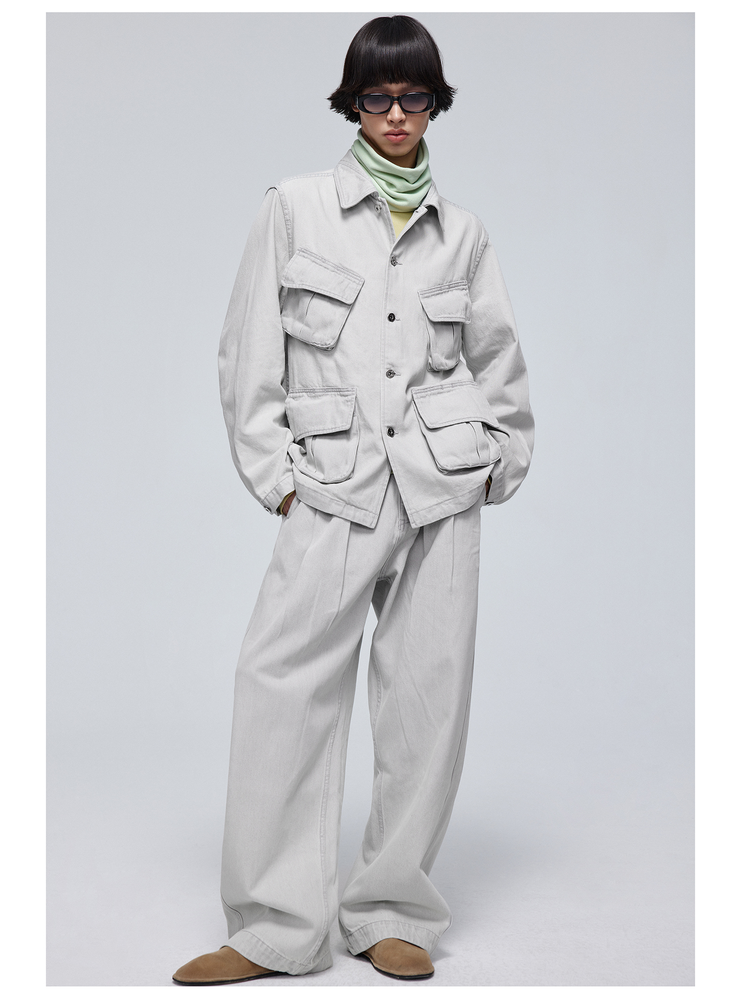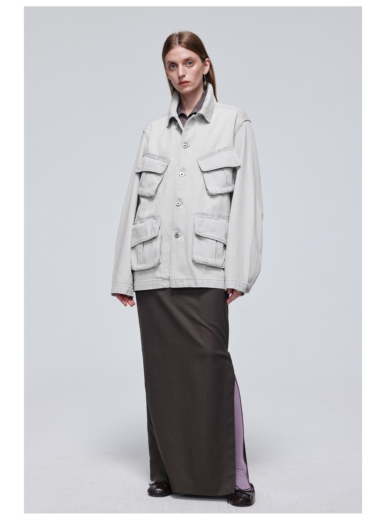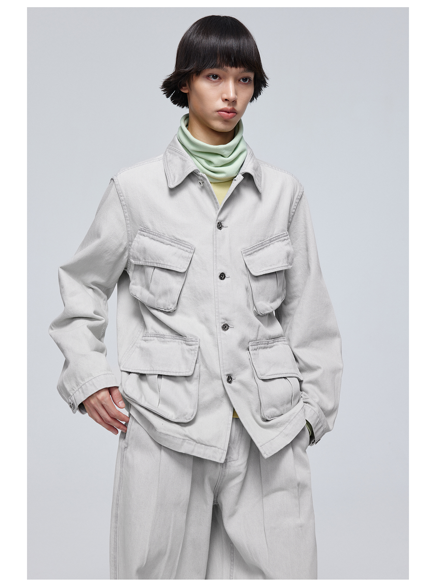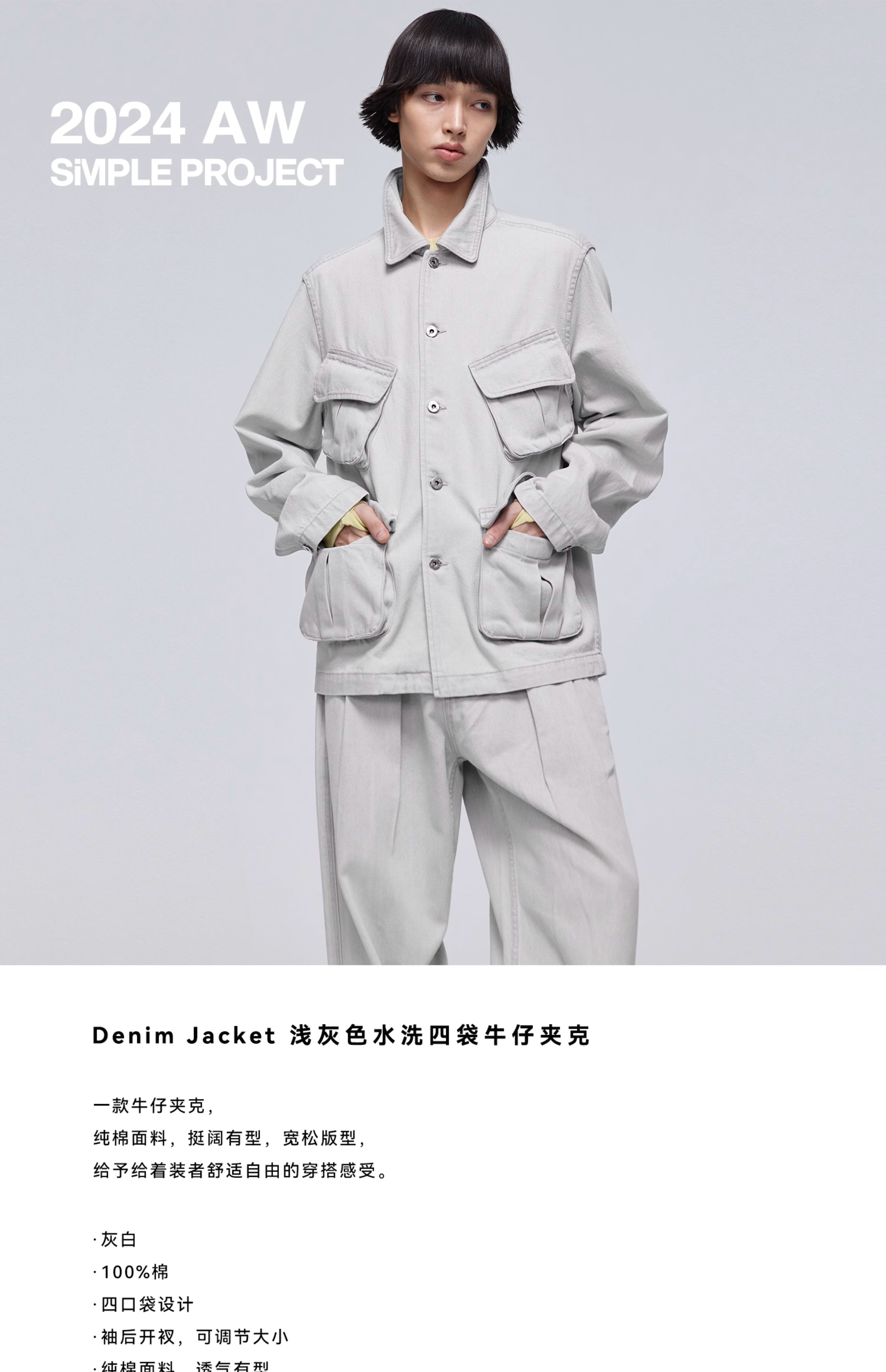 Simple Project/Y242000/浅灰色水洗四袋牛仔夹克