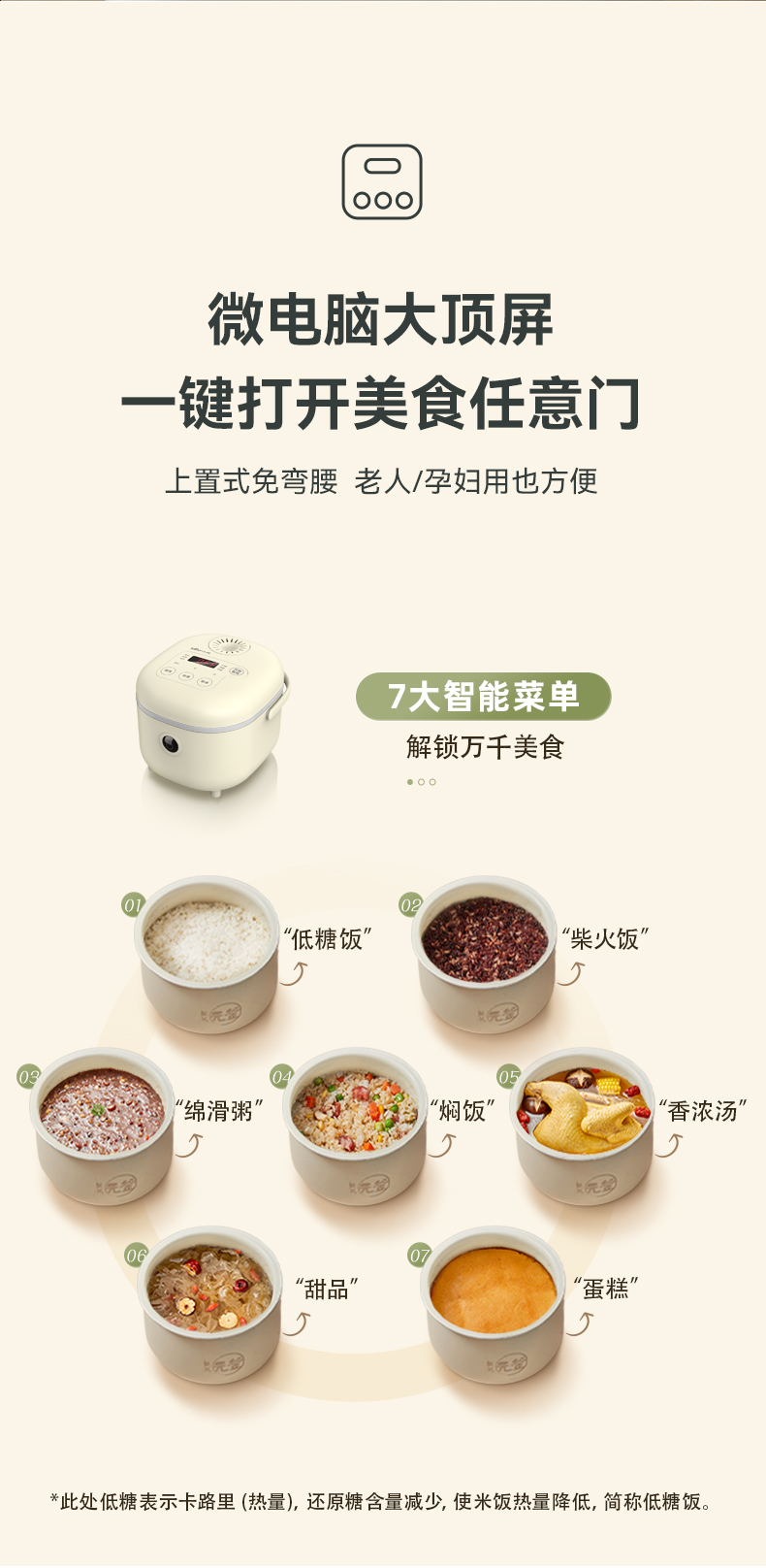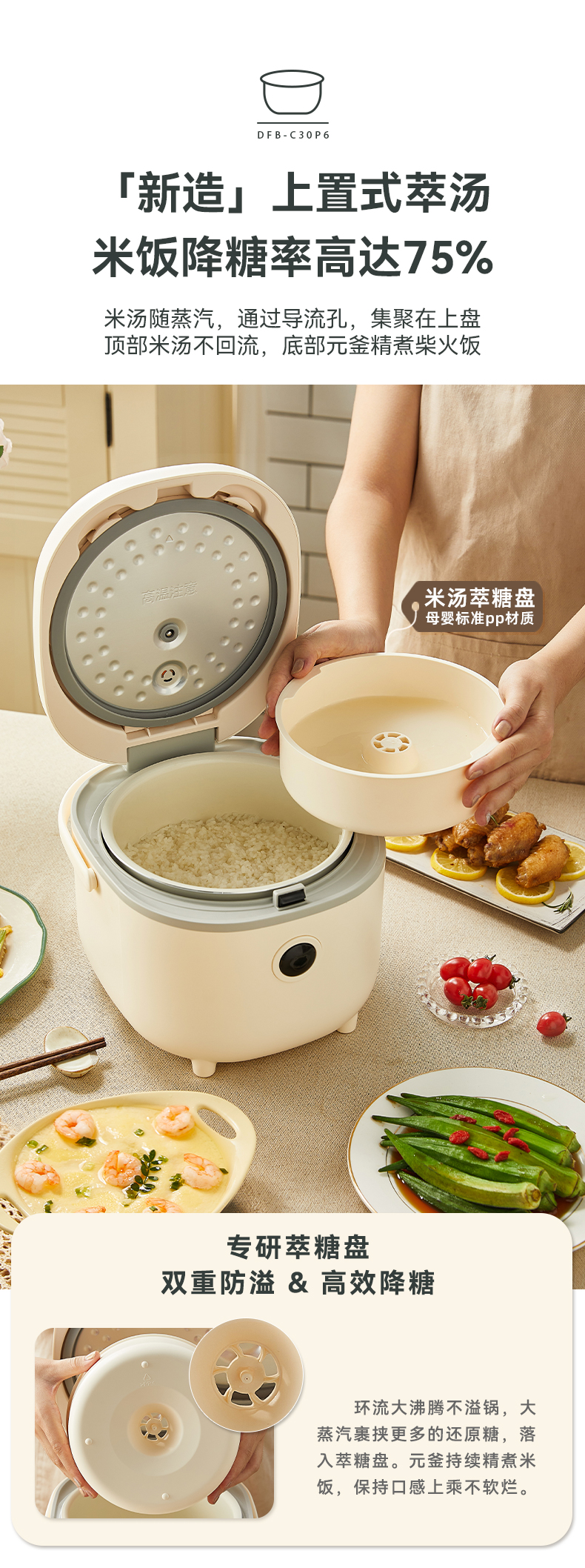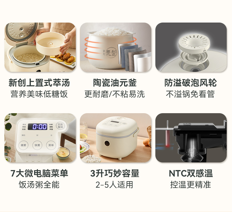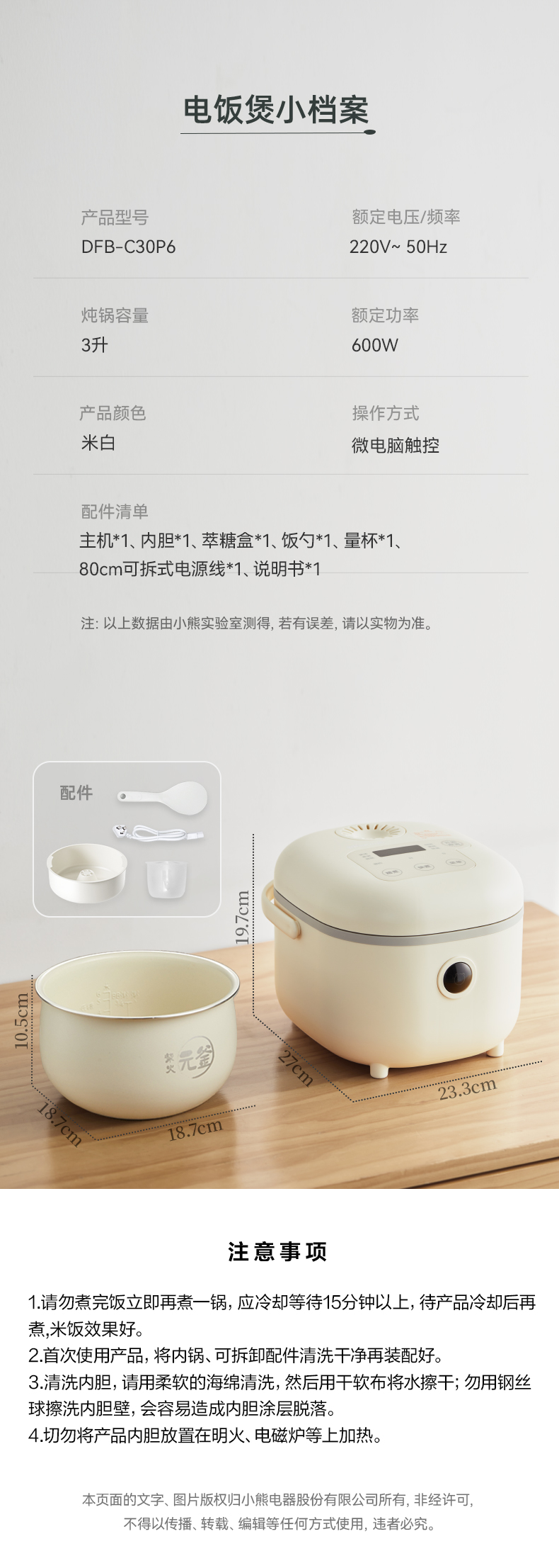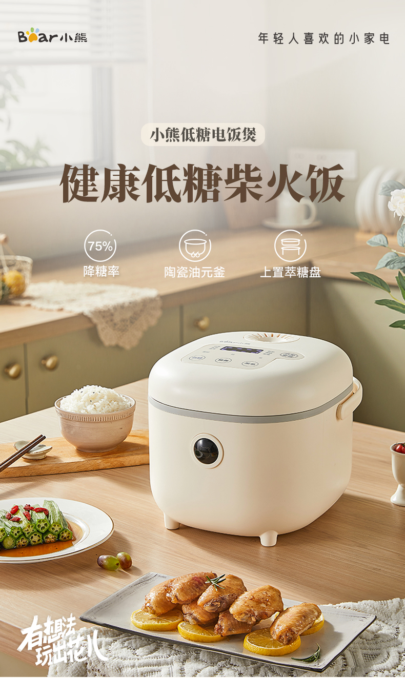 【小程序】小熊电饭煲 DFB-C30P6 米黄色 带量杯与饭勺 有低糖饭功能