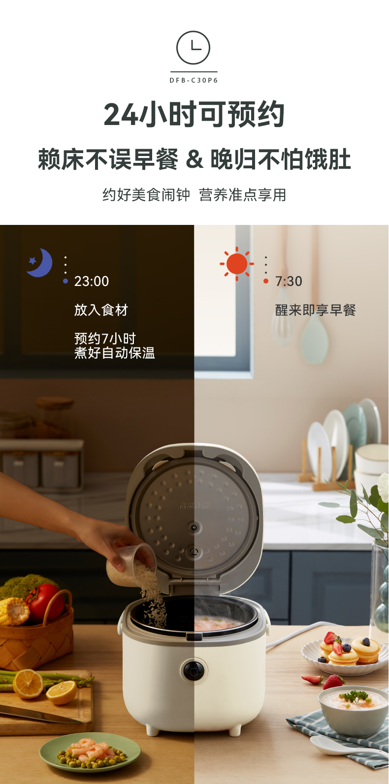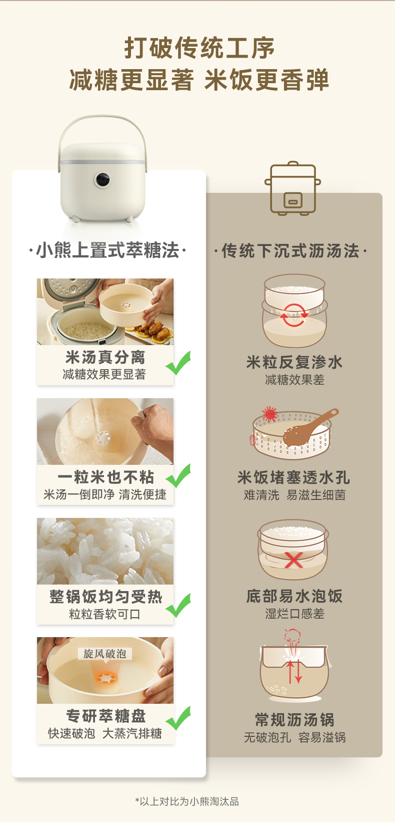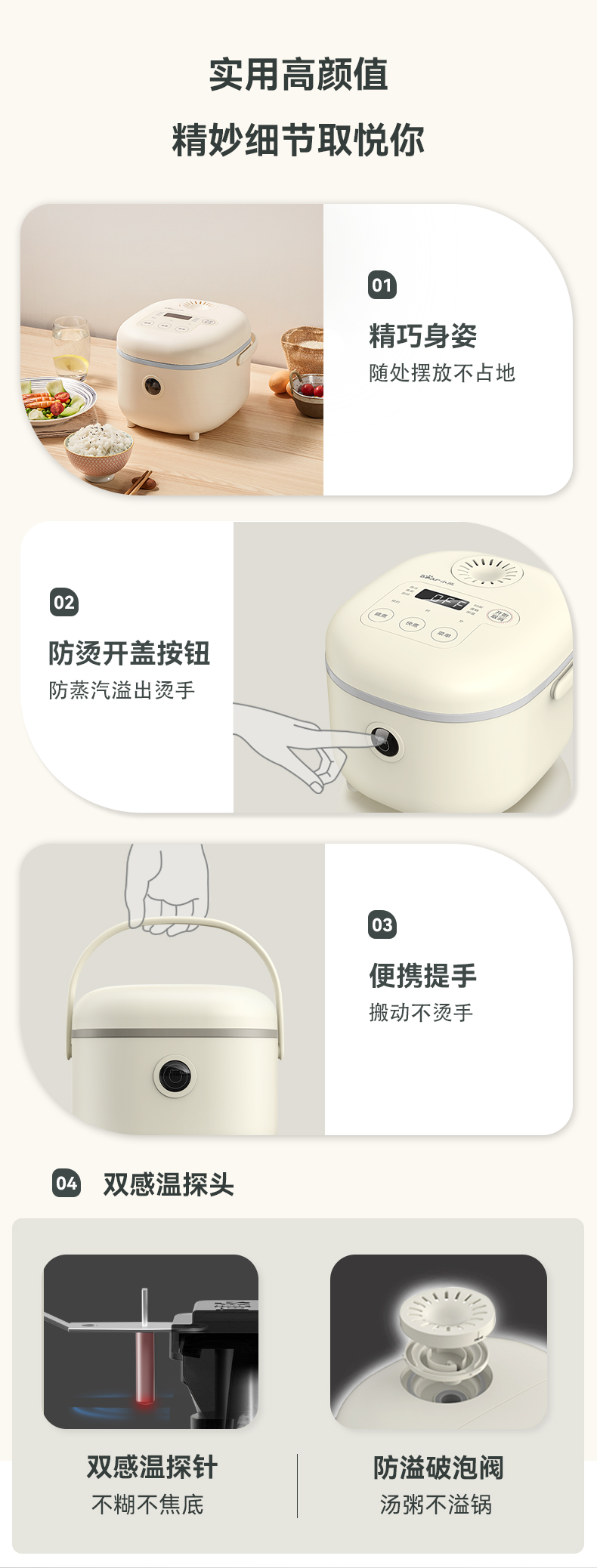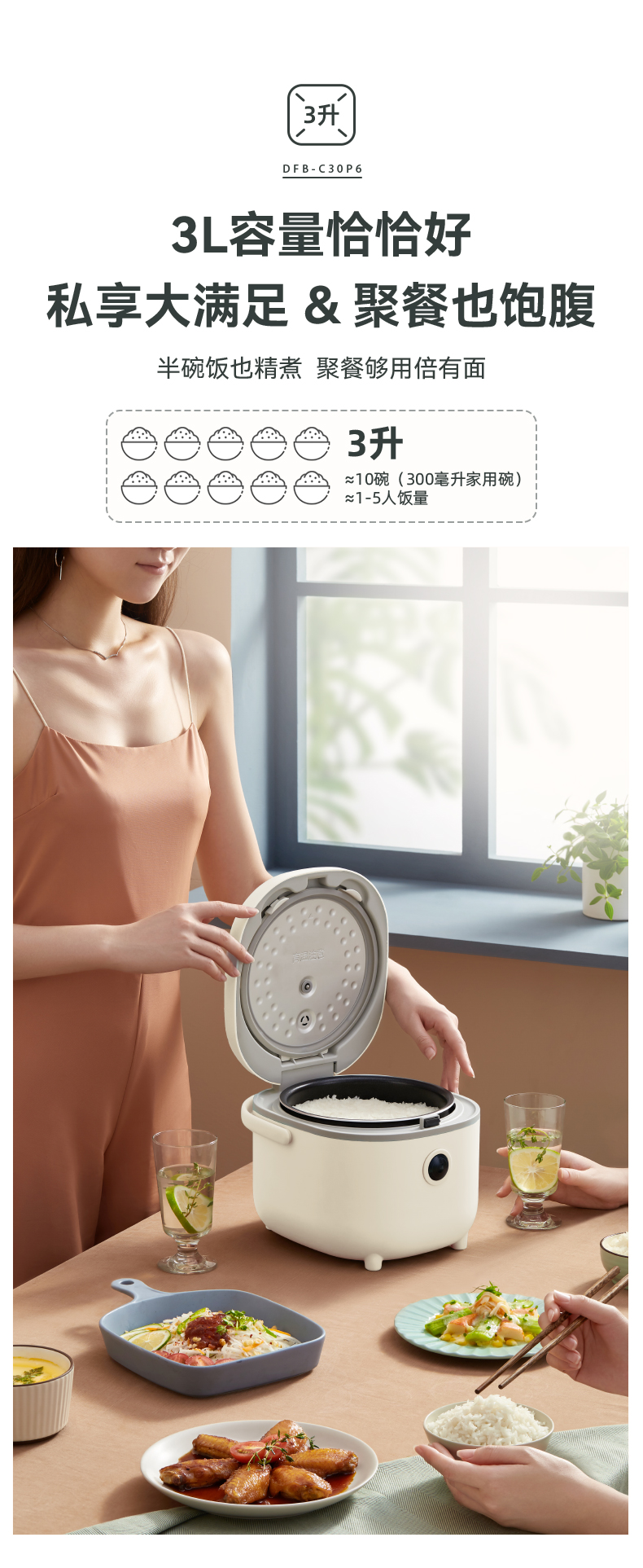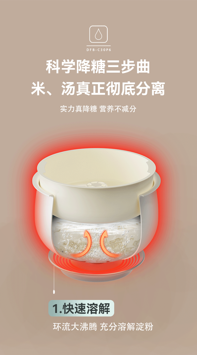 【小程序】小熊电饭煲 DFB-C30P6 米黄色 带量杯与饭勺 有低糖饭功能