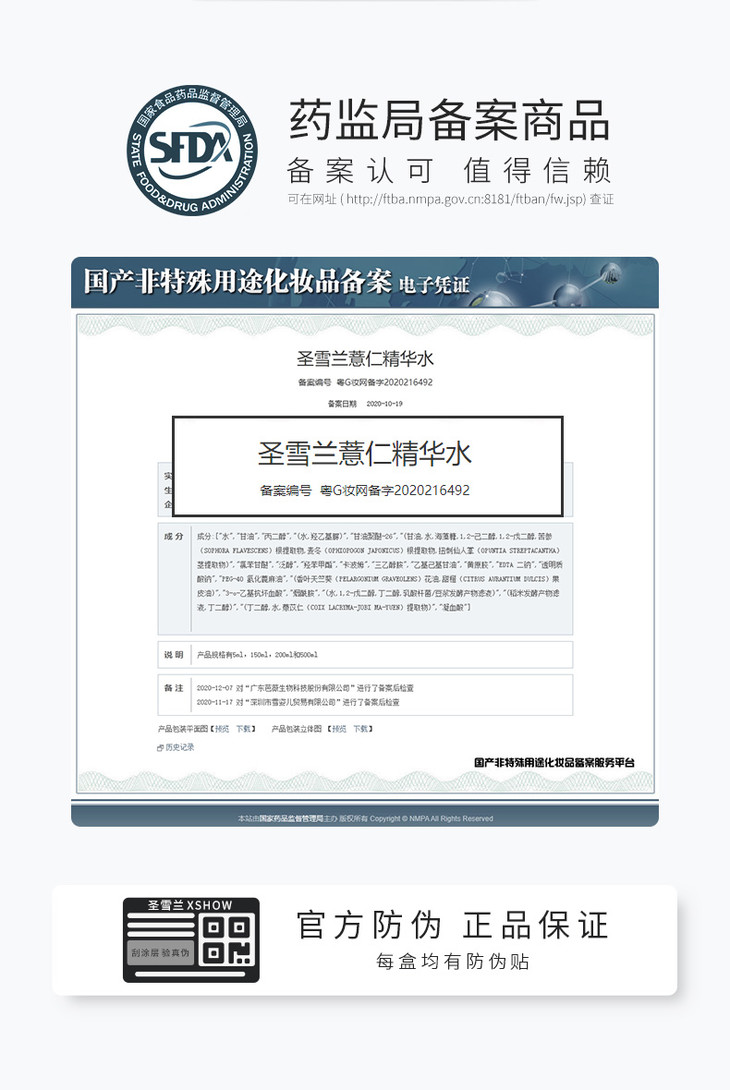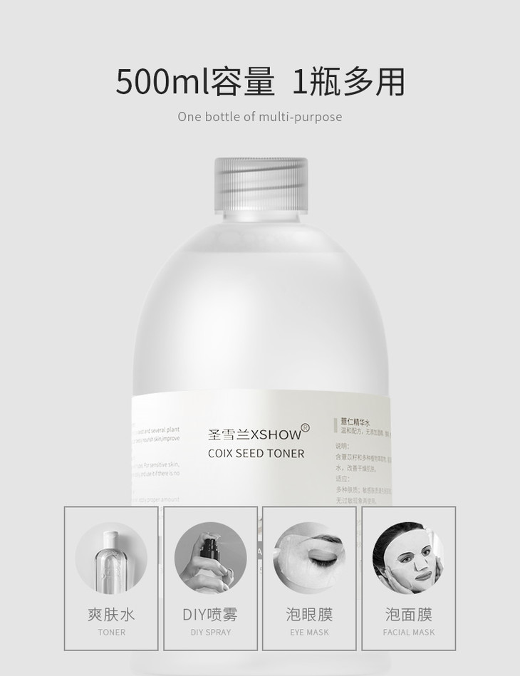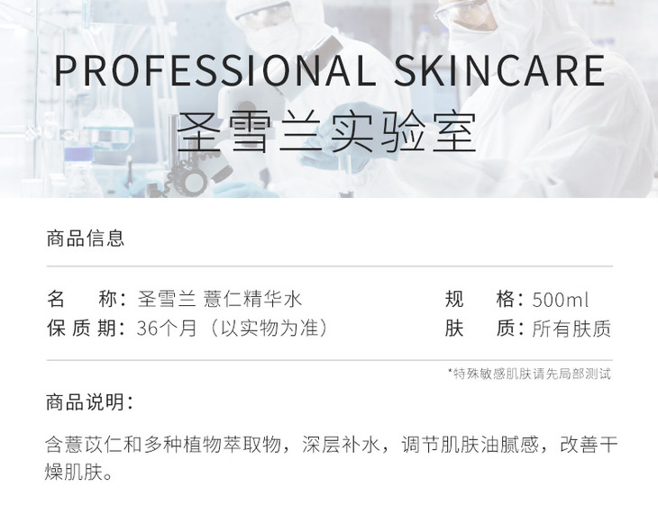 圣雪兰薏仁水 湿敷爽肤化妆水女收毛孔 保湿补水收缩毛孔