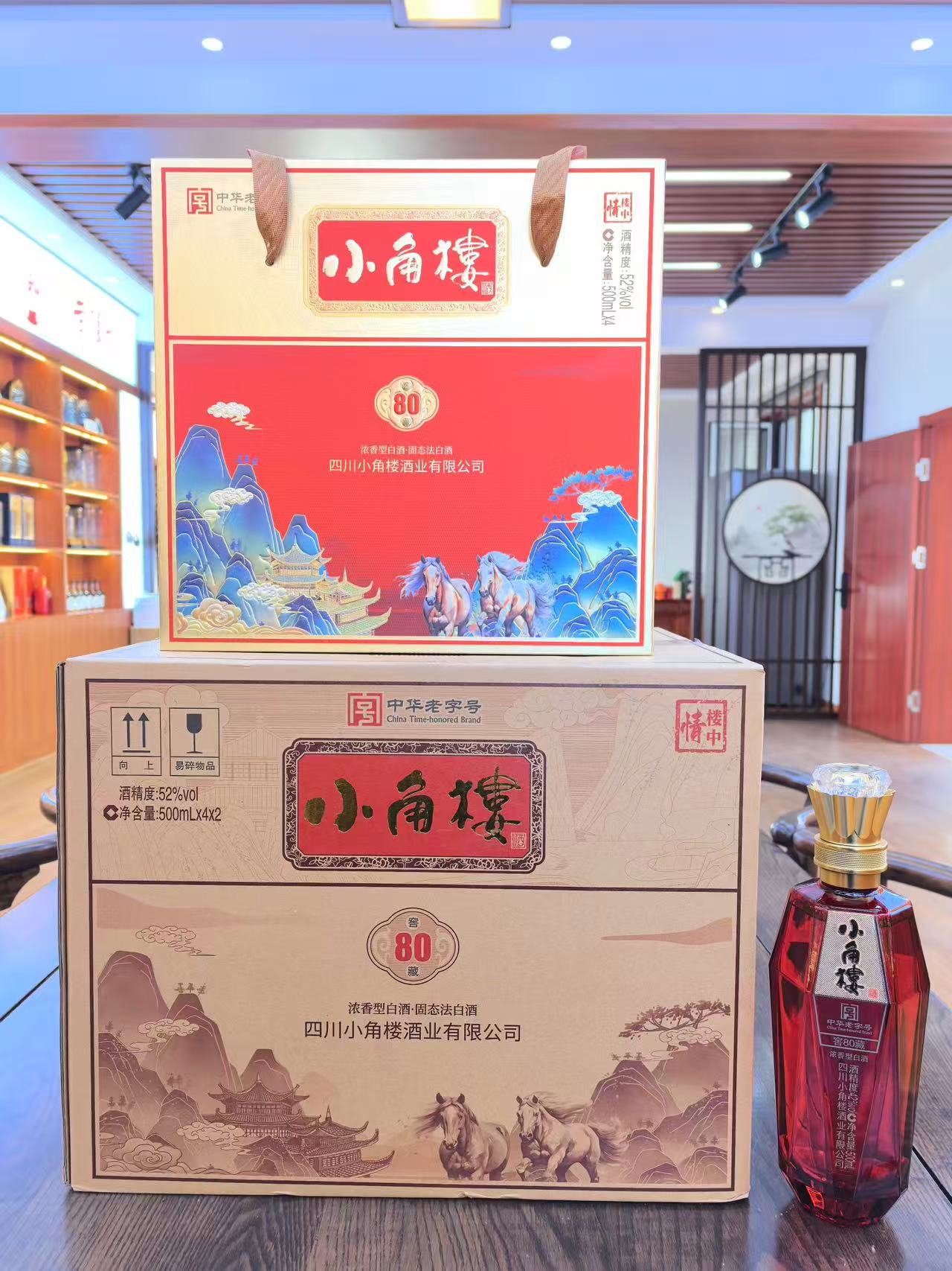 心选丨中华老字号 四川小角楼窖藏80礼盒装 浓香型白酒 52度 500ml*4瓶