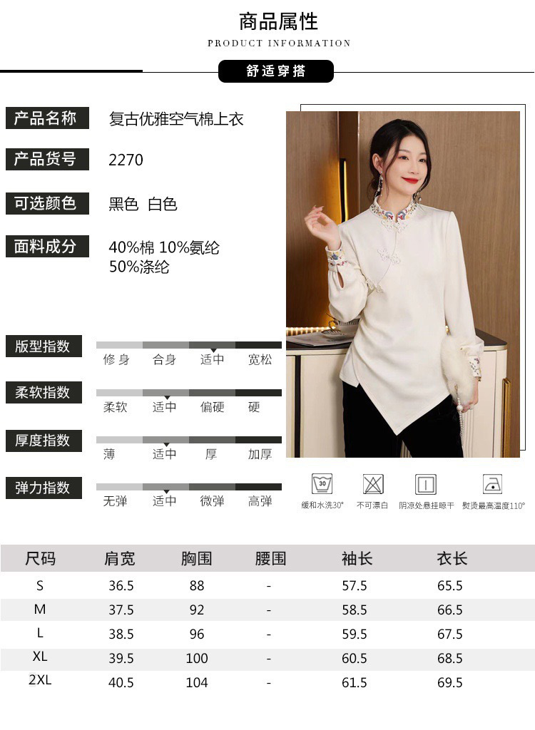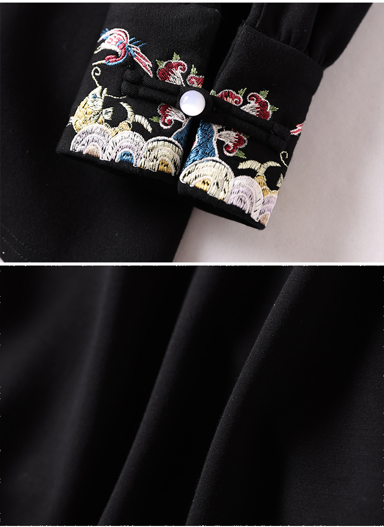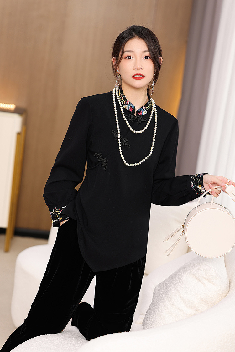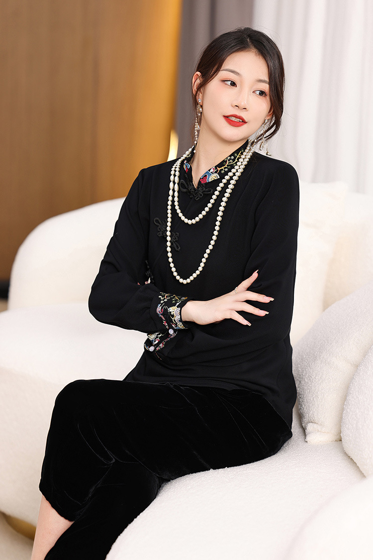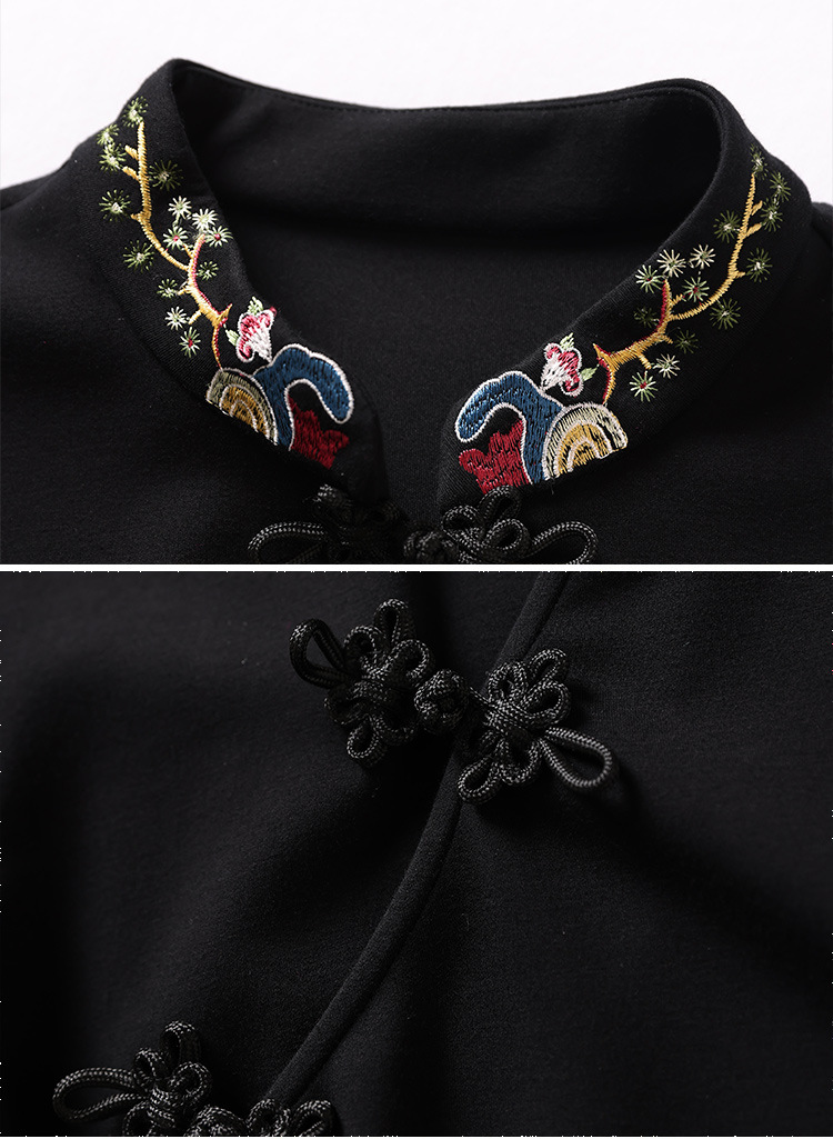 2022春秋新款中国风复古刺绣立领长袖女修身打底衫 HLV2270