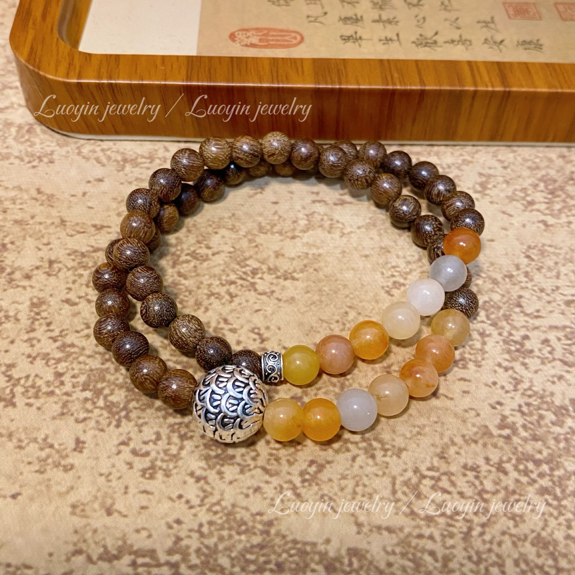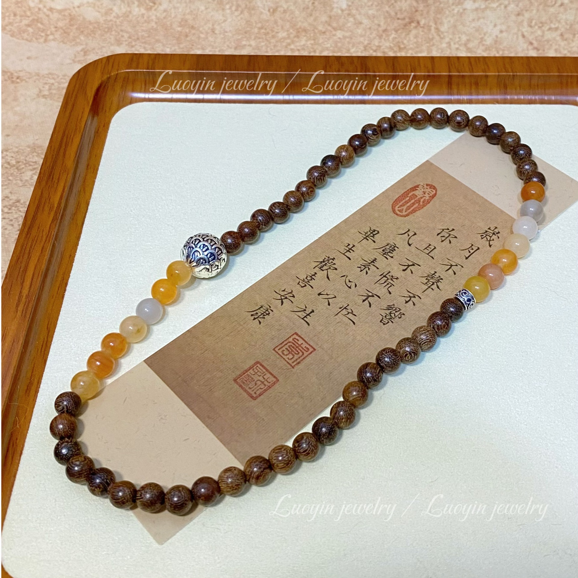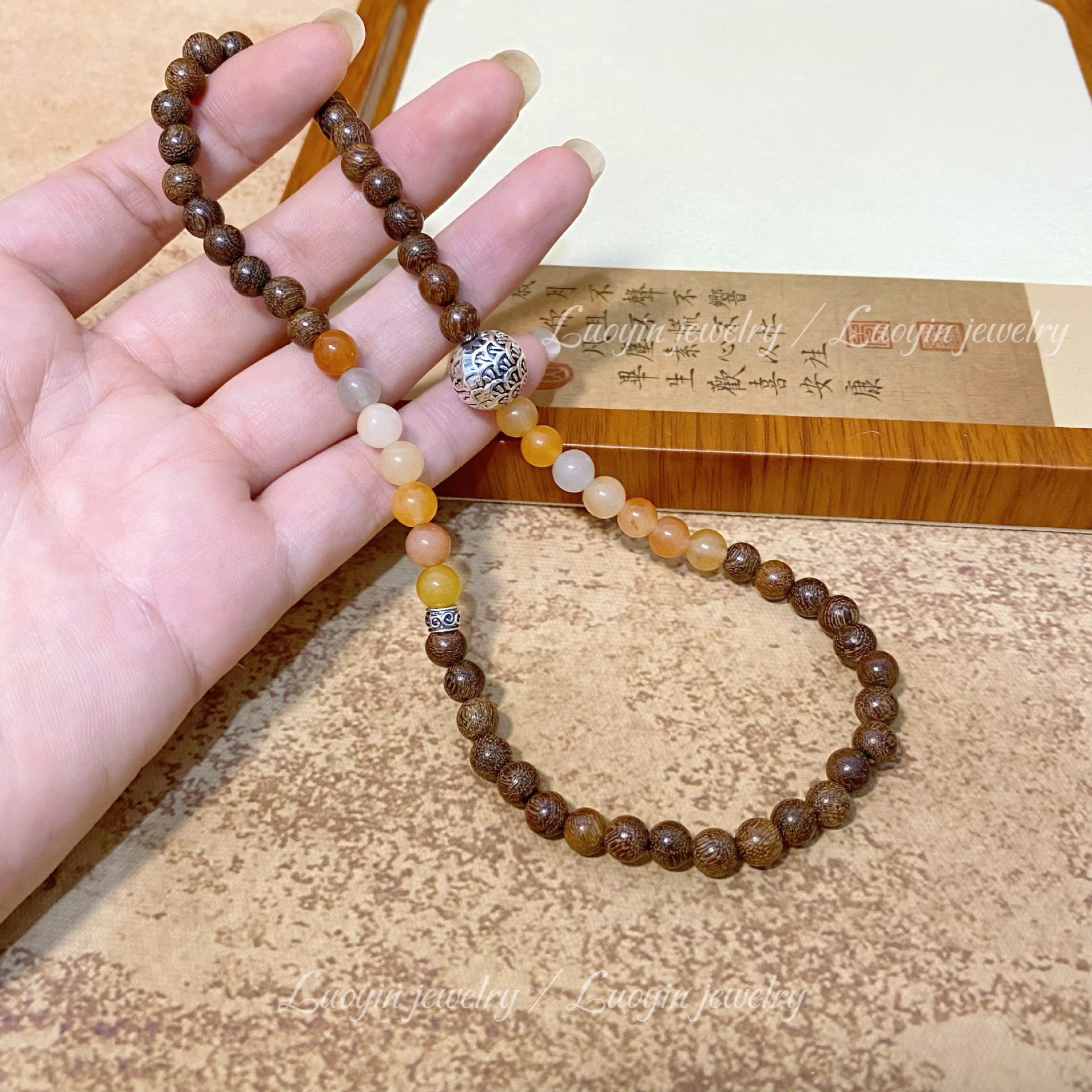 【新中式金丝檀木手链】搭配金丝玉双圈佛珠文玩 男女古风小众木质手串